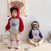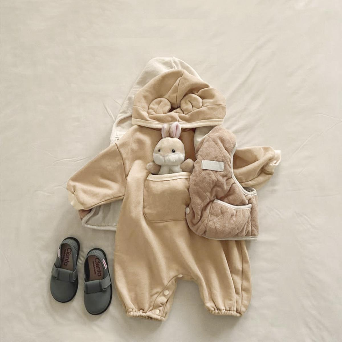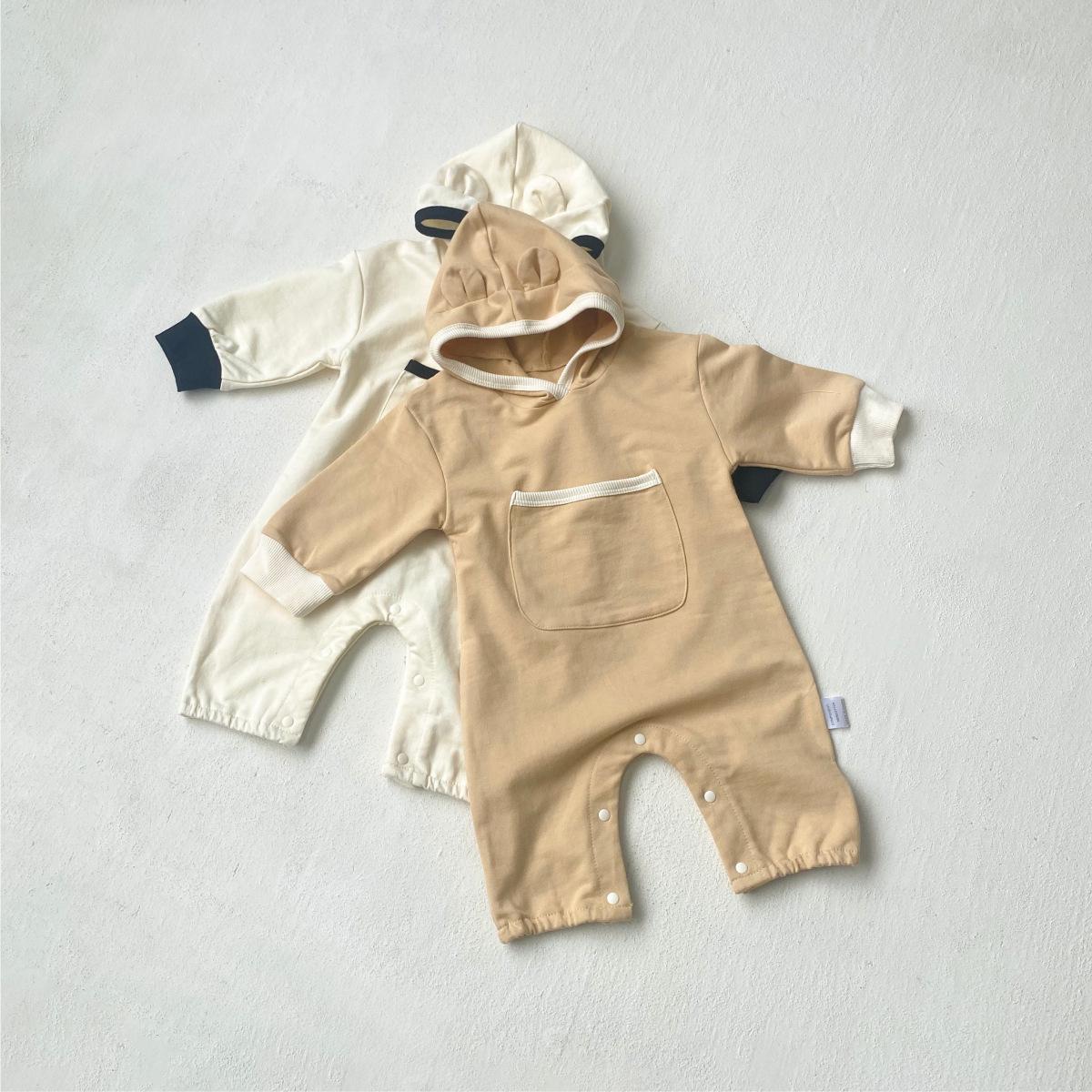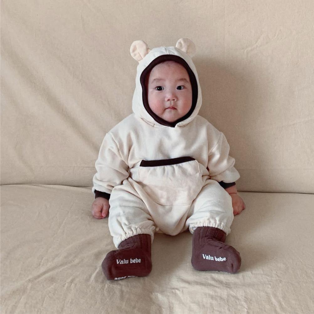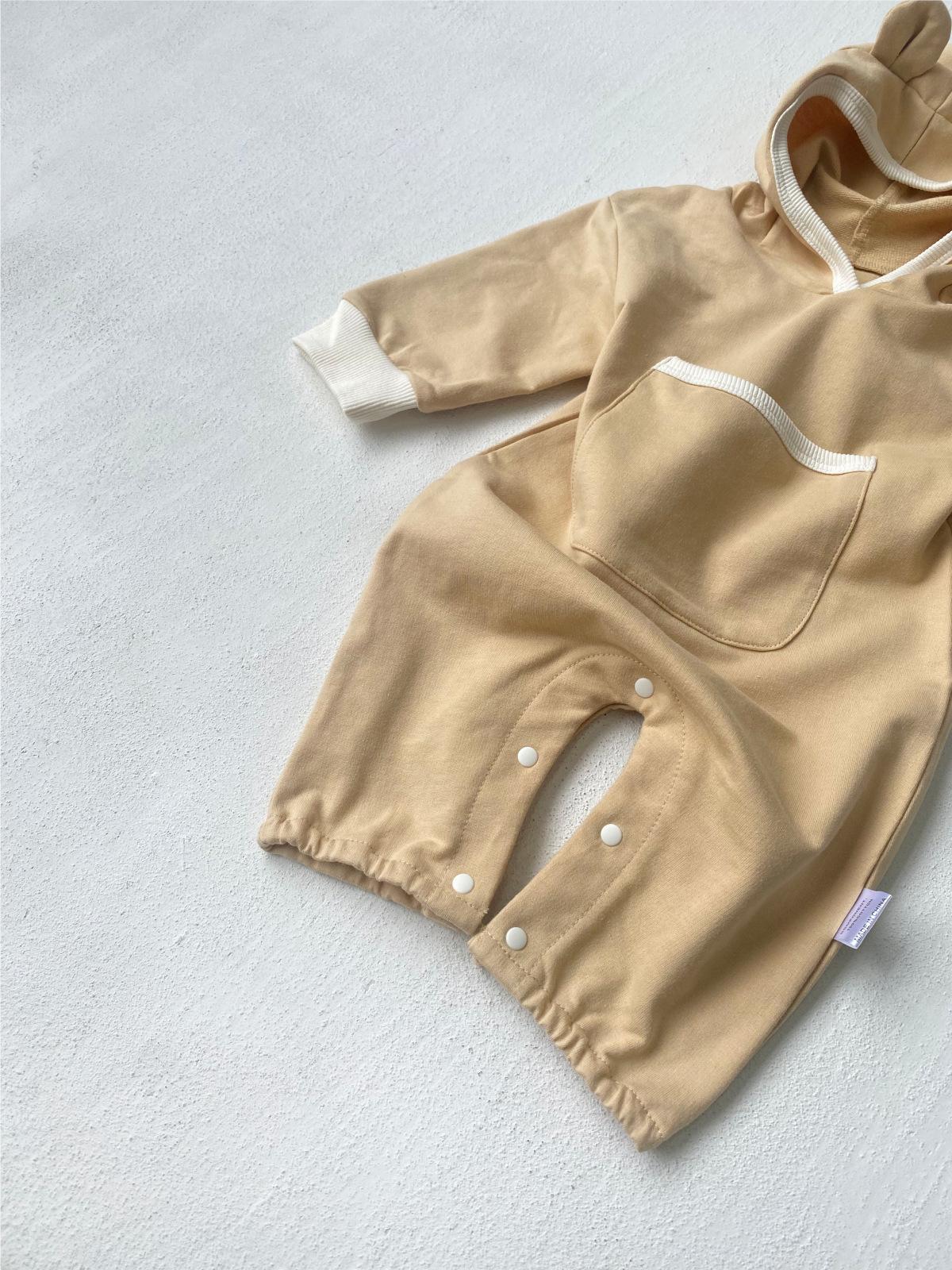 Body Infantil Fofo Bolso Grande Orelhas de Urso com Capuz Moletom Longo Macacão Bebê Recém-Nascido Roupas Outono