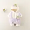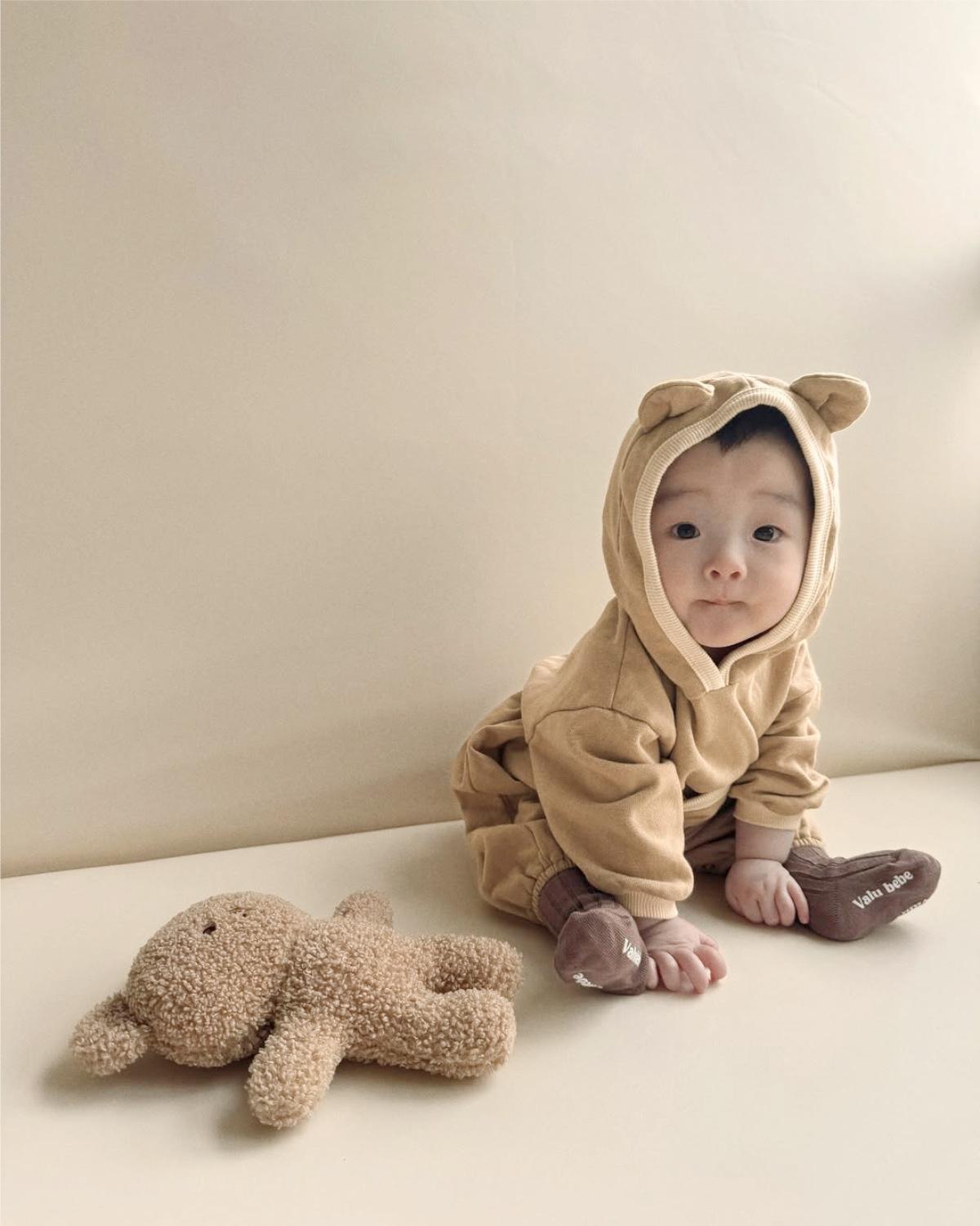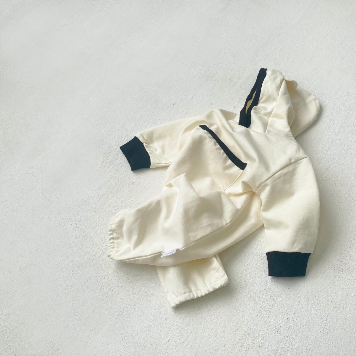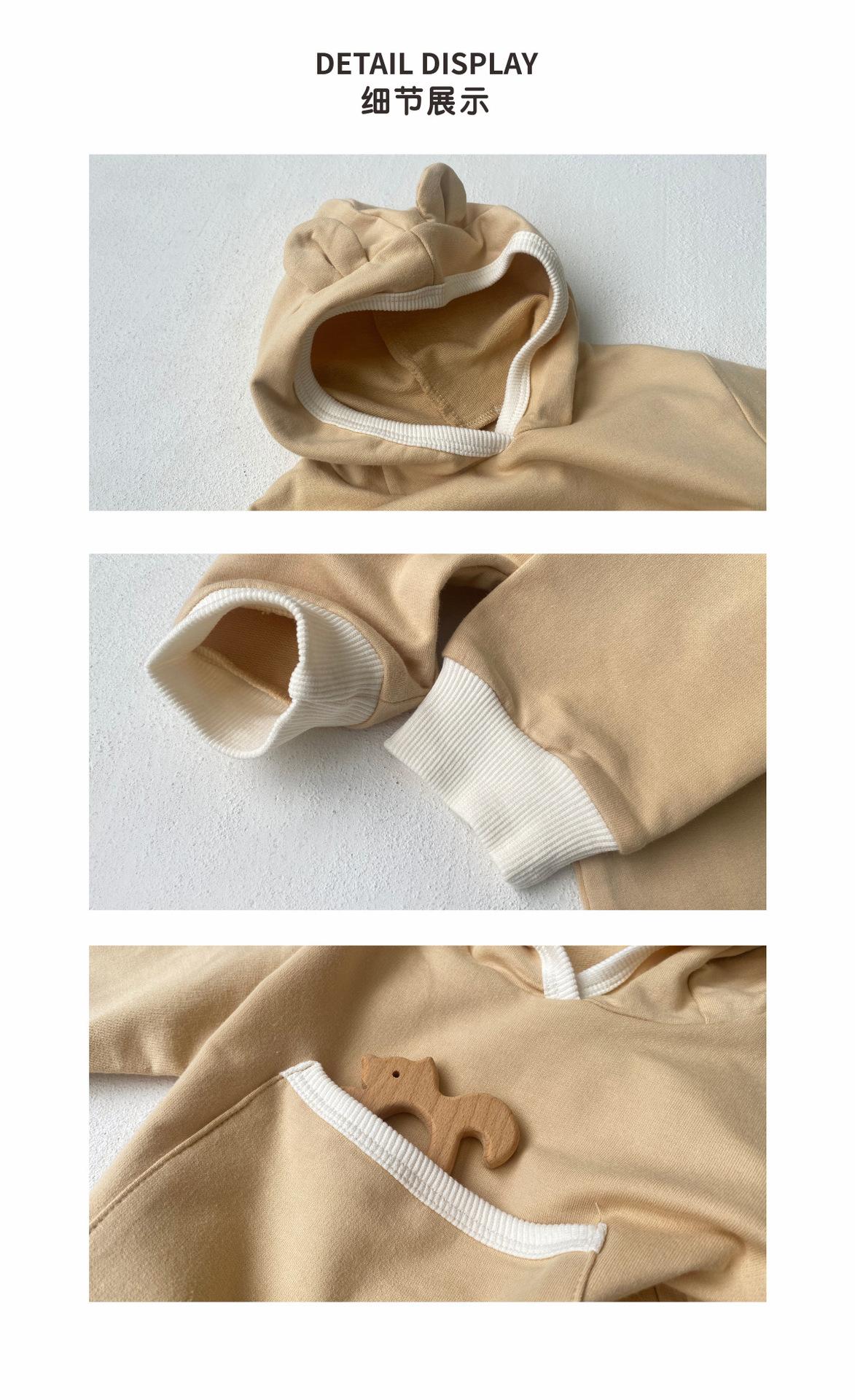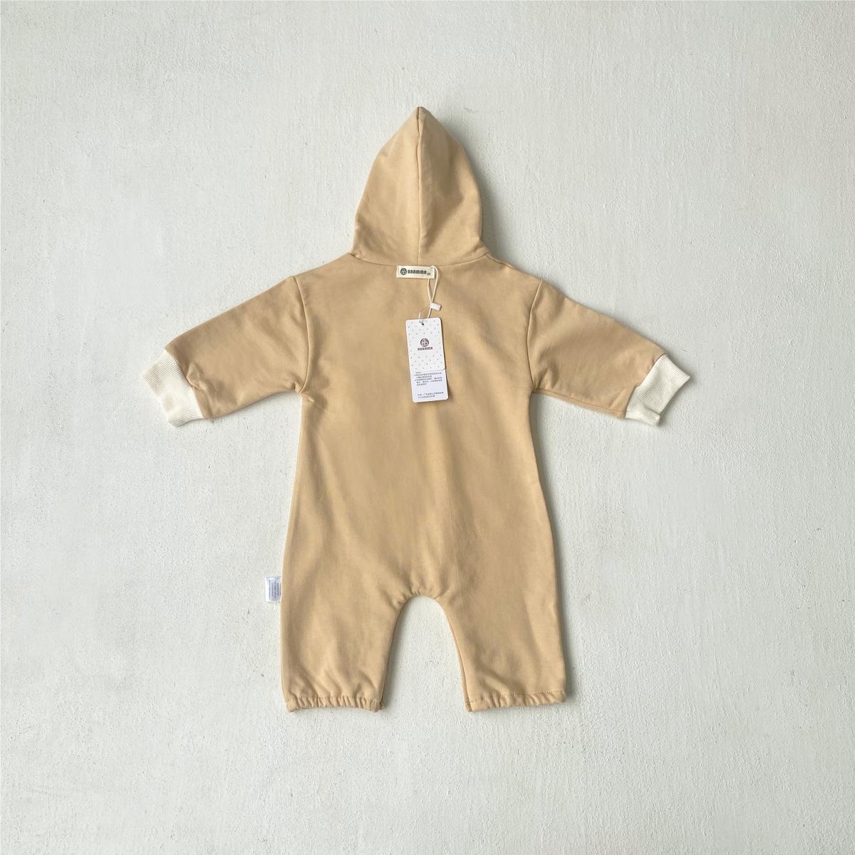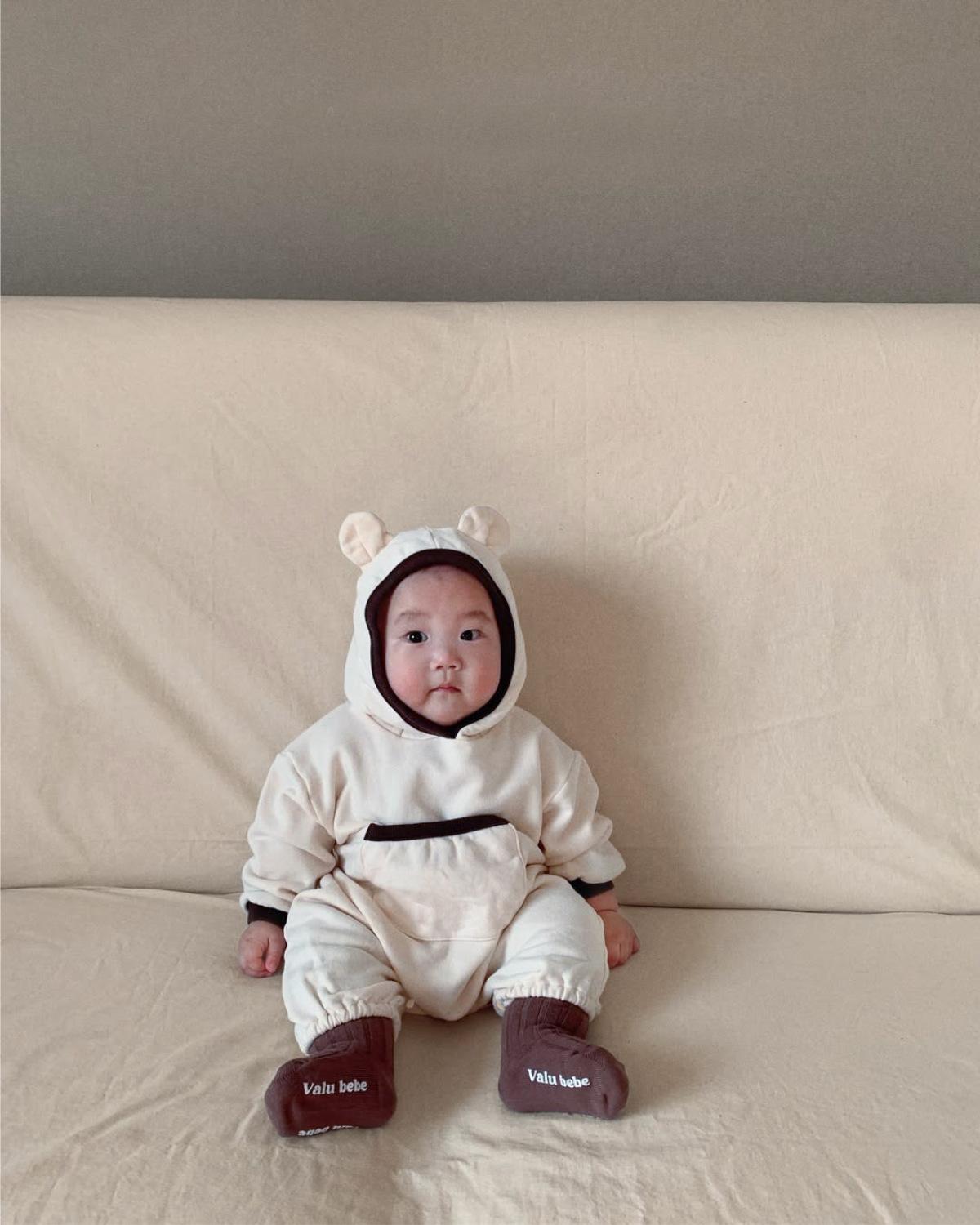 Body Infantil Fofo Bolso Grande Orelhas de Urso com Capuz Moletom Longo Macacão Bebê Recém-Nascido Roupas Outono