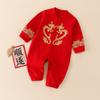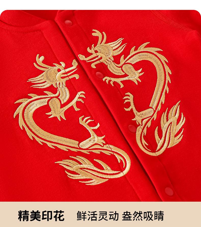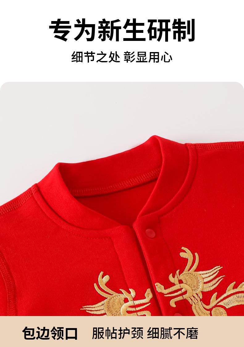 Macacão de Bebê Estilo Quatro Estações Bordado Lua Cheia Classe A Macacão Vermelho Algodão Puro Cem Dias Meninos e Meninas Roupas de Bebê Recém-Nascido