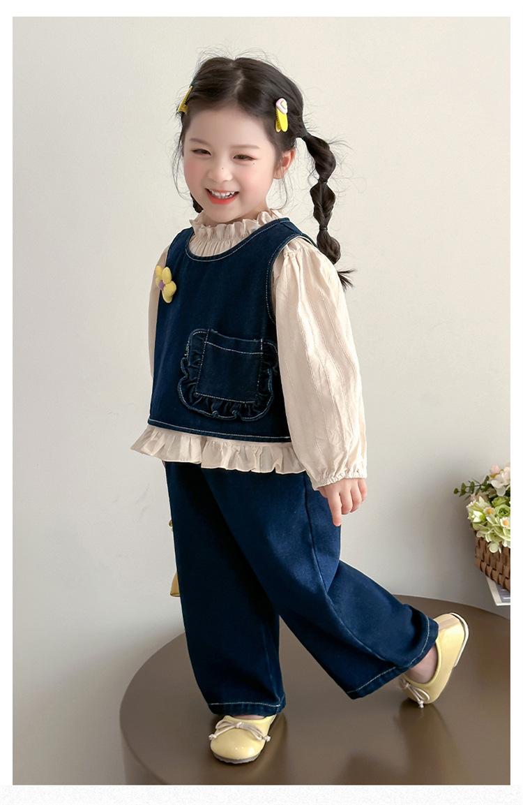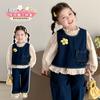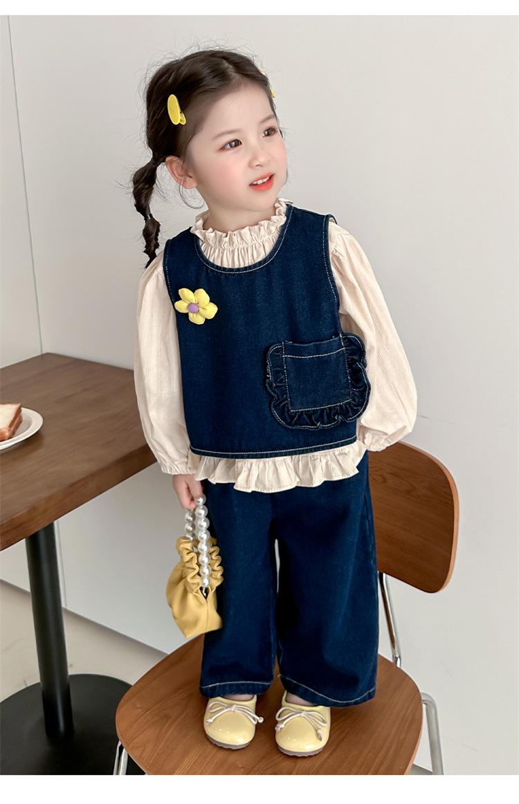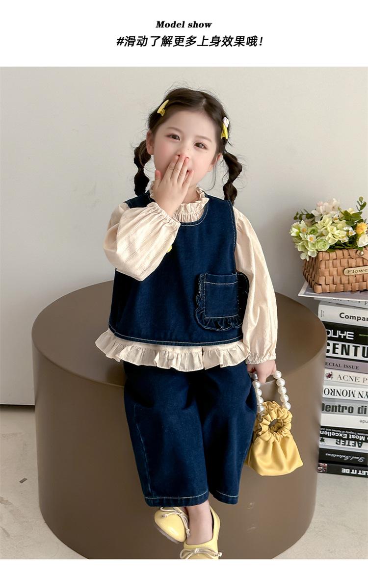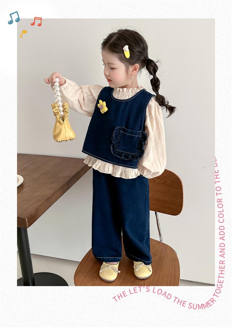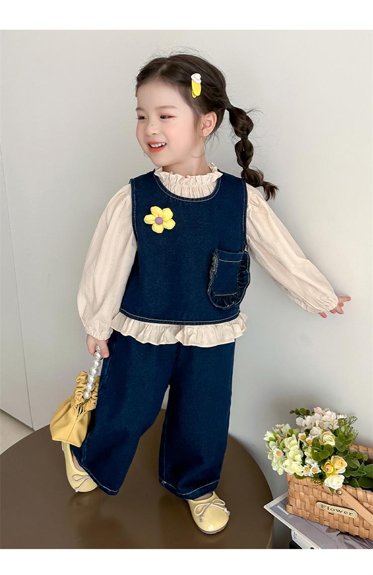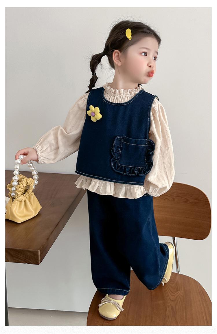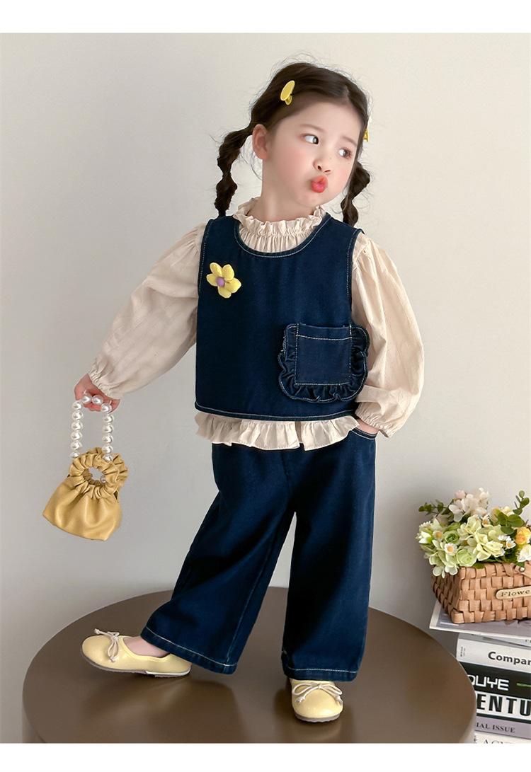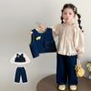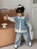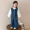 Colete feminino camisa básica calças de pernas largas jeans terno de três peças 2025 novo moda infantil estilo coreano terno para menina