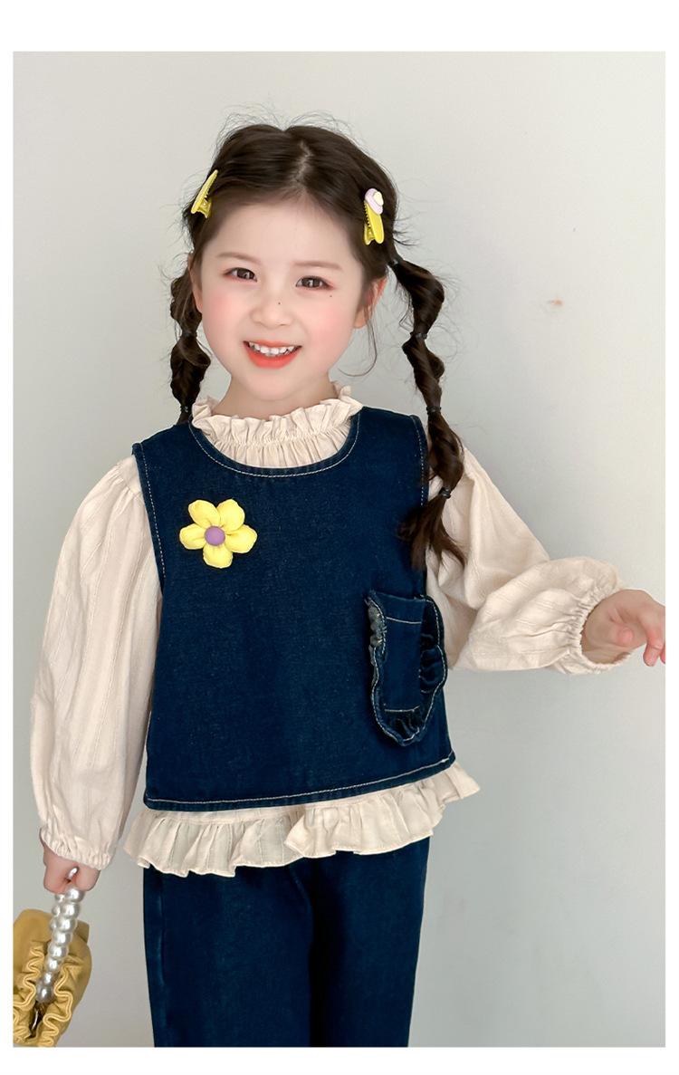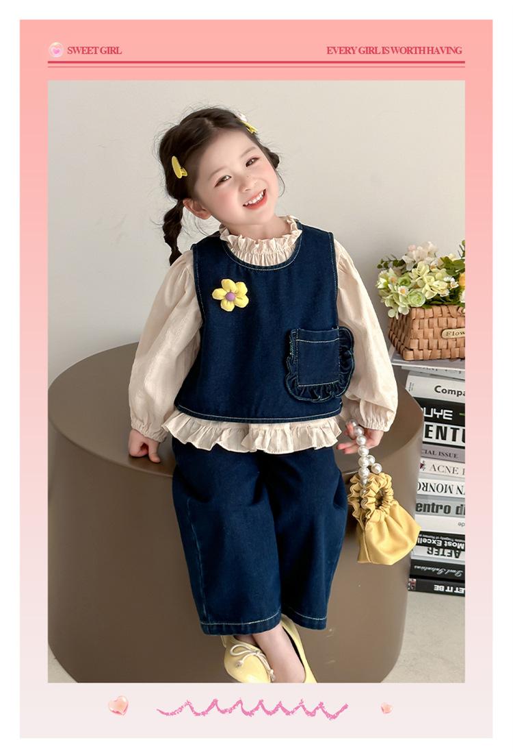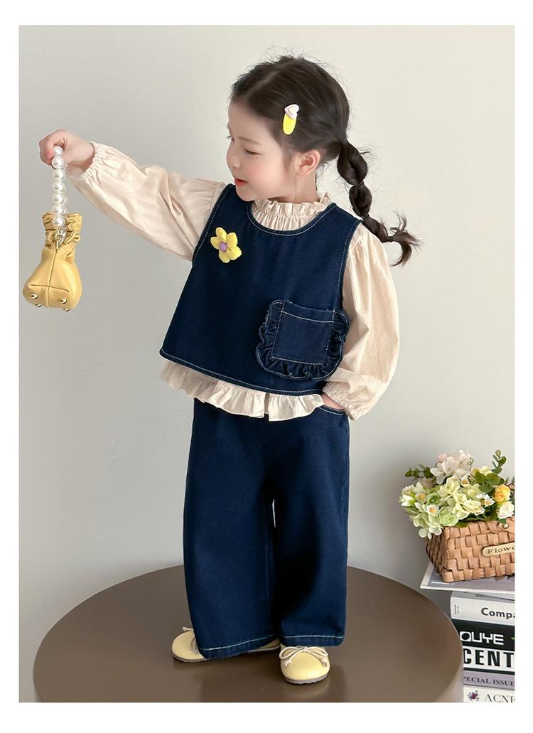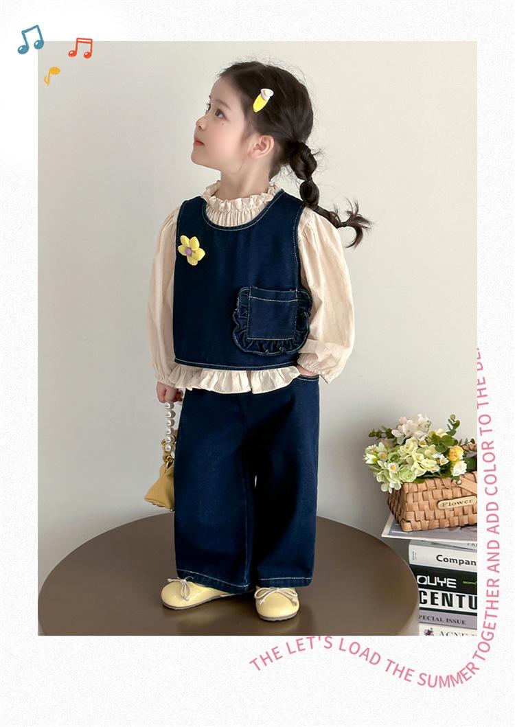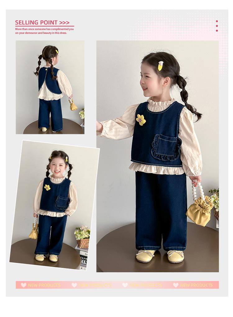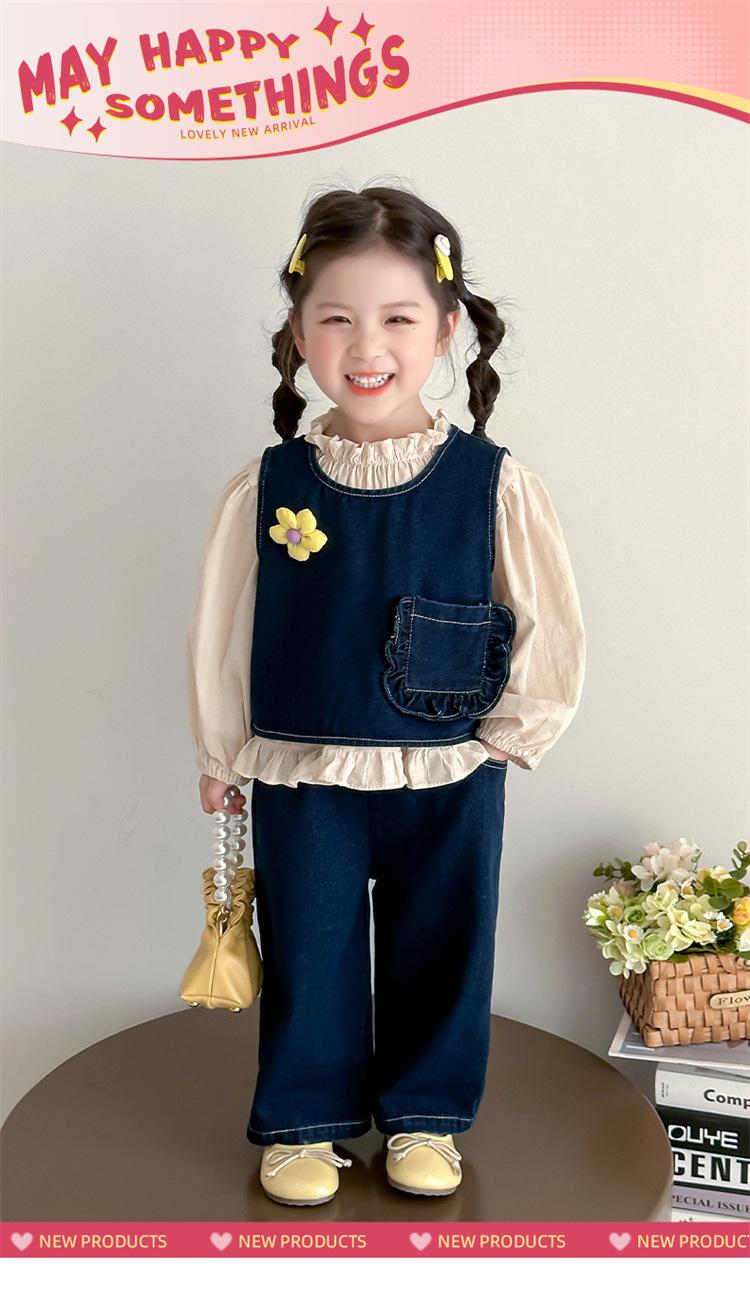 Colete feminino camisa básica calças de pernas largas jeans terno de três peças 2025 novo moda infantil estilo coreano terno para menina