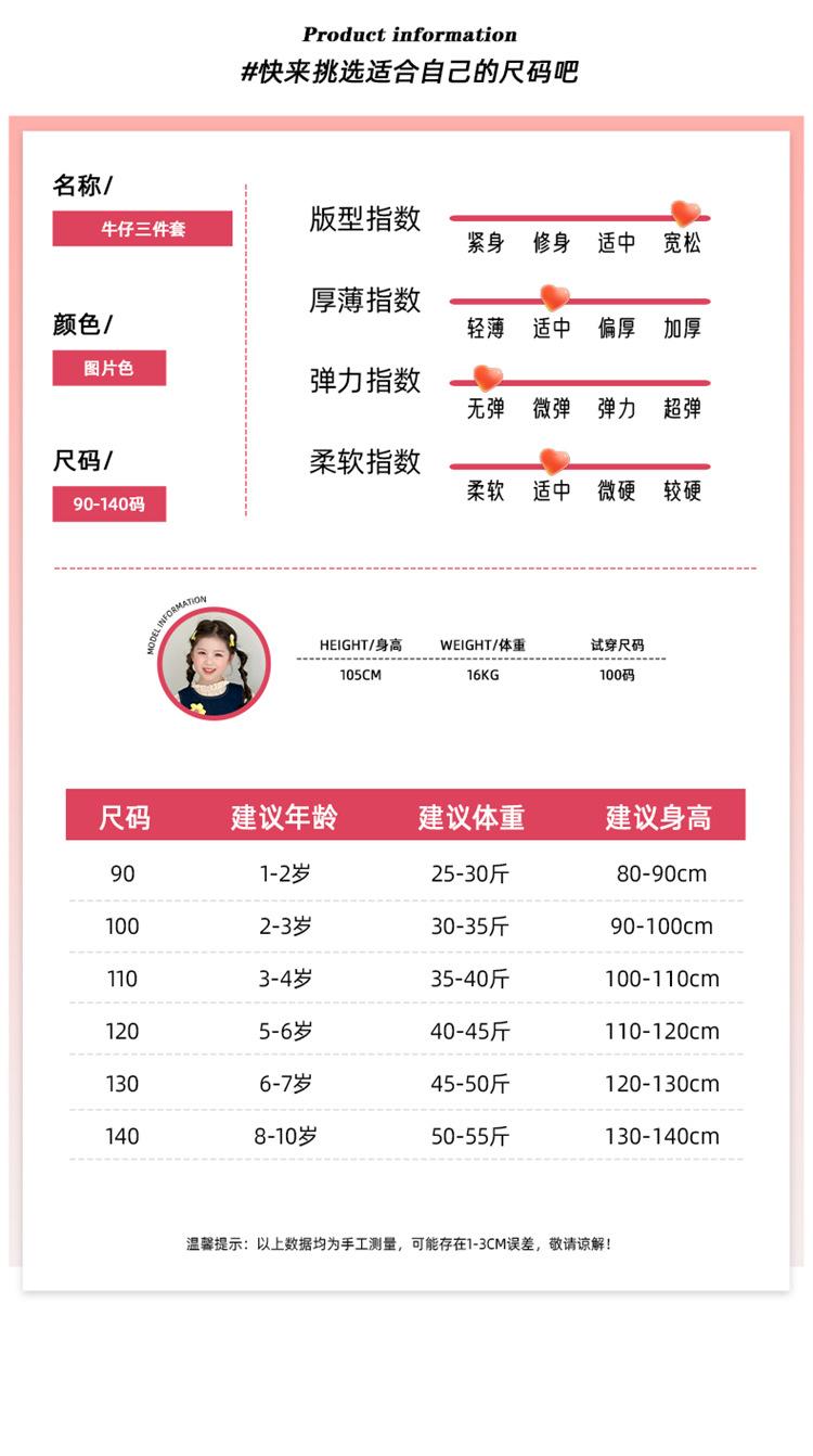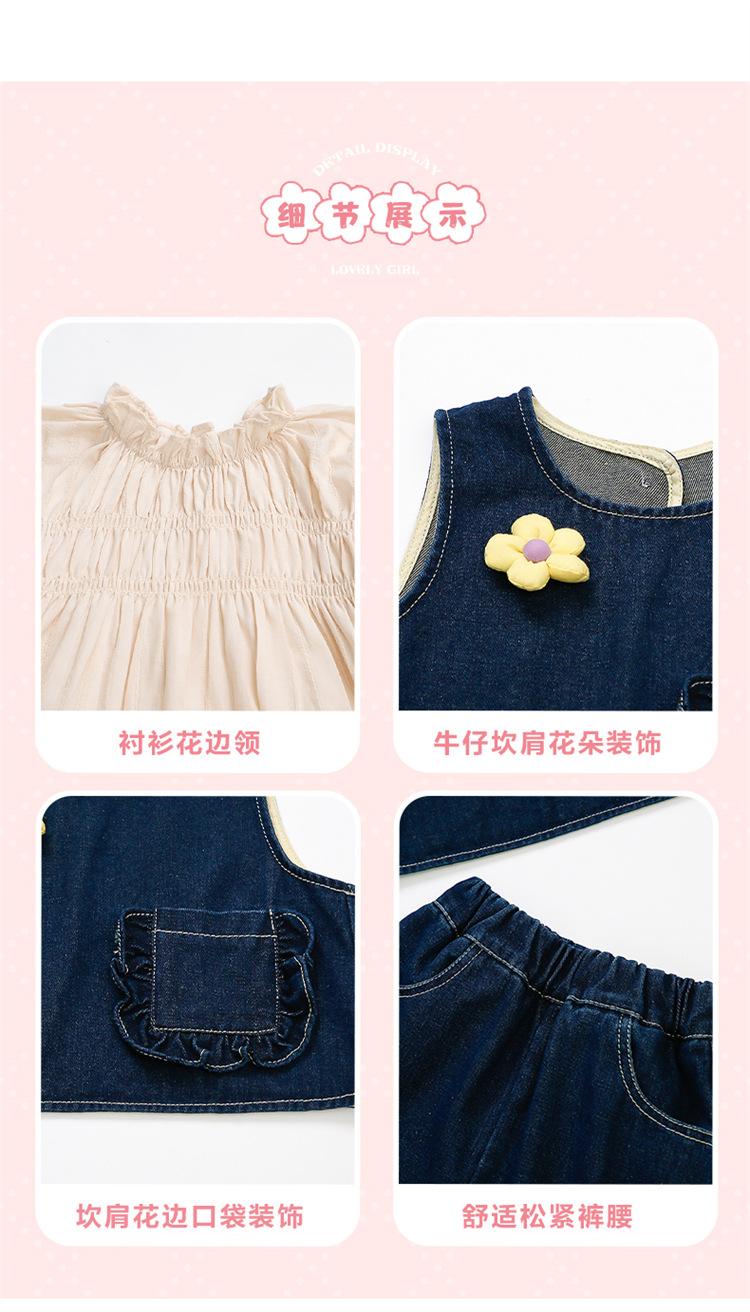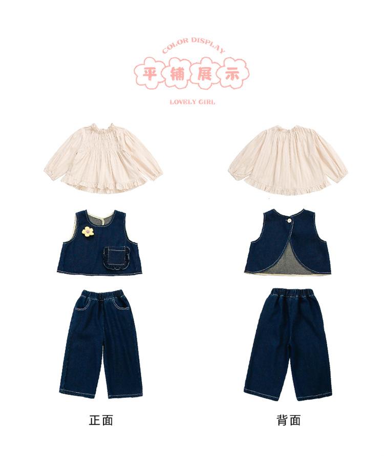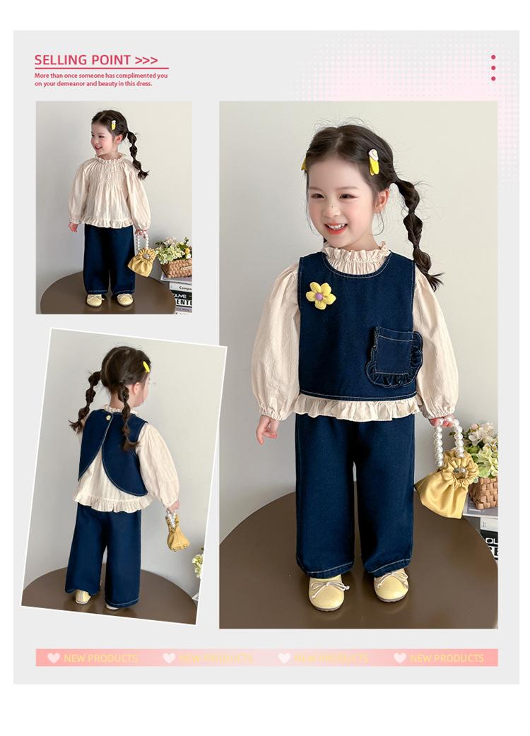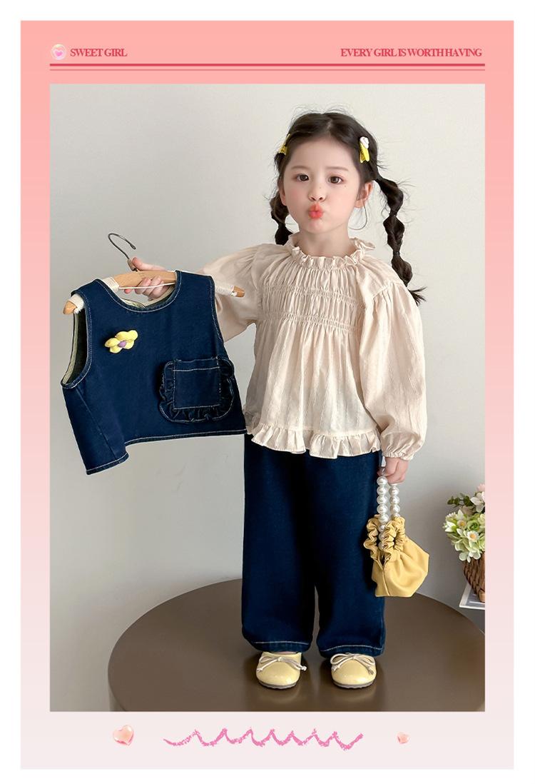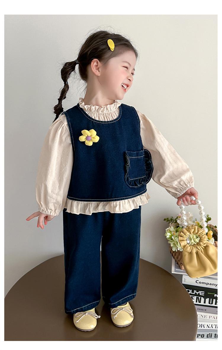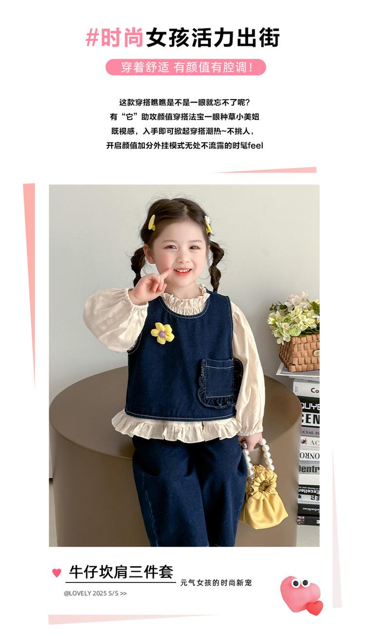 Colete feminino camisa básica calças de pernas largas jeans terno de três peças 2025 novo moda infantil estilo coreano terno para menina