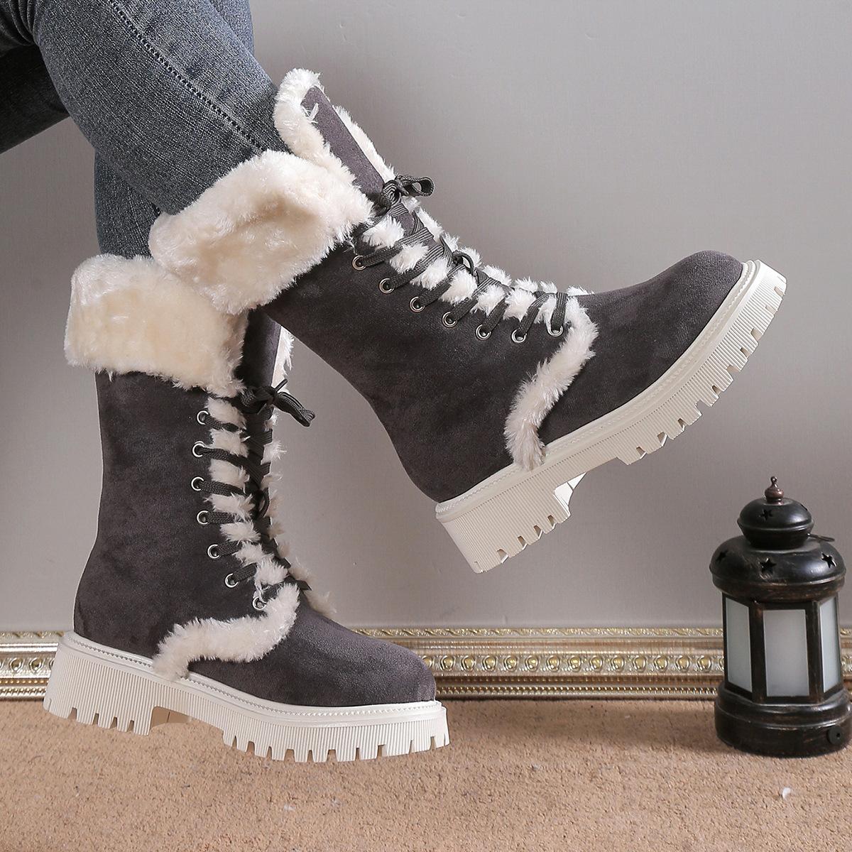 Comércio Exterior Tamanho Grande Botas Forradas de Lã Tamanho Feminino 41-43 Outono/Inverno 2025 Novas Botas de Neve Peludas Cano Médio de Camurça Transfronteiriças