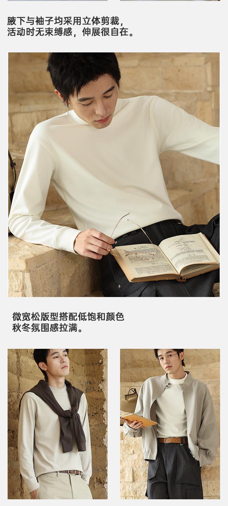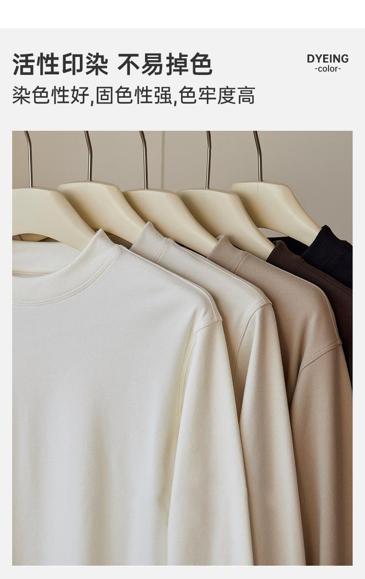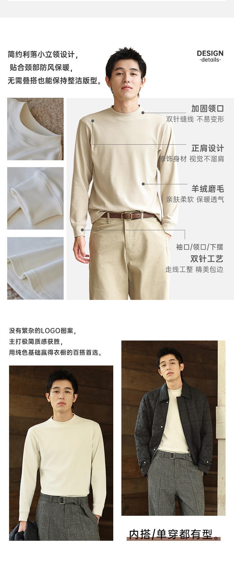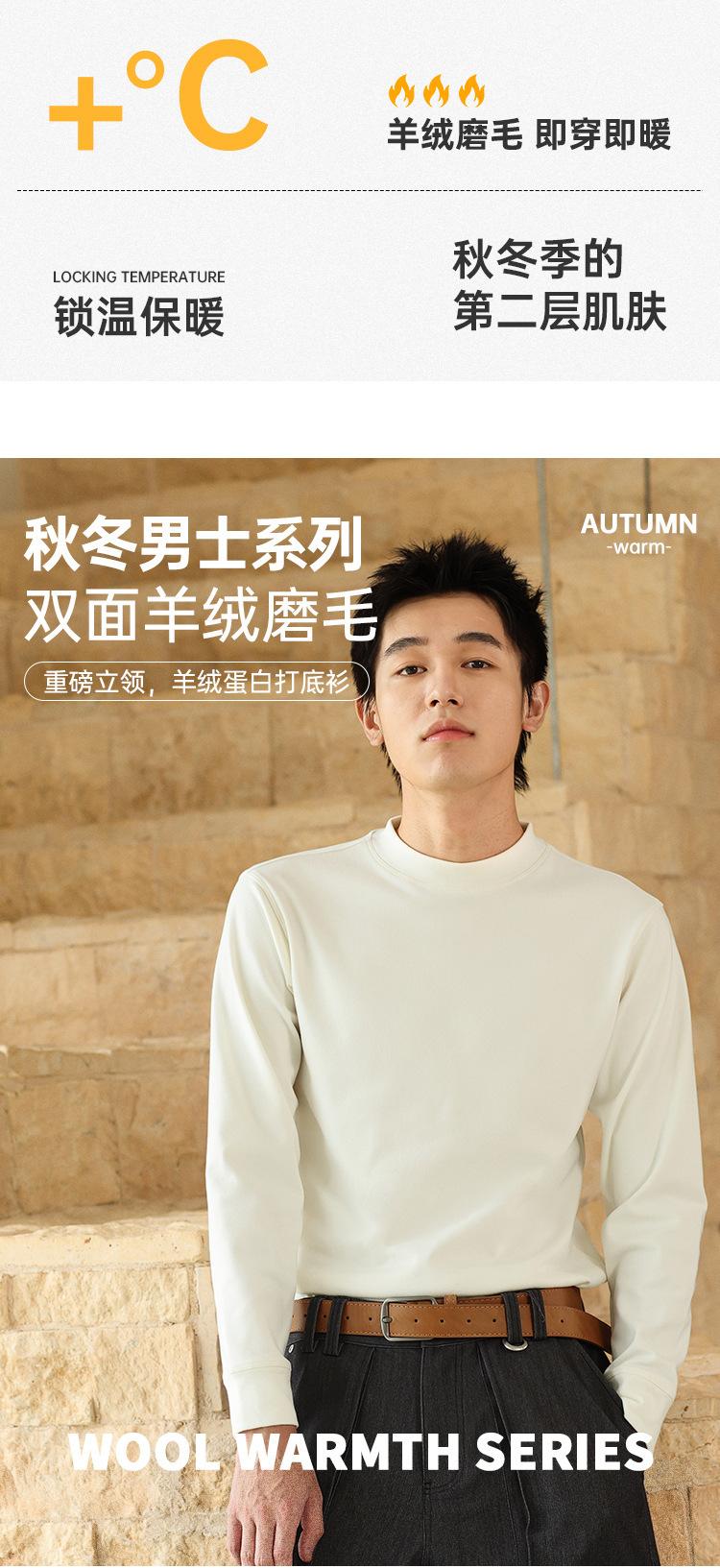 Camada de base masculina de gola alta escovada dupla face para outono e inverno para deslocamento, roupa interior ou roupa exterior, cor sólida, simples e versátil, manga curta, confortável e quente