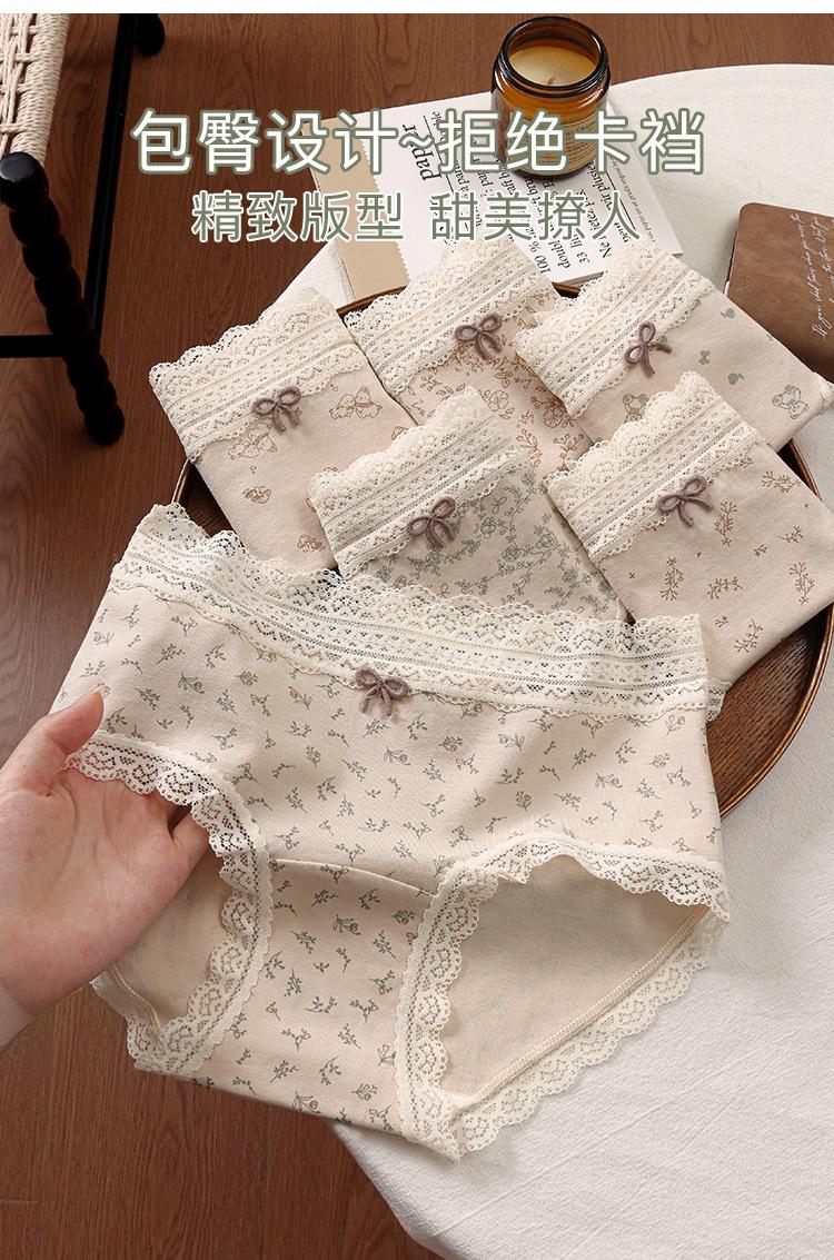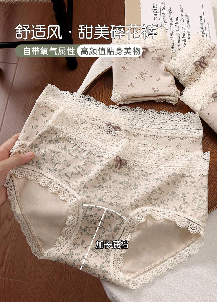 Compre 2025 Nova Roupa Íntima Feminina Algodão Puro 10A Antibacteriana Todo Algodão Cavalo Estendido Calcinha Cintura Média com Acabamento em Renda no atacado no Joom.pro
