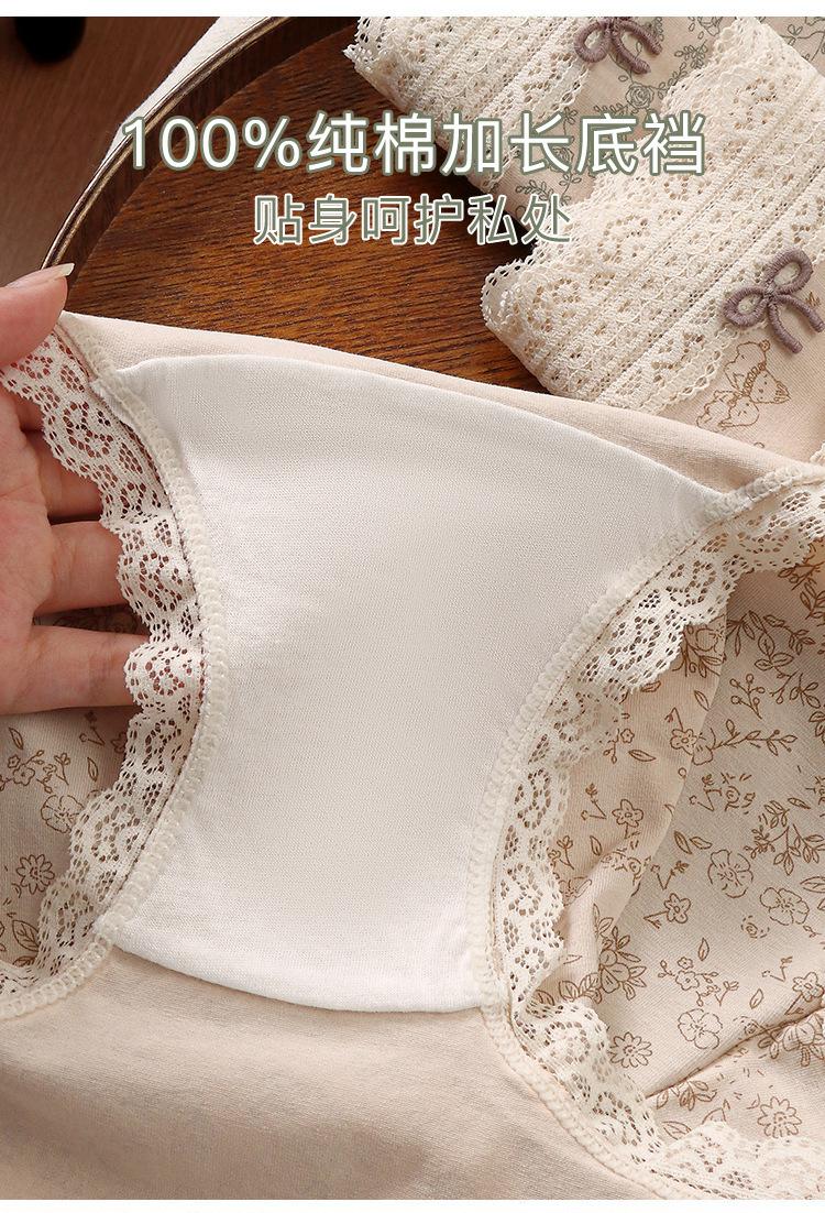 2025 Nova Roupa Íntima Feminina Algodão Puro 10A Antibacteriana Todo Algodão Cavalo Estendido Calcinha Cintura Média com Acabamento em Renda
