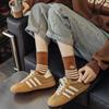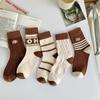 Meias Femininas Primavera Outono Cor Café Bloco de Cores Espessas Algodão Penteado Meias Agulha Dupla Meias Femininas Respiráveis Absorventes de Suor Aplicável às Quatro Estações