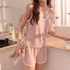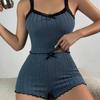 2024 Novo Estilo Europeu e Americano Novo Pijama Elástico Feminino Sexy Camisola Shorts Algodão Imitação Arranhão Cava Roupa de Casa