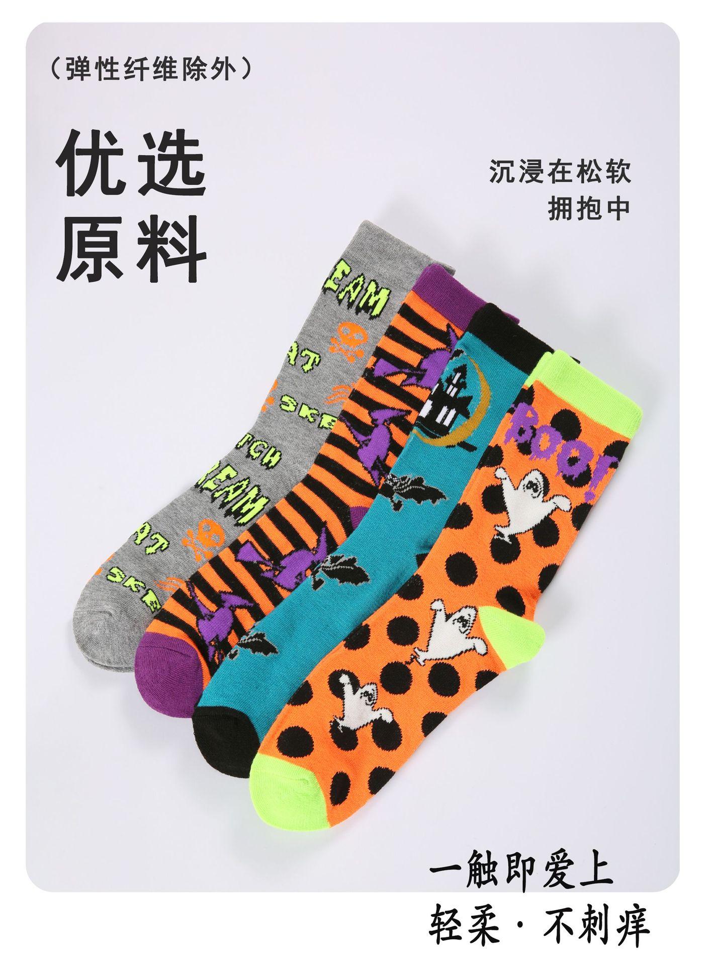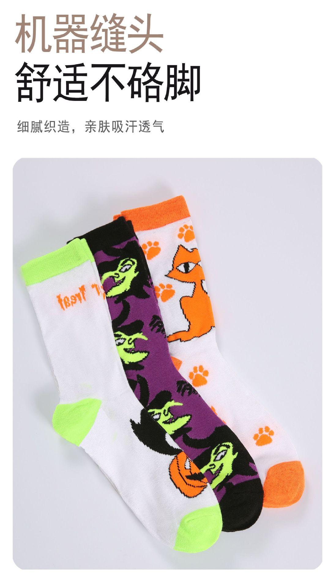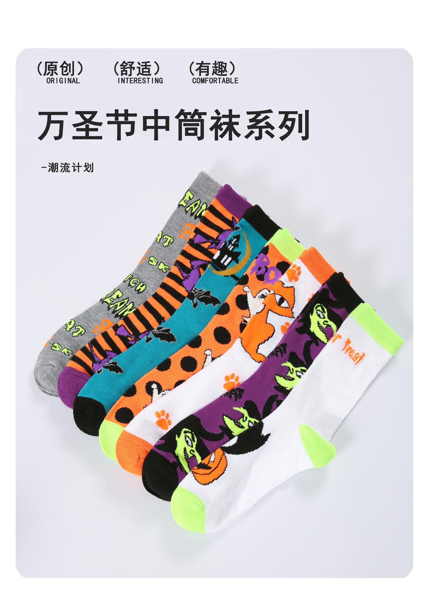 Meias transfronteiriças comércio exterior meias de Halloween meias criativas de cano médio padrão de abóbora engraçadas fofas tendência transfronteiriça