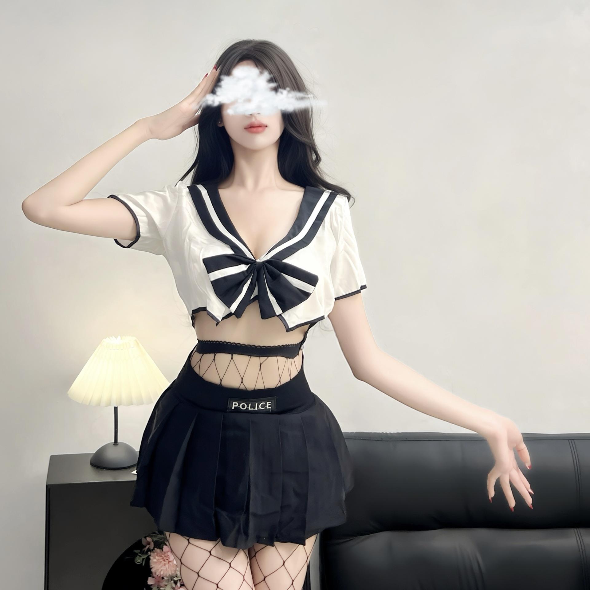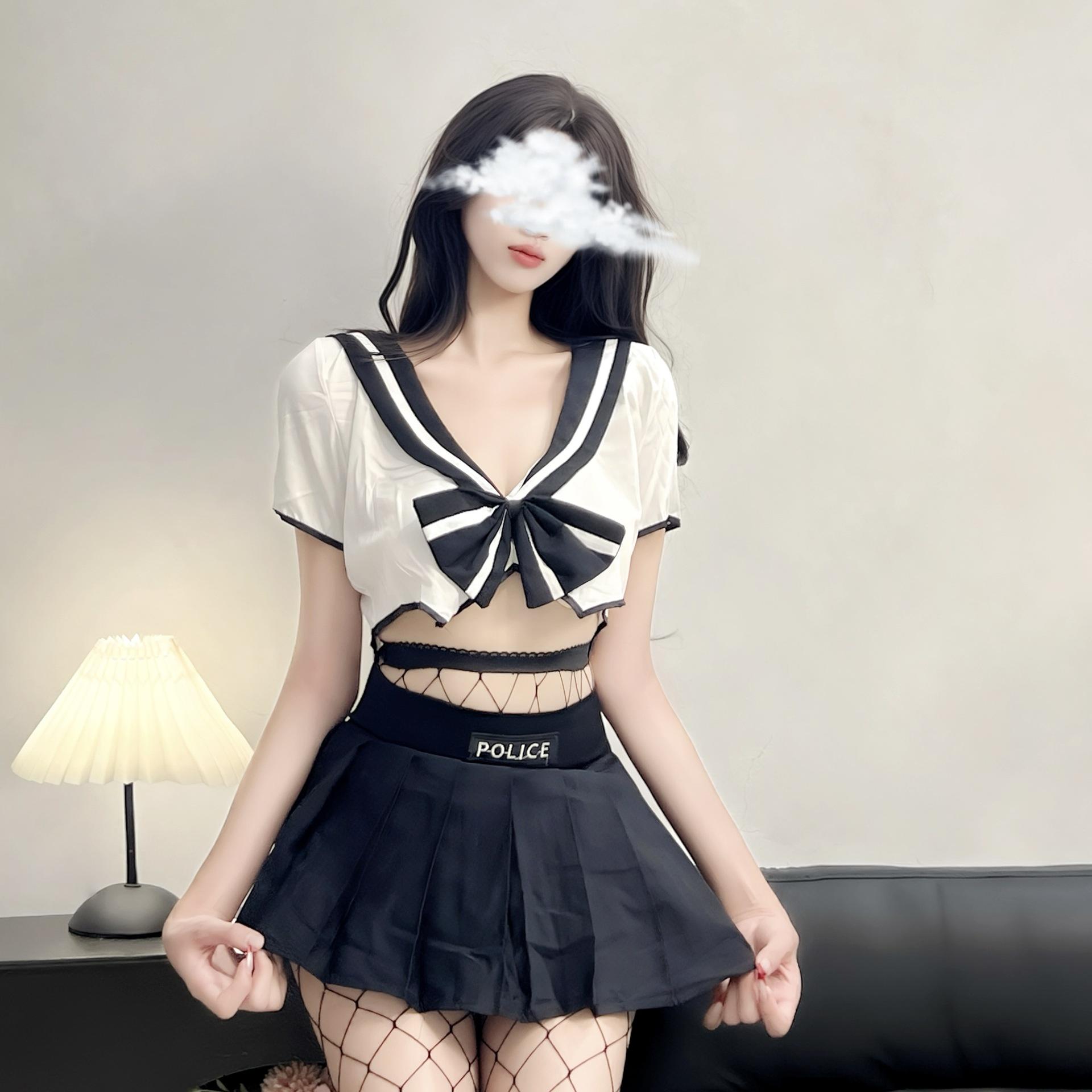 JK Set (Top + Skirt + Thong), JK suit + white student socks, JK suit + black student socks, JK set + black fis...