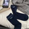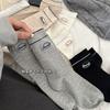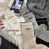 Outono e inverno meias novas mulheres ins coreano bordado letra textura sem costura algodão meias de cano médio meias casuais esportivas femininas