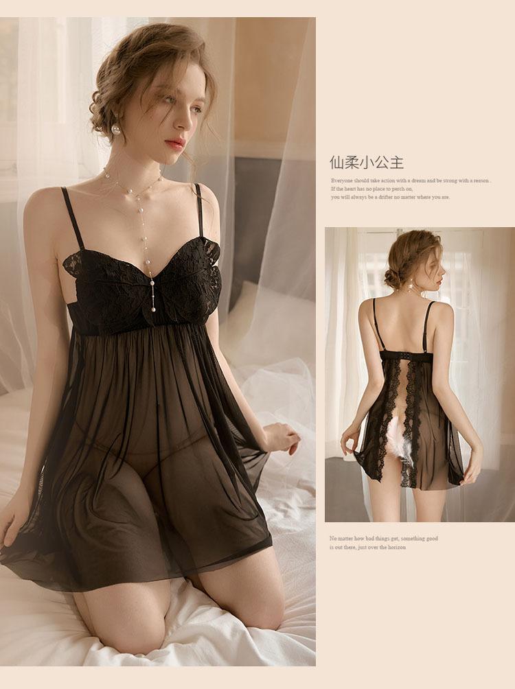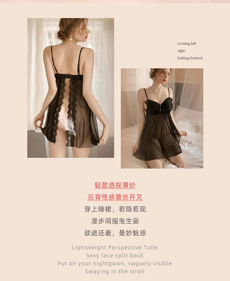 Robe Sexy Transparente Tentação Fenda Profunda V Costas Nuas Não Precisa Remover Com Aro Bojo Que Aumenta Os Seios Conjunto Duas Peças 3120