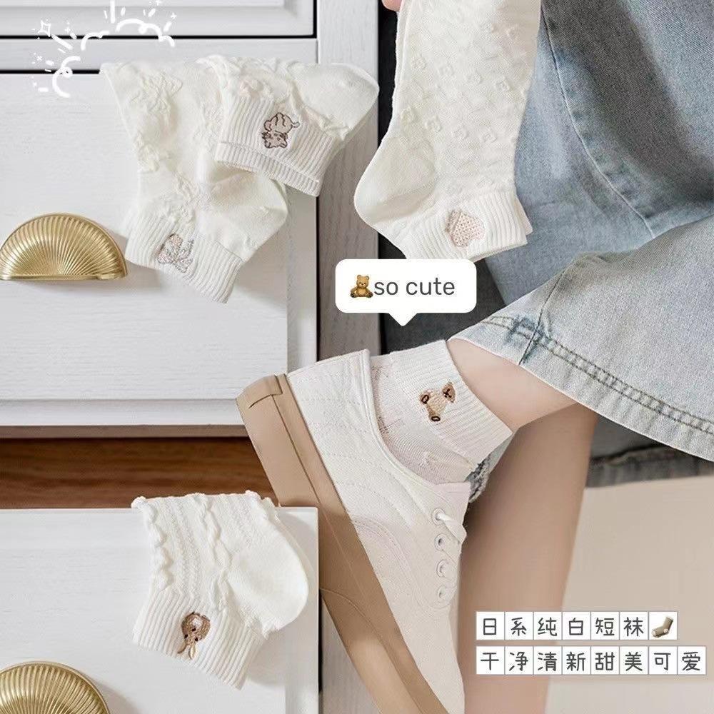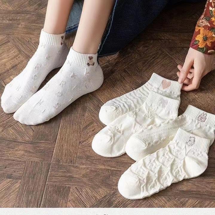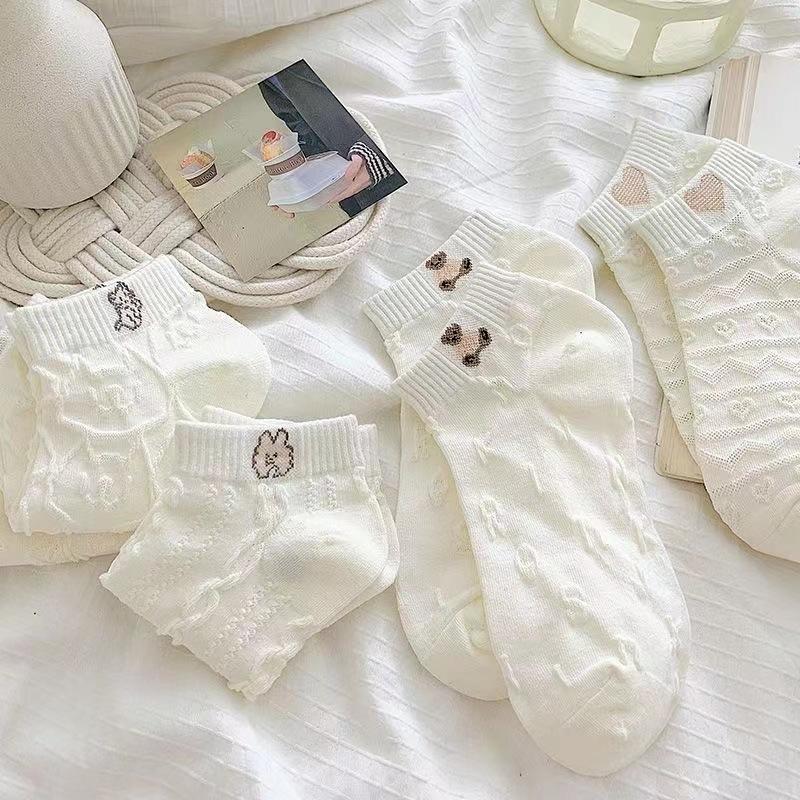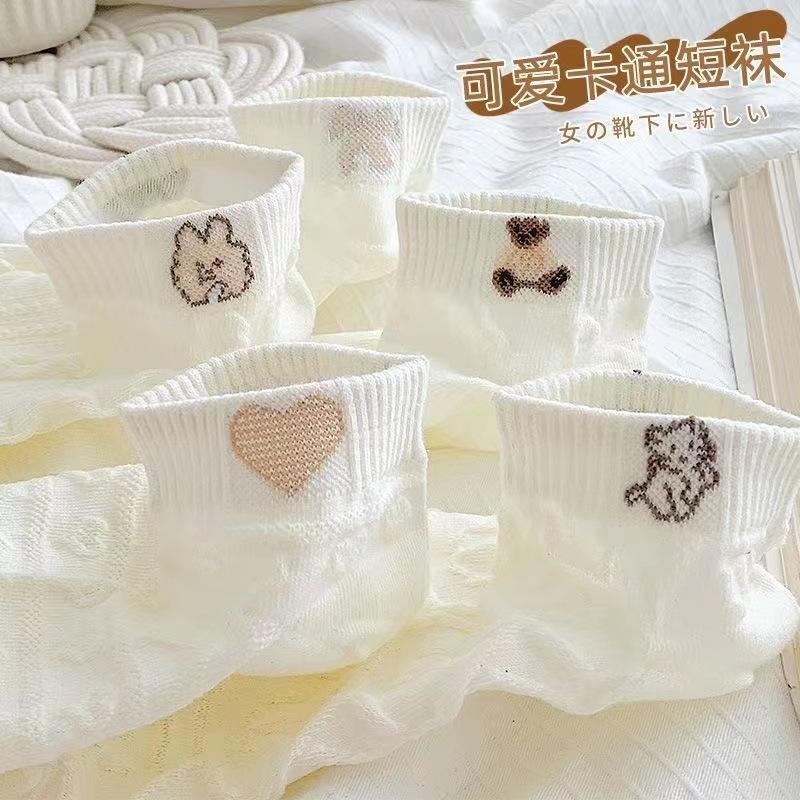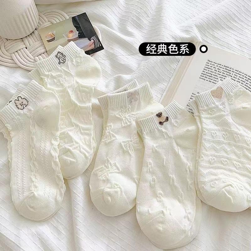 Compre Meias Curtas Brancas Meias Femininas Verão Finas Absorventes de Suor Respiráveis Doces Cor Sólida Meias de Algodão Fofas Meias Sapatilha de Cano Baixo para Mulheres no atacado no Joom.pro