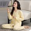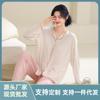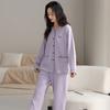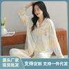 Pijama Feminina Primavera e Outono Manga Longa Renda Pequena Lapela Cardigan Doce Floral Conjunto Estudante Pode Ser Usado Fora Calça Longa Fina