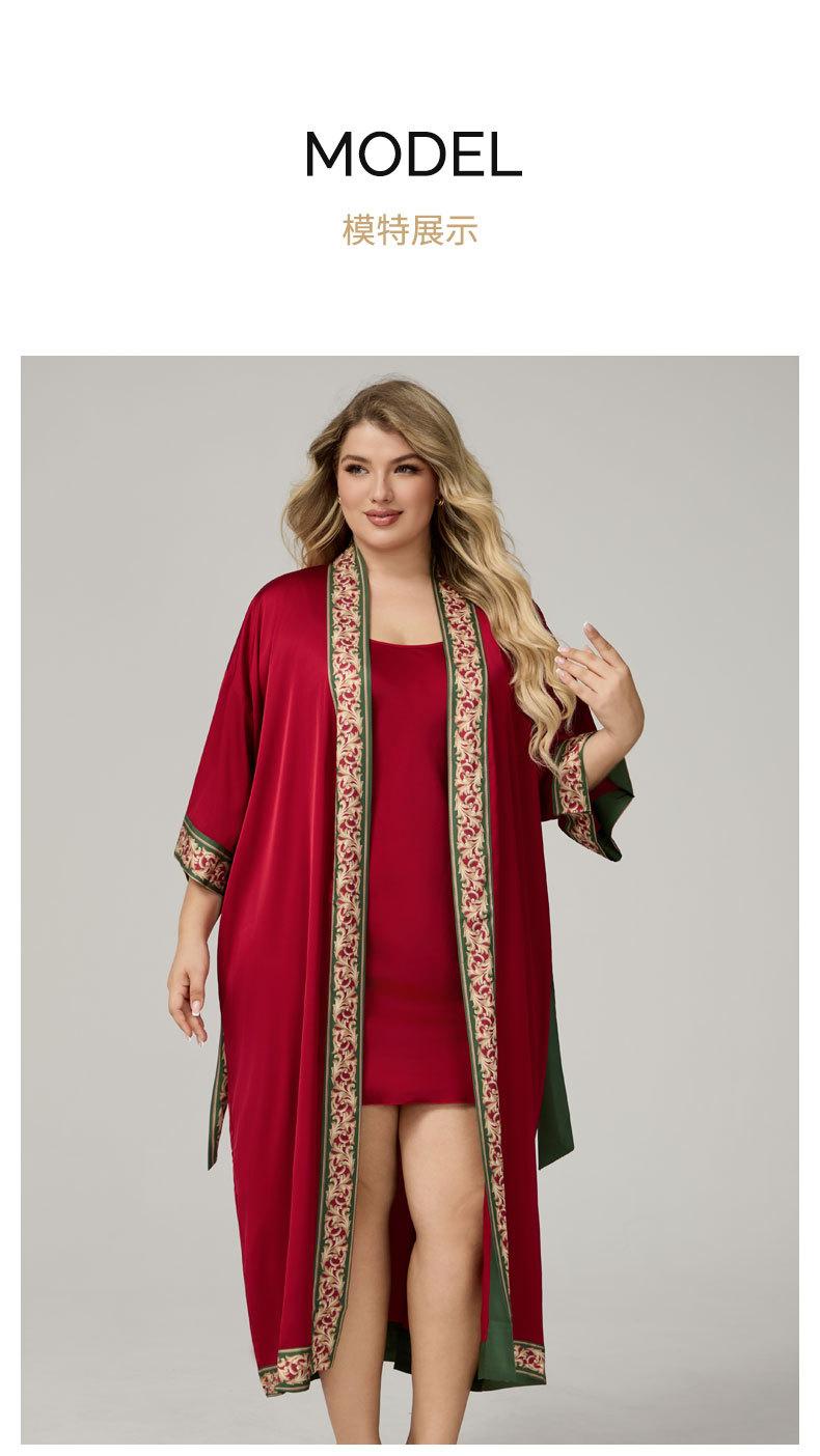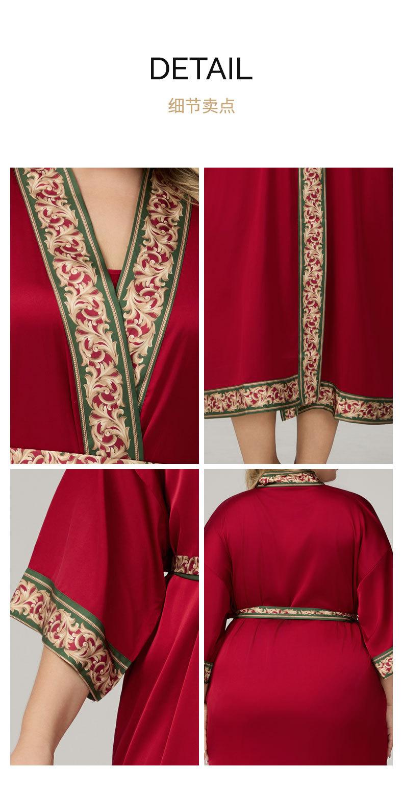 Camisola de Cetim Tamanho Plus Yaoting Feminina Regata Cor Sólida Roupa de Casa de Luxo Conjunto Roupão de Cetim 3586+3372