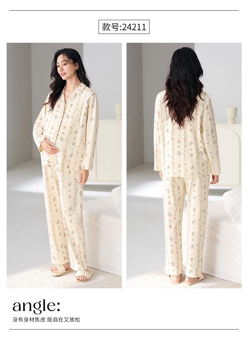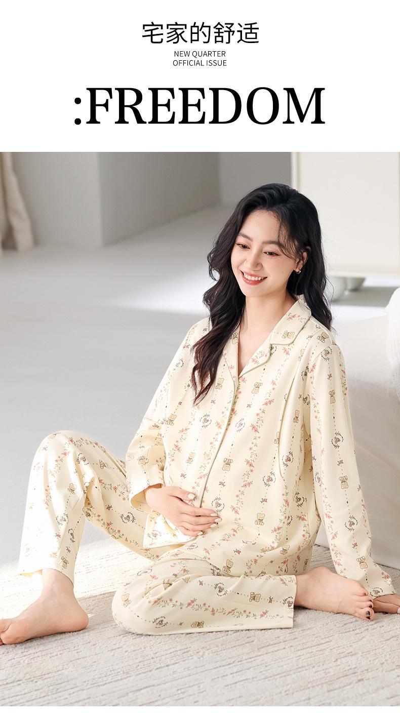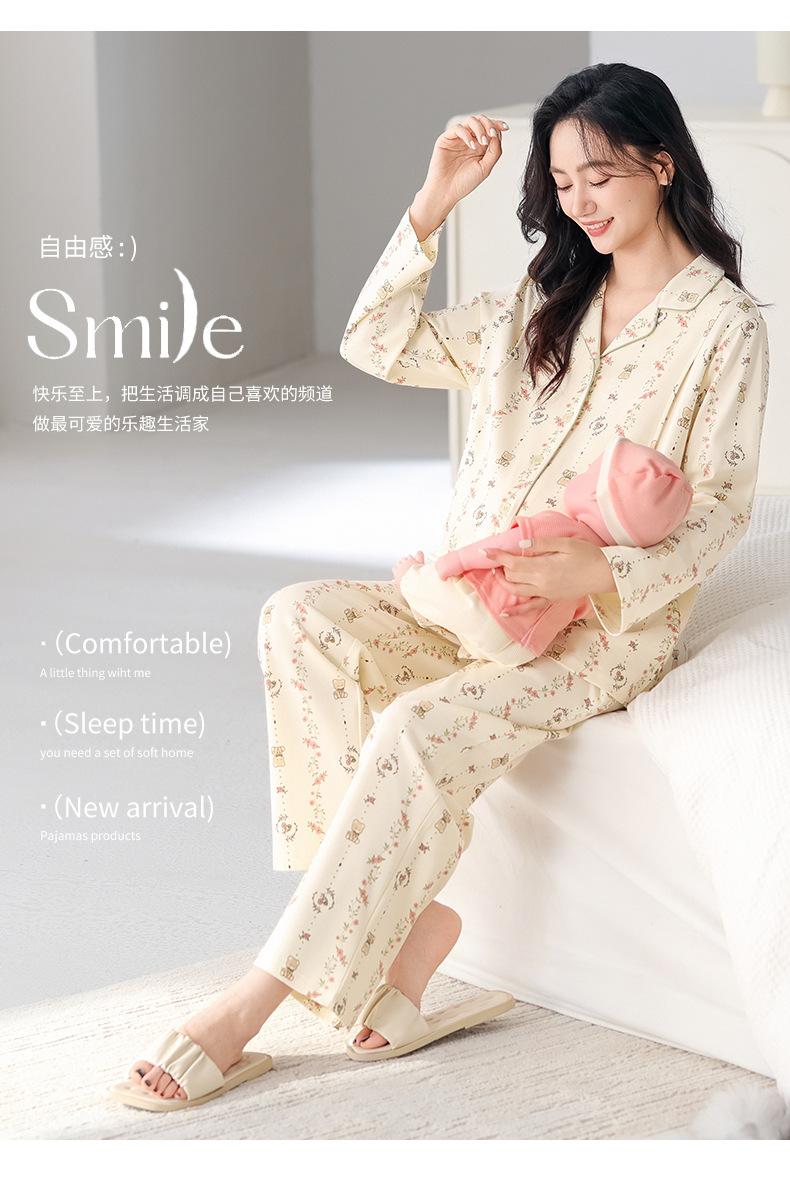 Roupas de Maternidade de Algodão Puro Outono/Inverno Novas Primavera/Outono Gravidez Pós-parto Mulheres Grávidas Pijama de Amamentação Algodão Absorvente de Suor Roupa de Casa Atacado