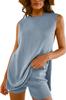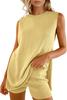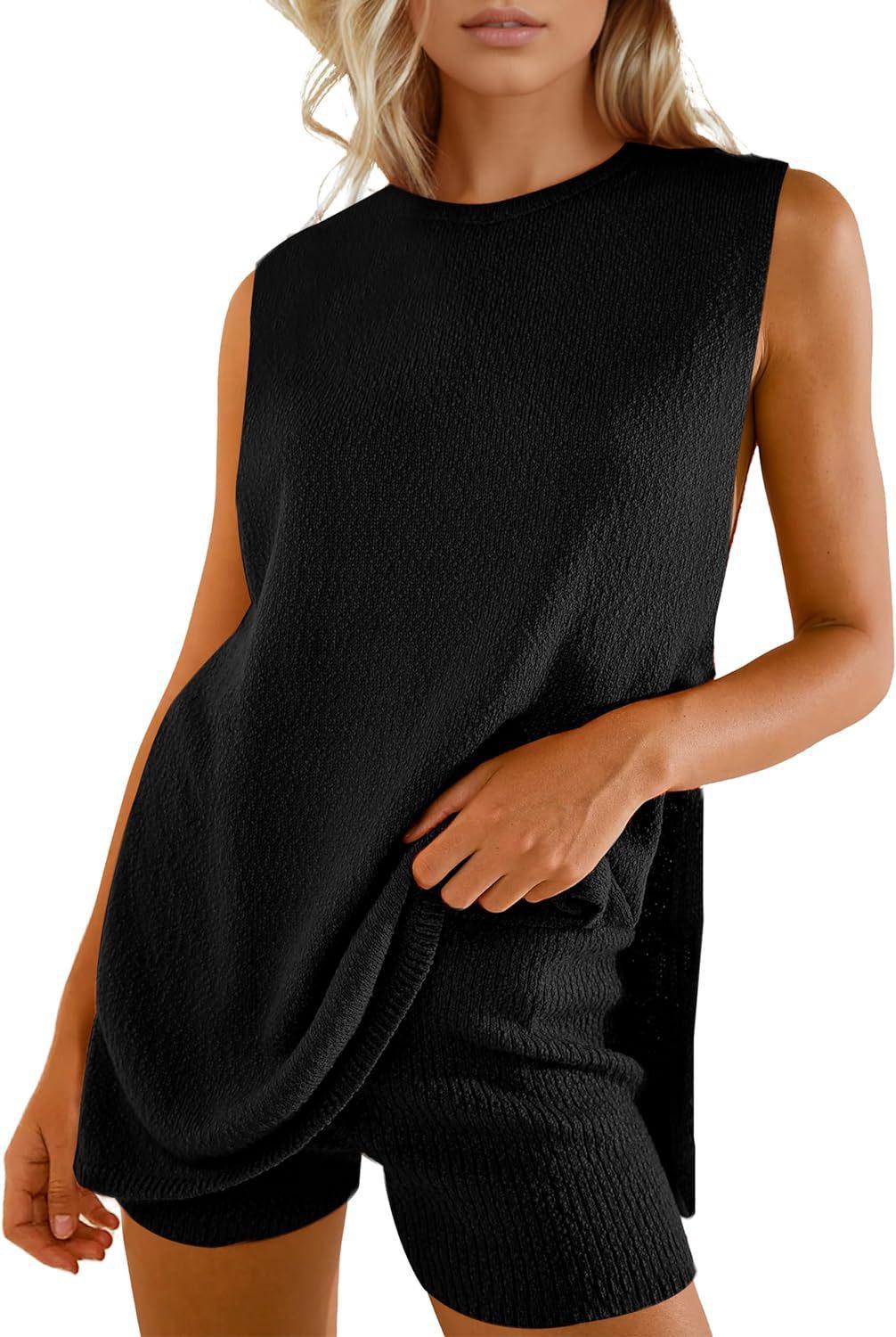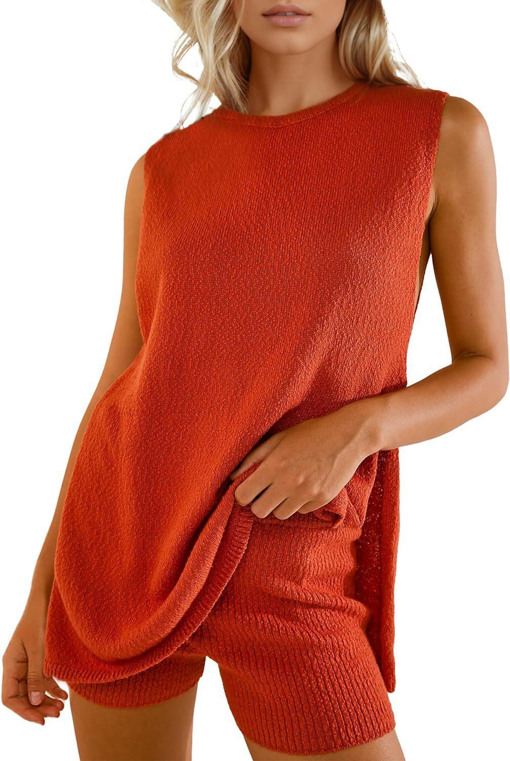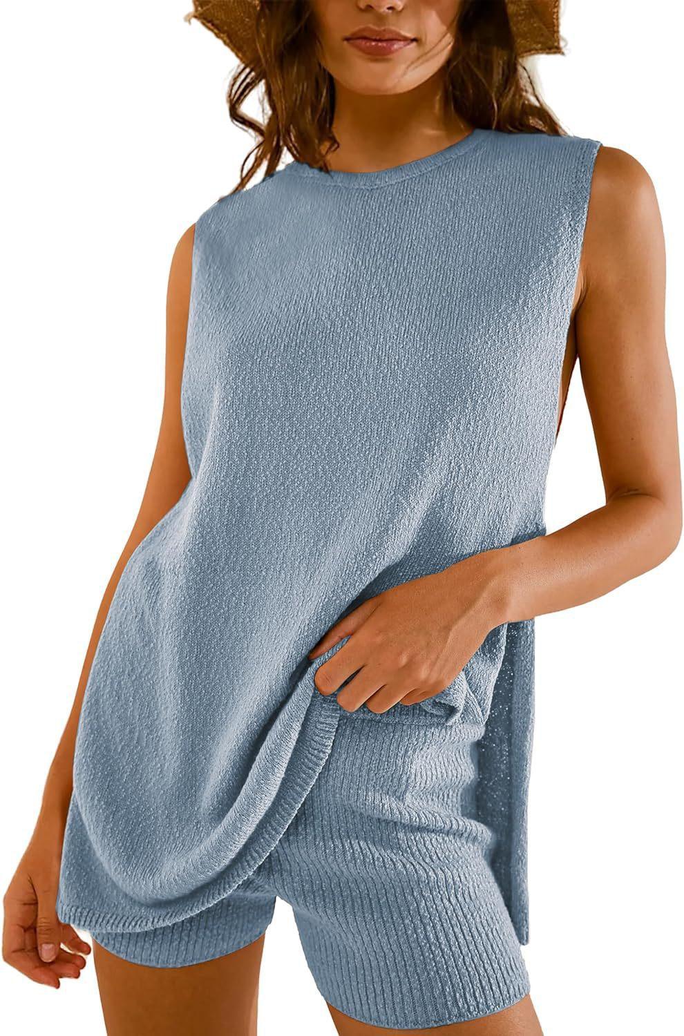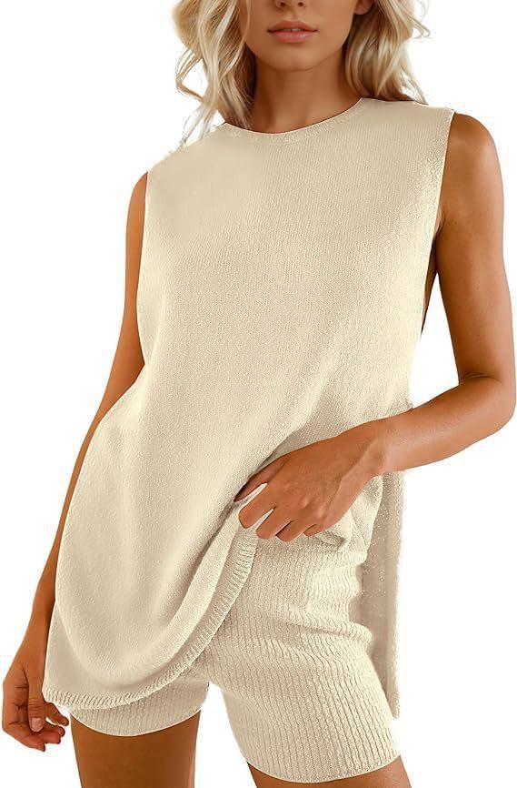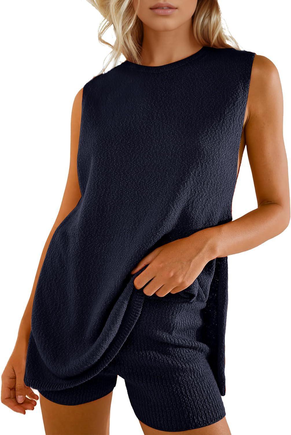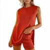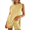 Pijama de Malha Feminina Europeia e Americana Transfronteiriça Conjunto de Duas Peças Regata de Tricô Sem Mangas Shorts Roupa de Casa Conjunto Casual