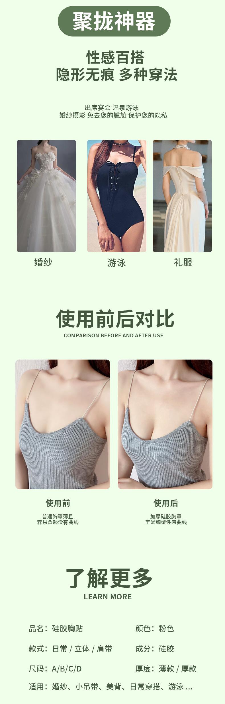 Adesivo de Peito Invisível de Silicone Verão Vestido de Noiva Alça Especial Sutiã Push-Up Espessado Reutilizável