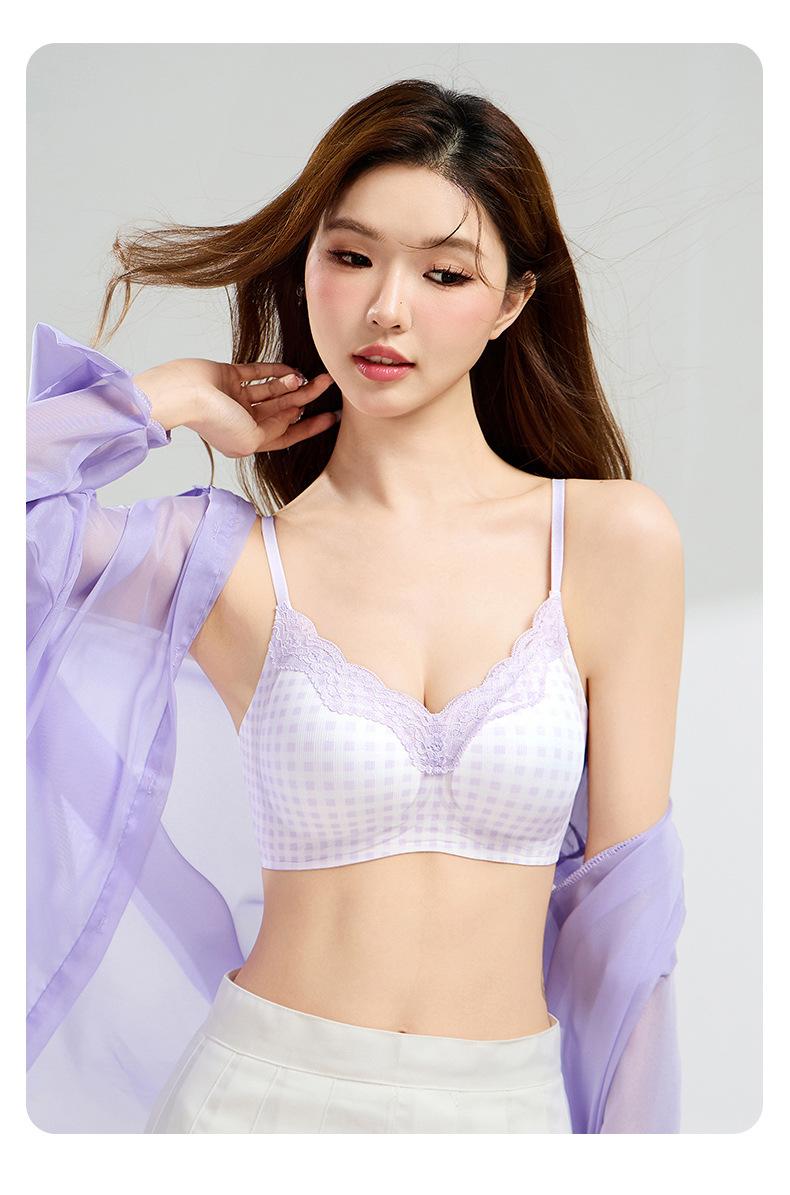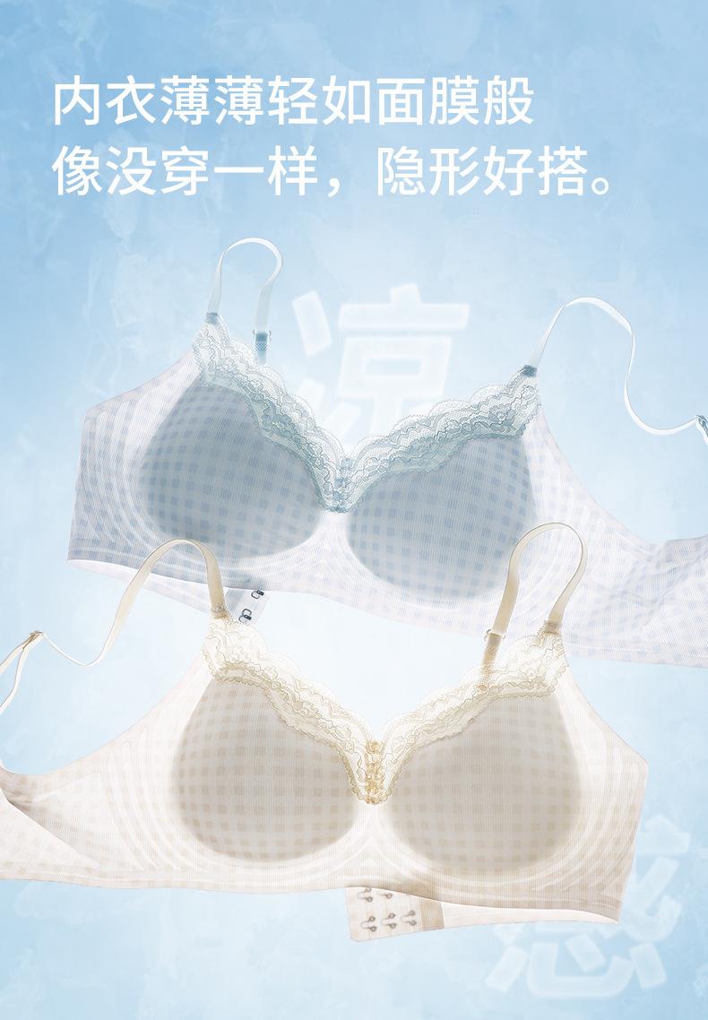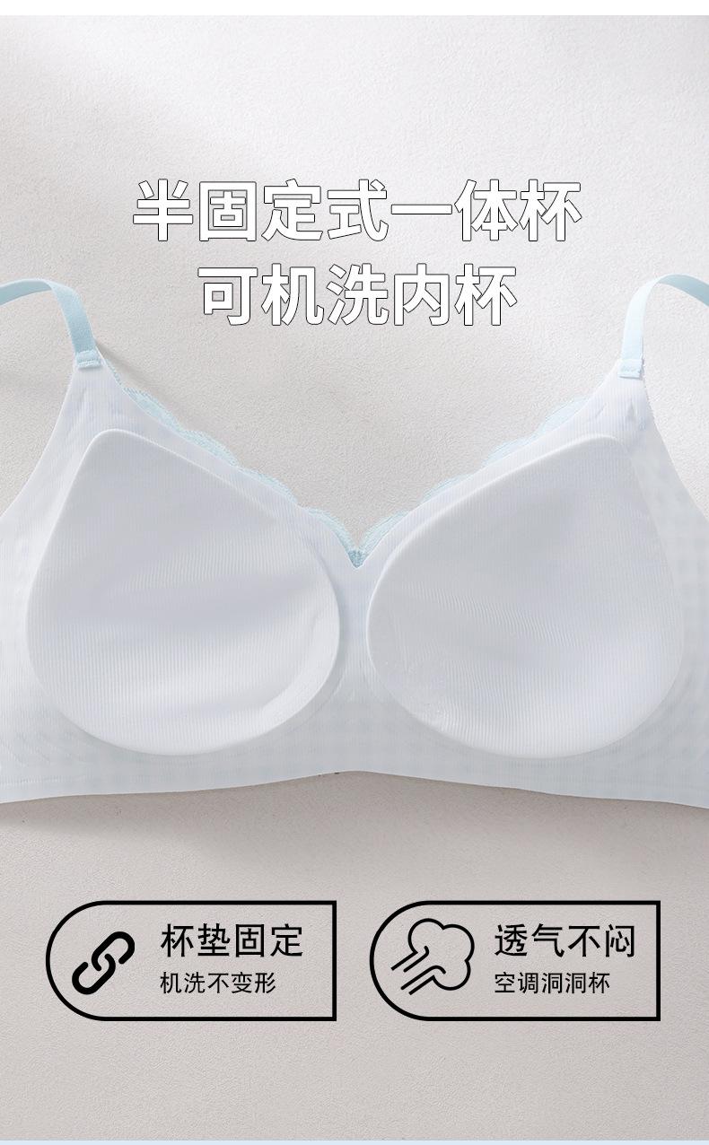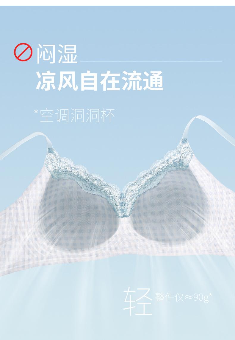 Renda Cool Seamless Íntimos para Mulheres Verão Respirável Xadrez Sutiã Sem Aro Copa Furo Fino Sutiã Push-Up