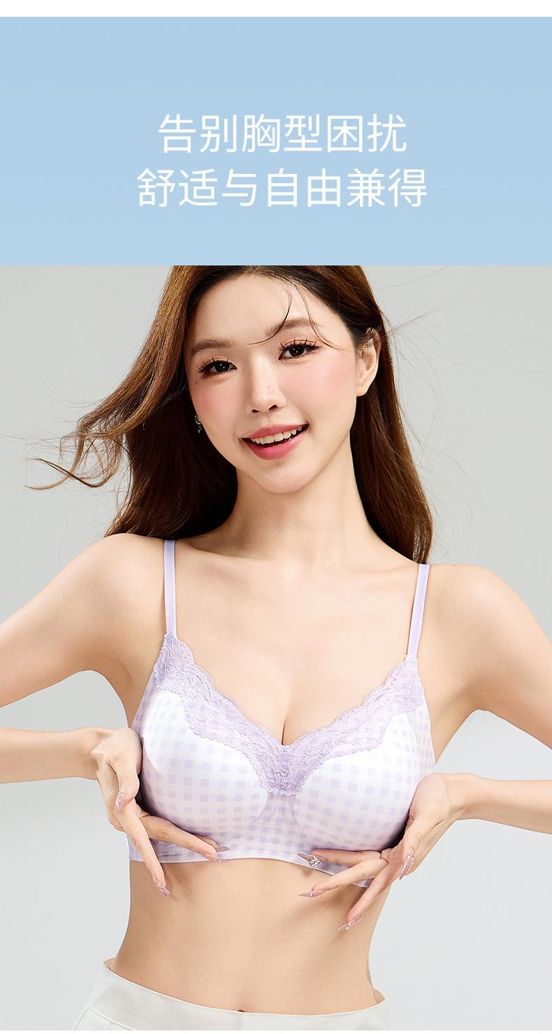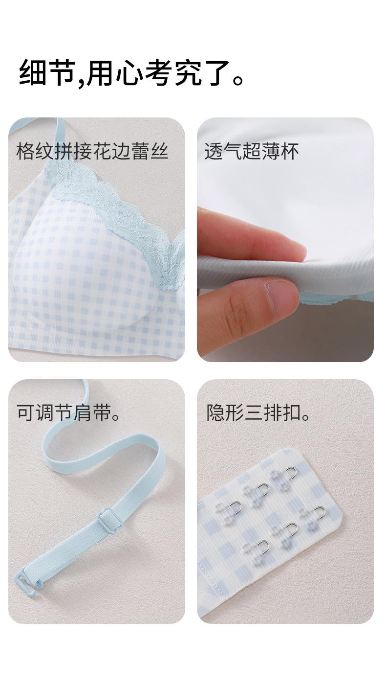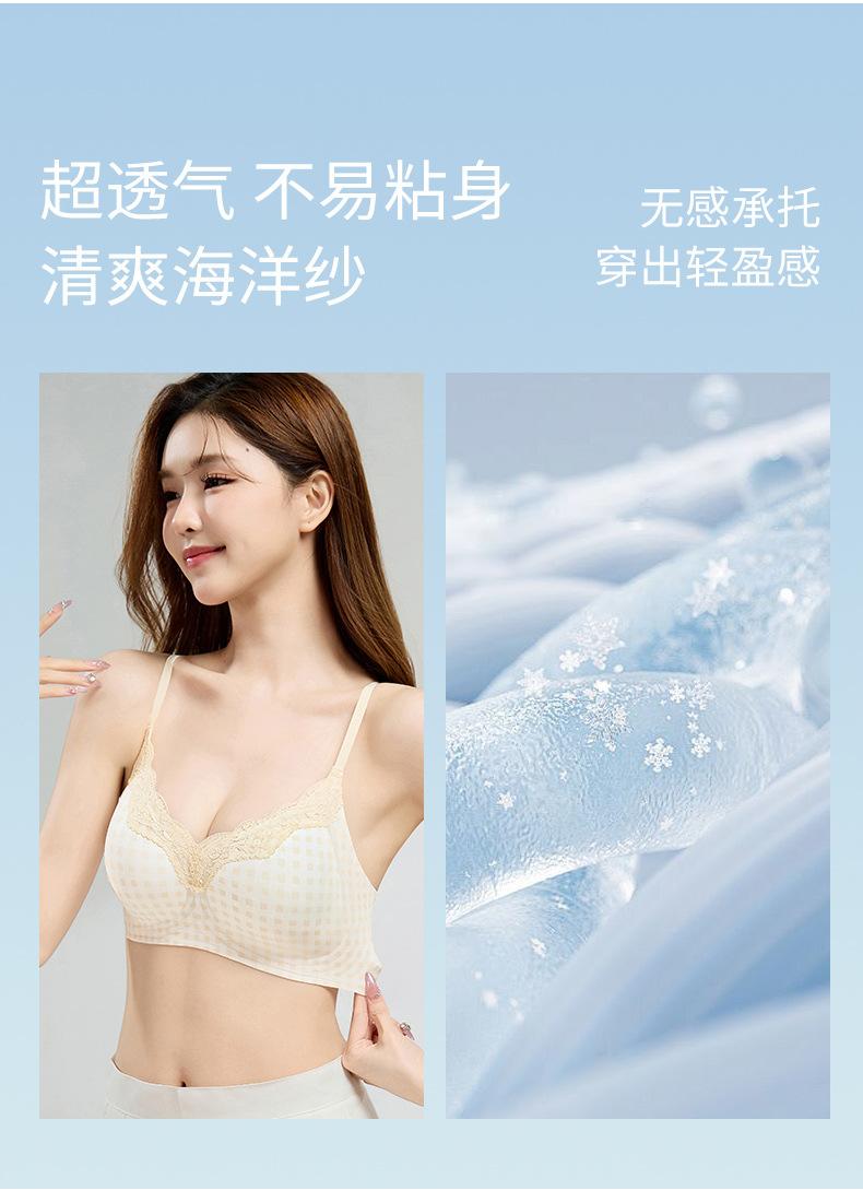 Renda Cool Seamless Íntimos para Mulheres Verão Respirável Xadrez Sutiã Sem Aro Copa Furo Fino Sutiã Push-Up