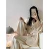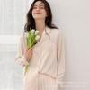 Pijama feminina de seda gelo fresca estilo coreano ins leve de luxo conjunto de duas peças de calça comprida de manga comprida fina para primavera e outono roupa de casa atacado