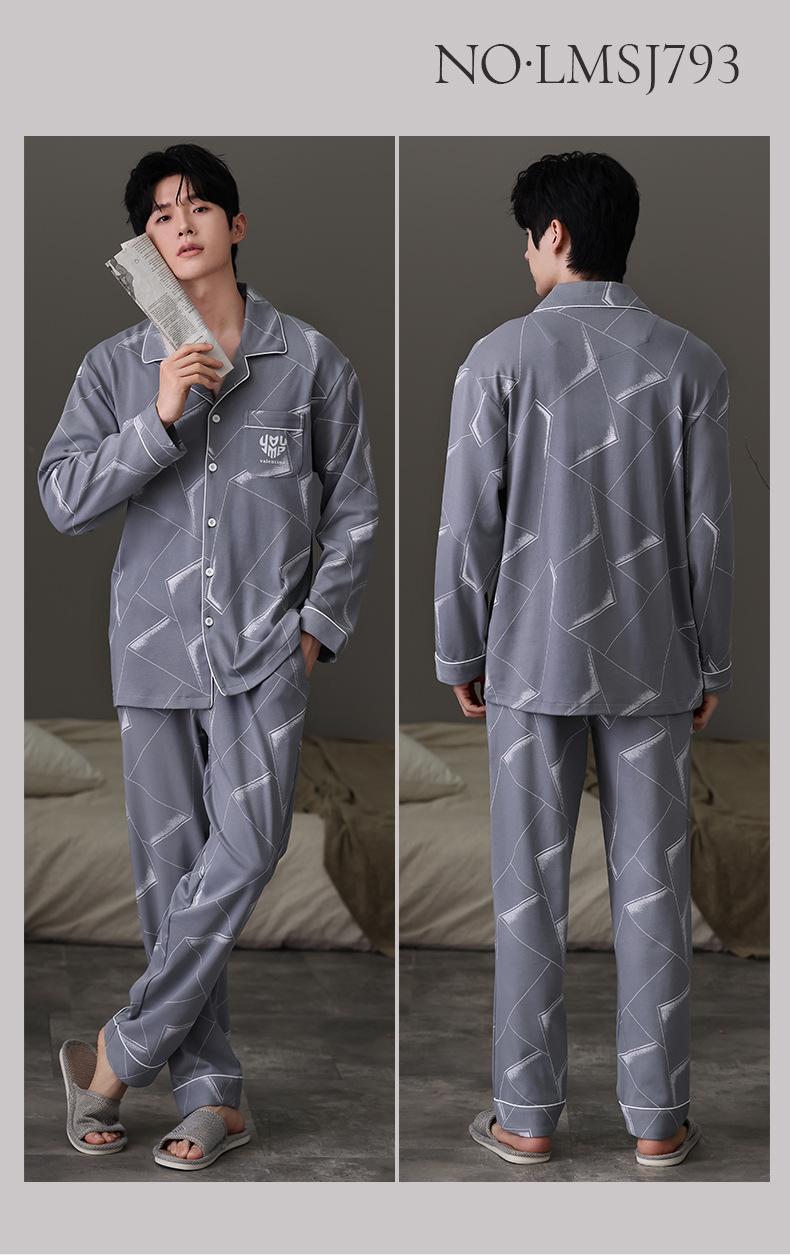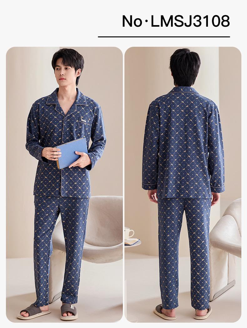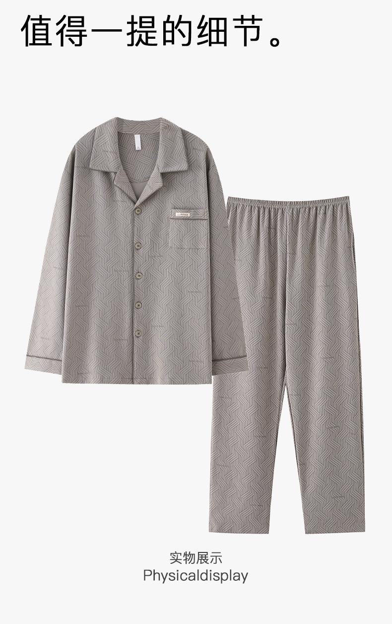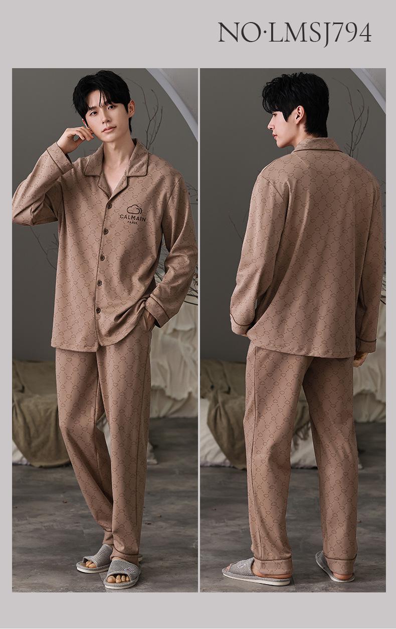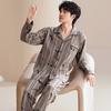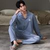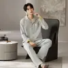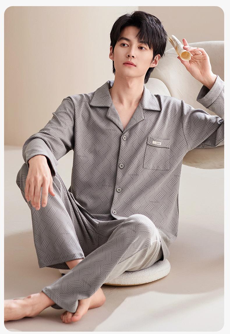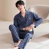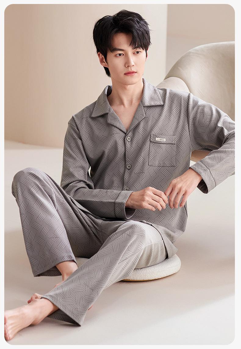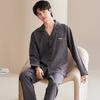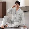 Pijama Masculina Outono 2025 Nova 100% Algodão Puro Cardigã Manga Longa Calça Longa Confortável Algodão Puro Roupa de Casa Conjunto Plus Size