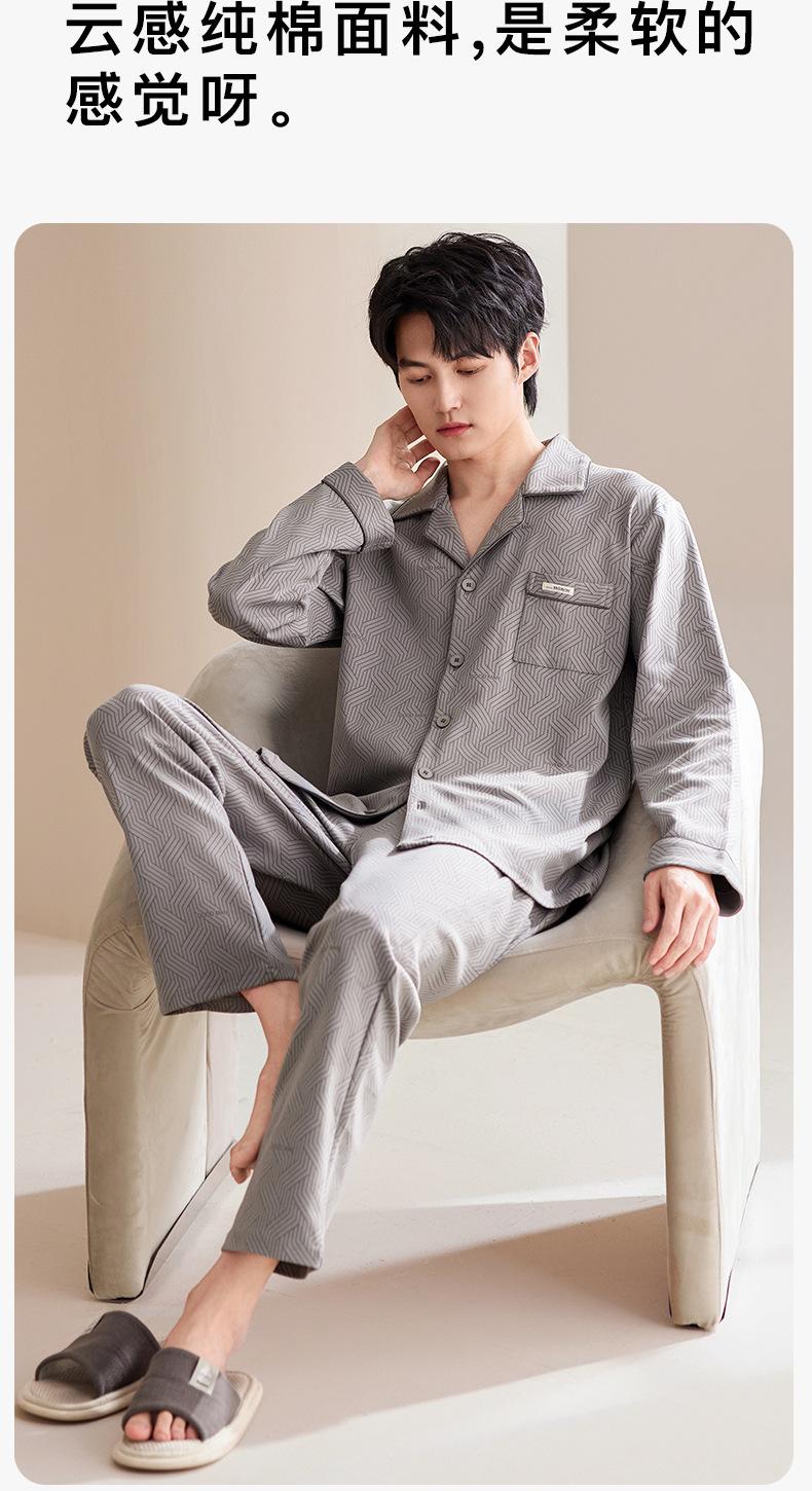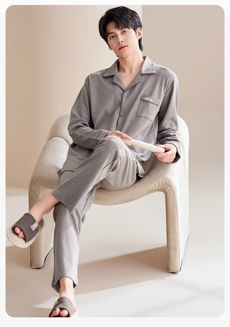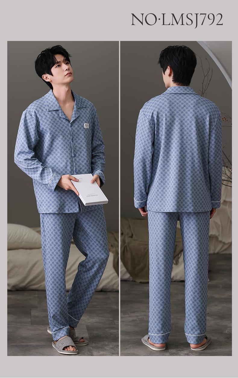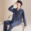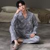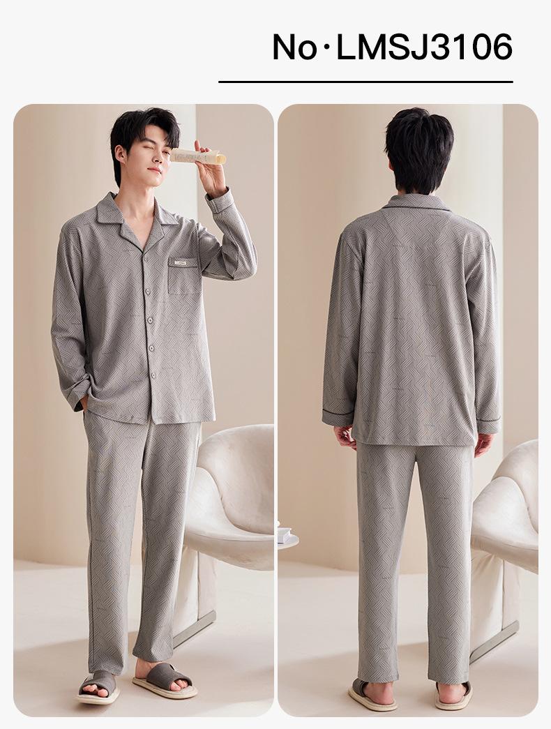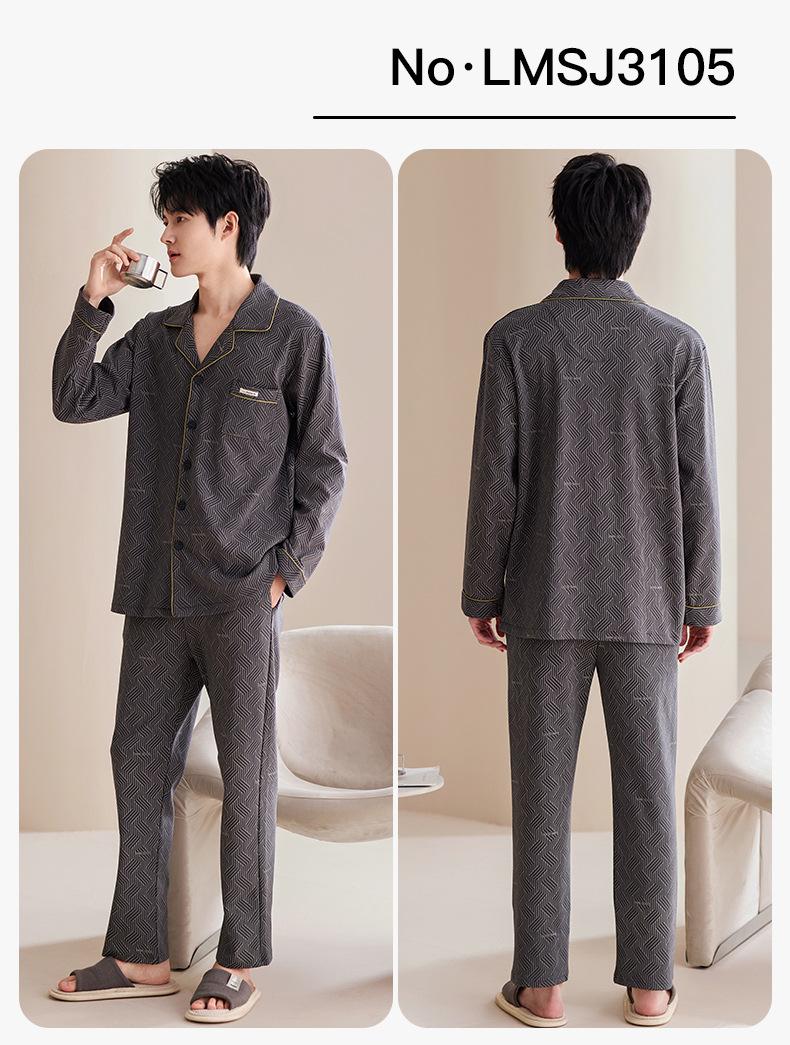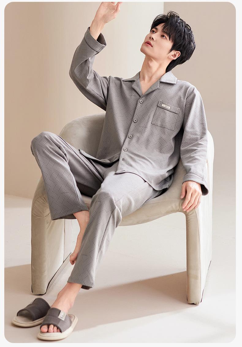 Pijama Masculina Outono 2025 Nova 100% Algodão Puro Cardigã Manga Longa Calça Longa Confortável Algodão Puro Roupa de Casa Conjunto Plus Size