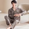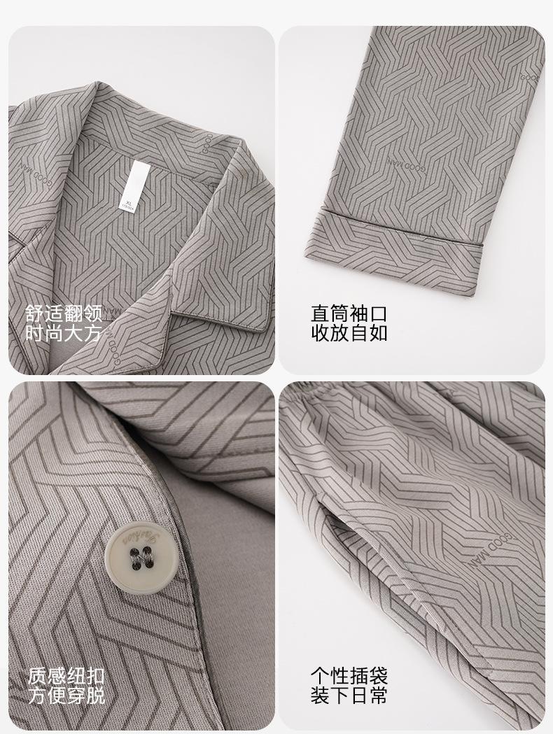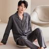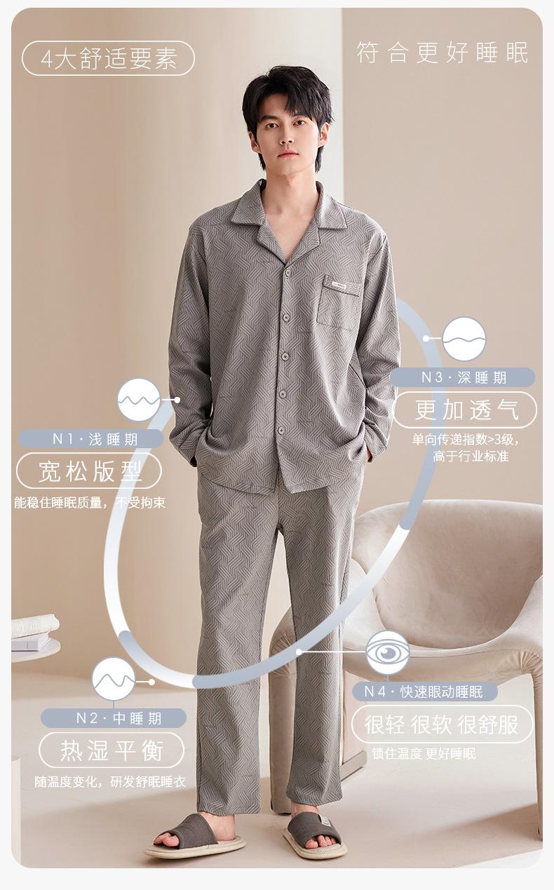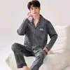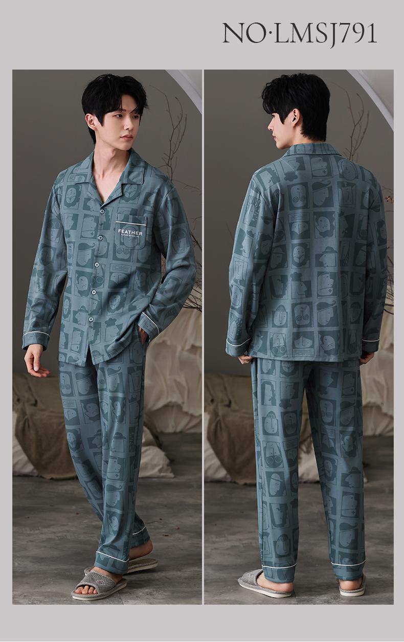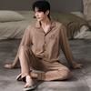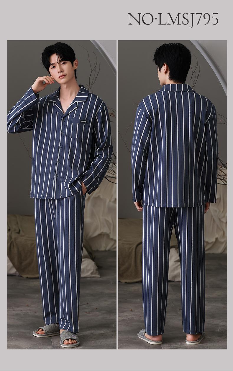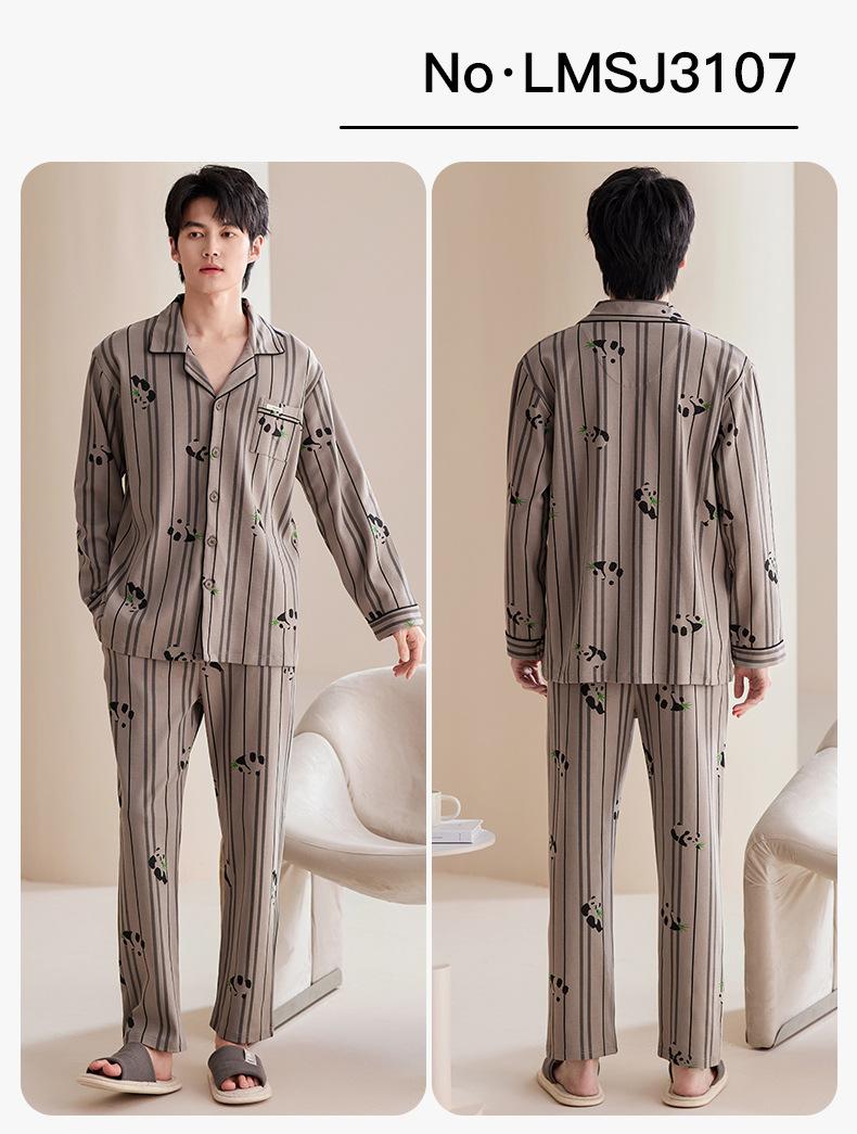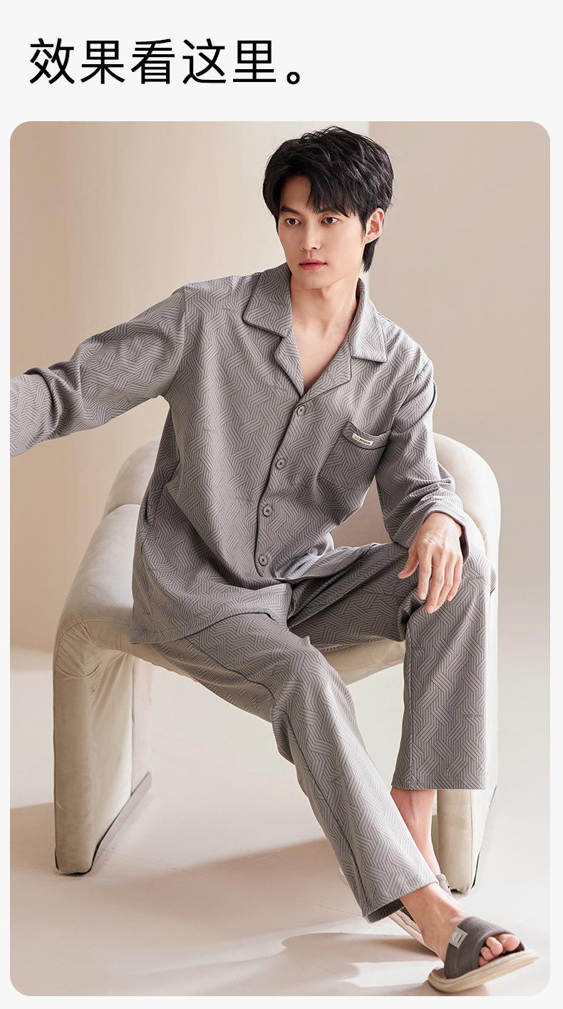 Pijama Masculina Outono 2025 Nova 100% Algodão Puro Cardigã Manga Longa Calça Longa Confortável Algodão Puro Roupa de Casa Conjunto Plus Size
