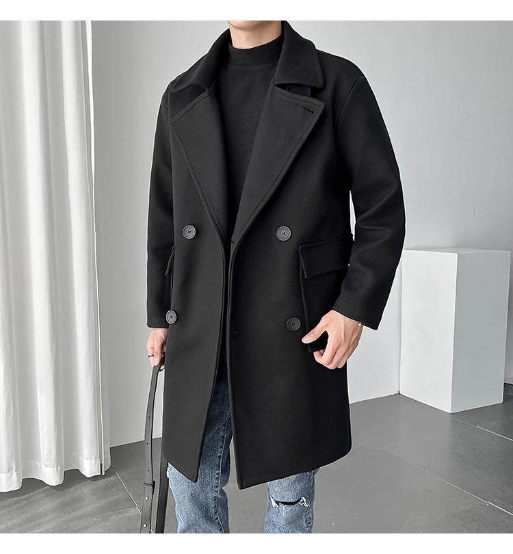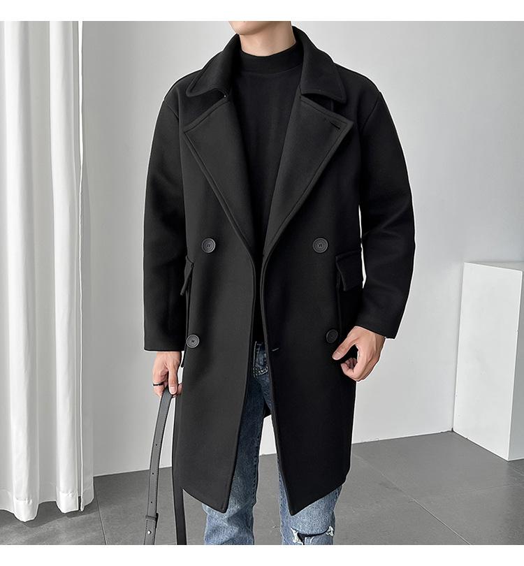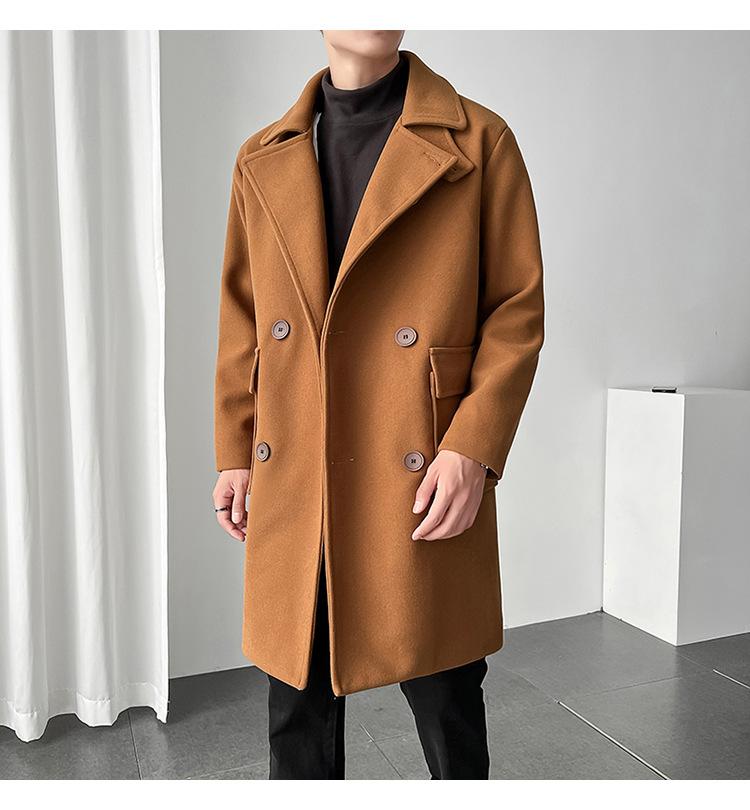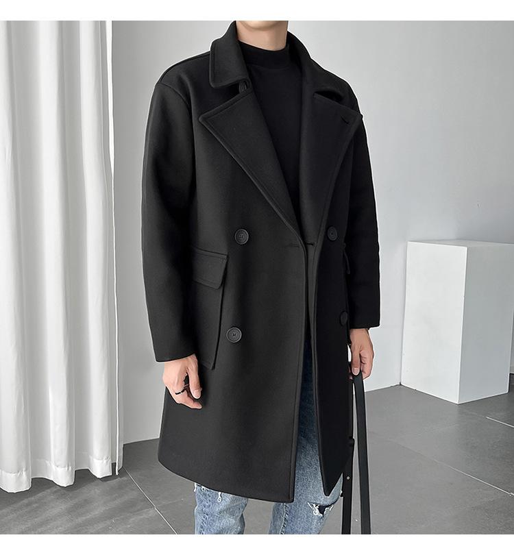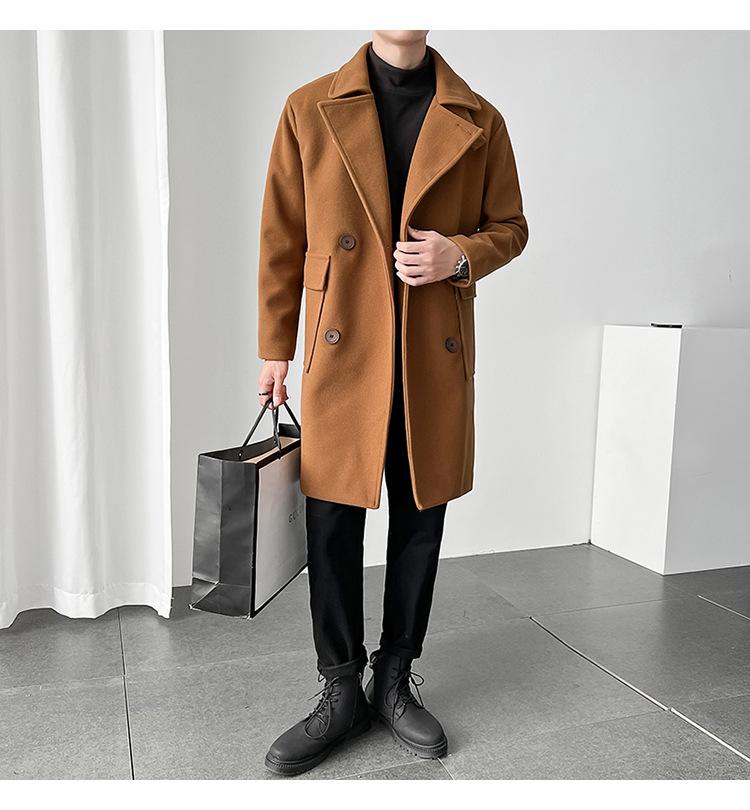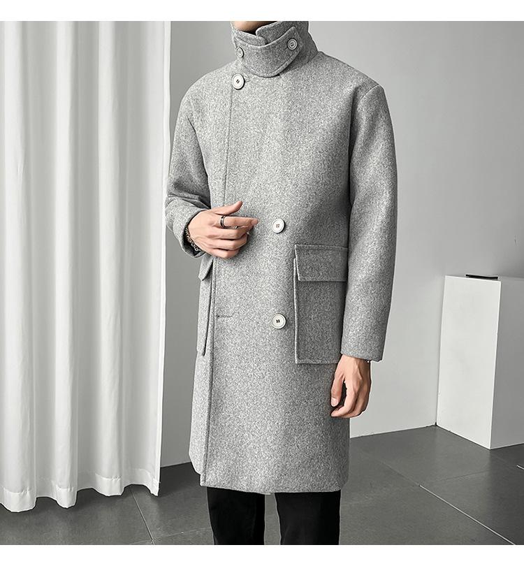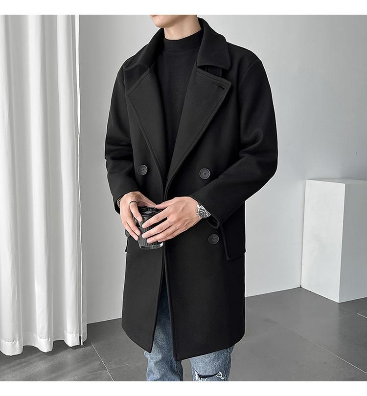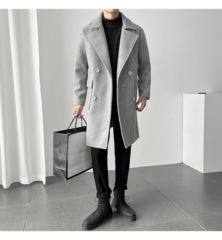 2022 outono e inverno novo casaco corta-vento masculino marca de moda coreana cor sólida longo trespassado casaco de lã