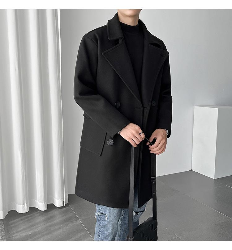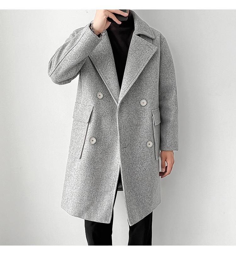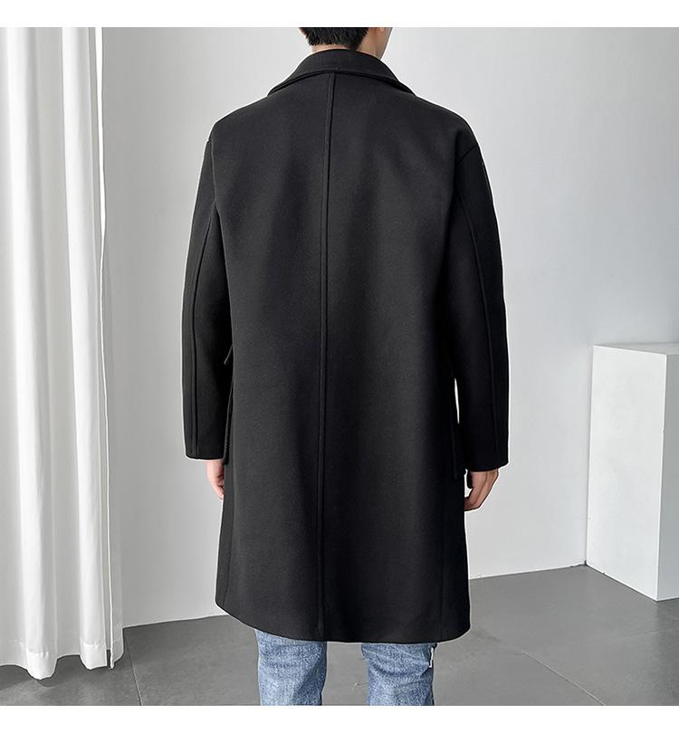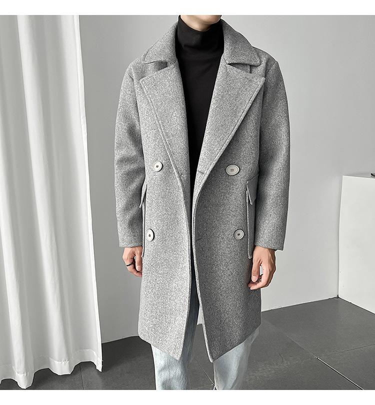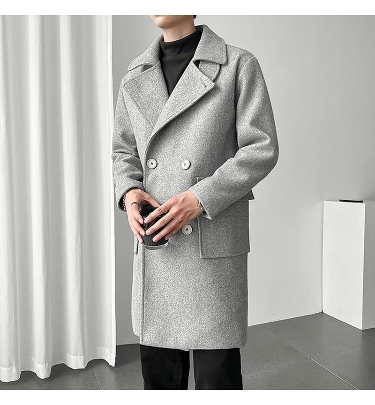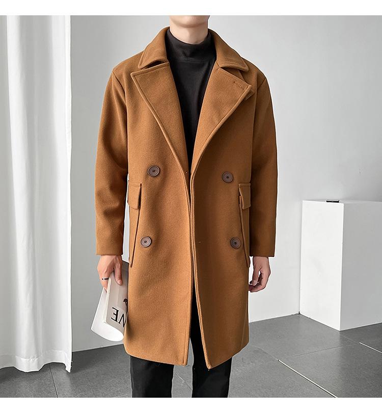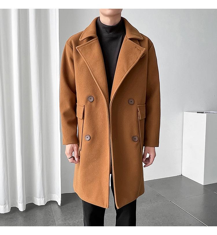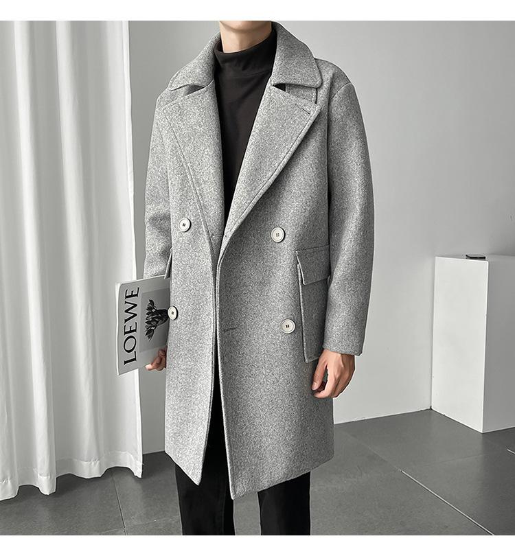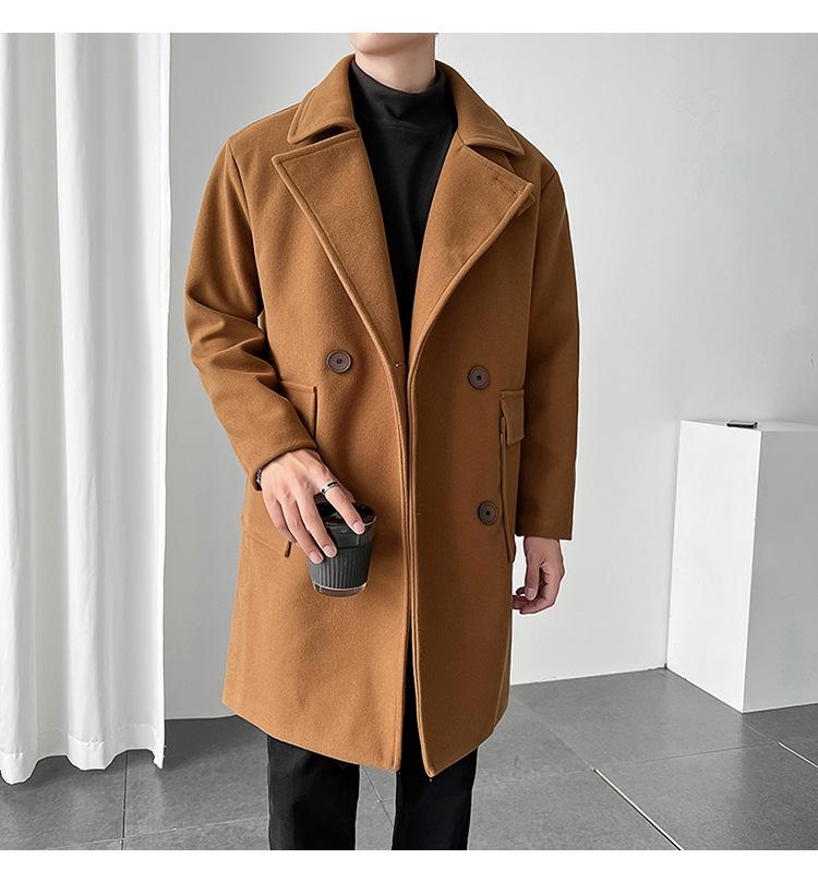 2022 outono e inverno novo casaco corta-vento masculino marca de moda coreana cor sólida longo trespassado casaco de lã