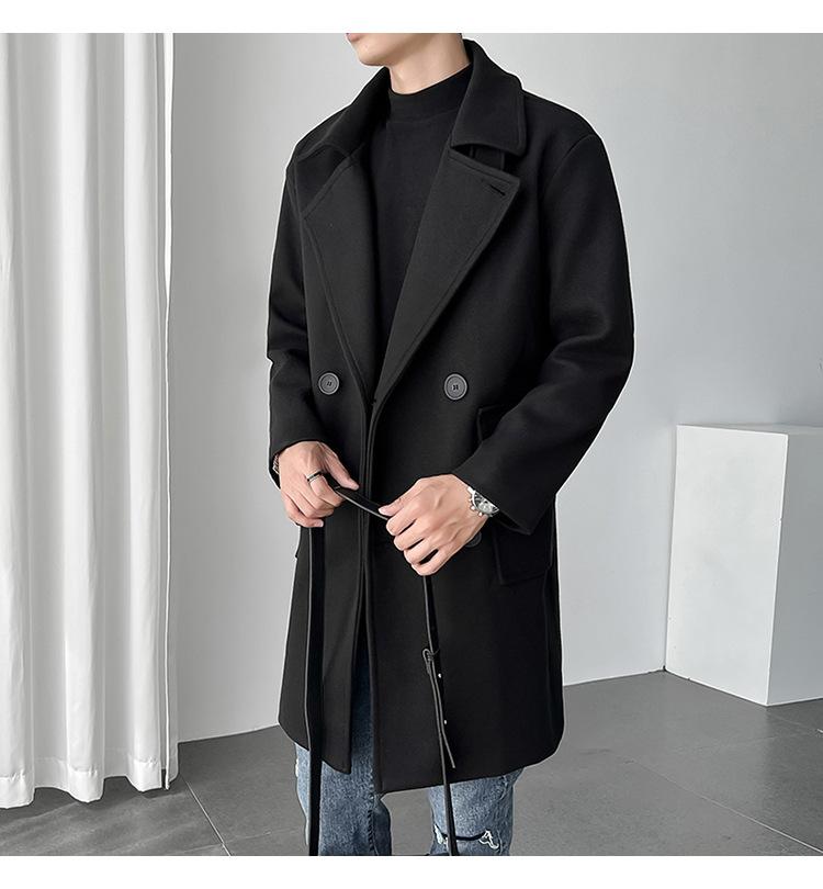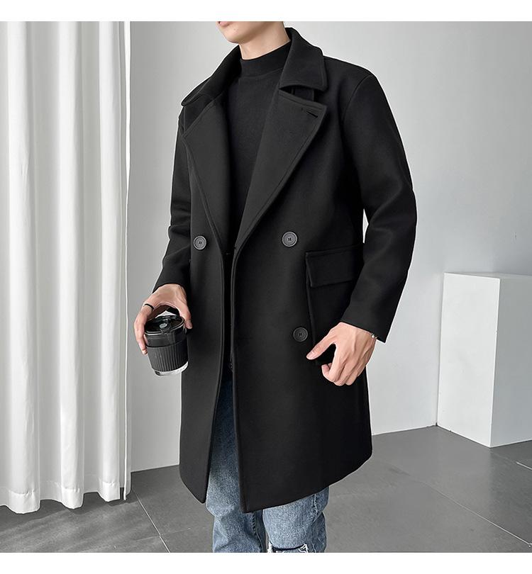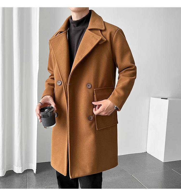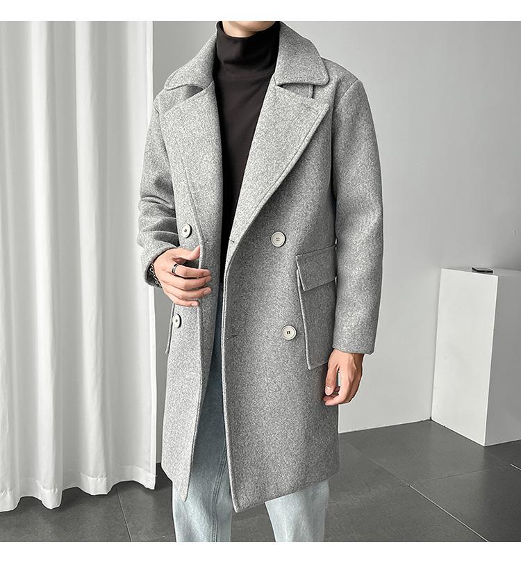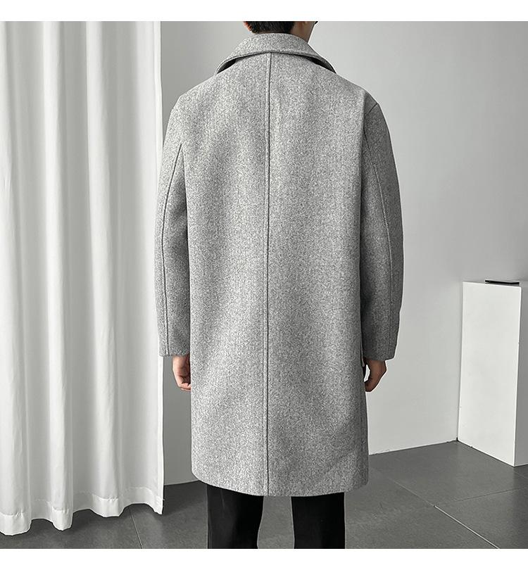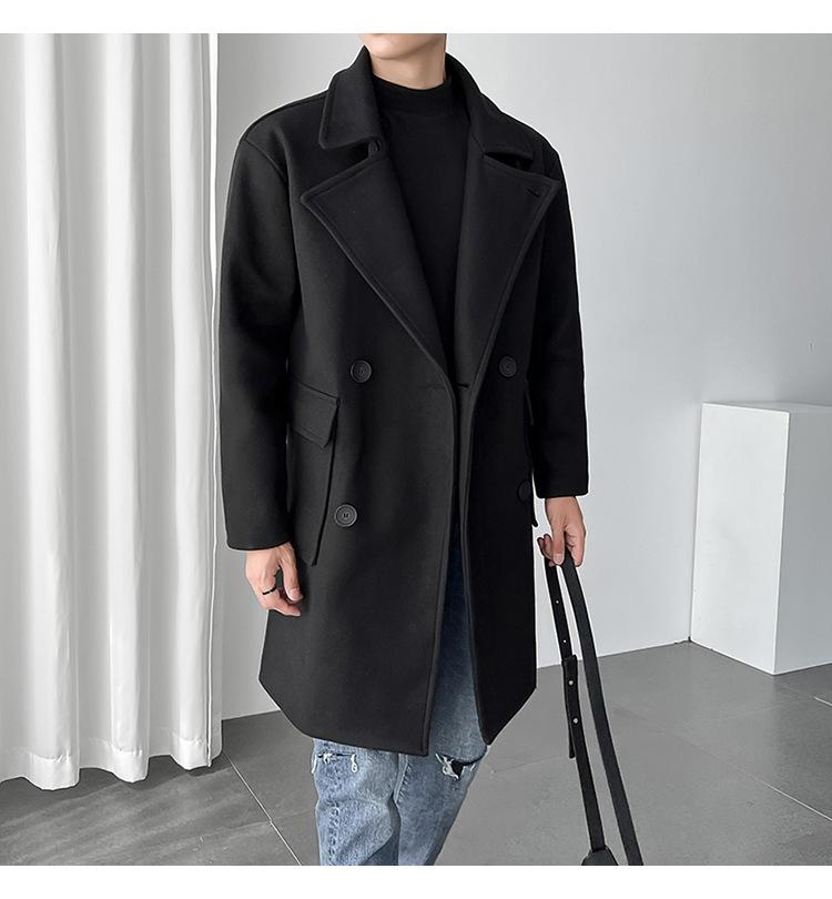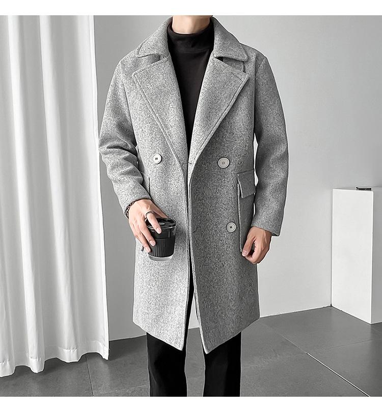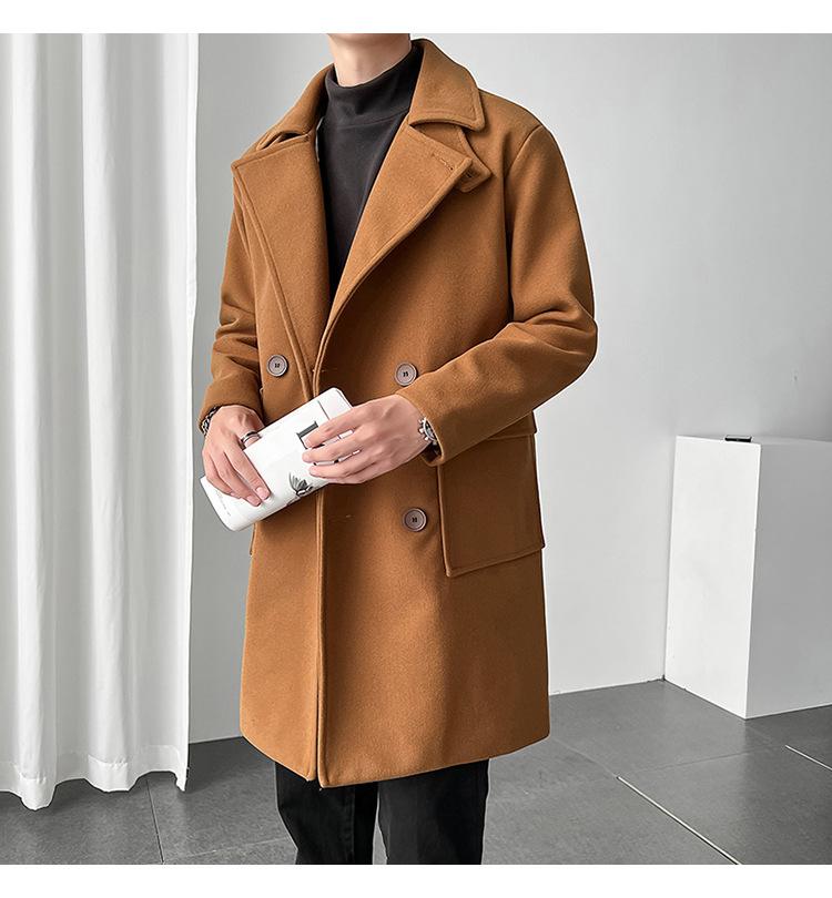 2022 outono e inverno novo casaco corta-vento masculino marca de moda coreana cor sólida longo trespassado casaco de lã
