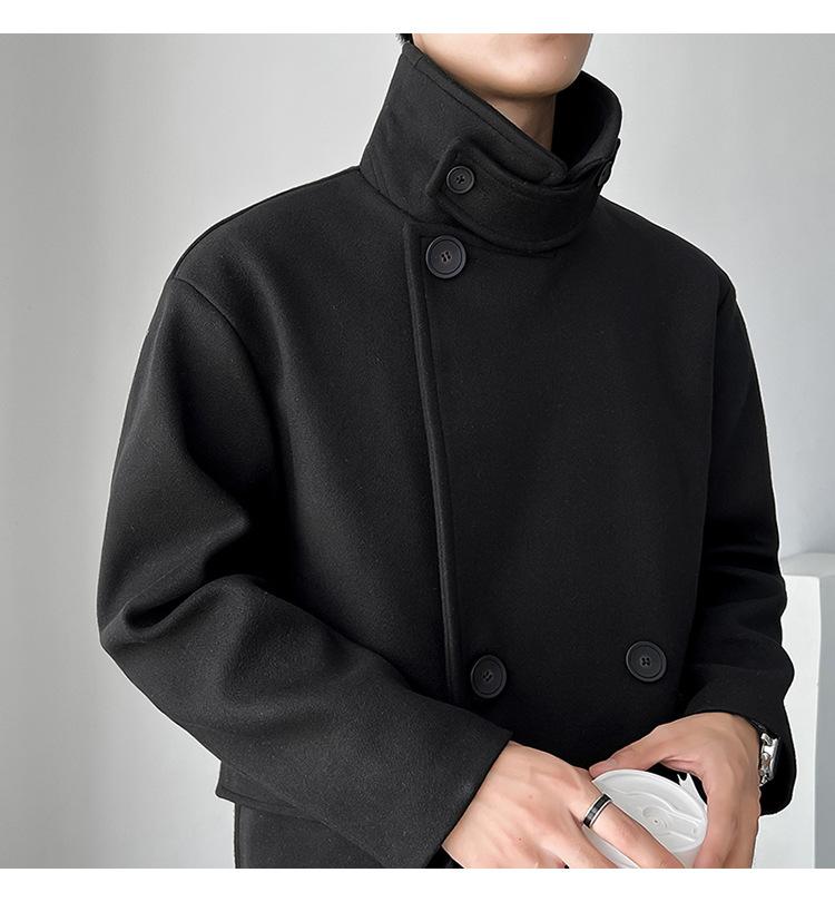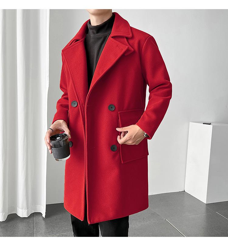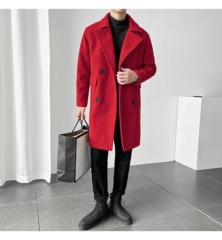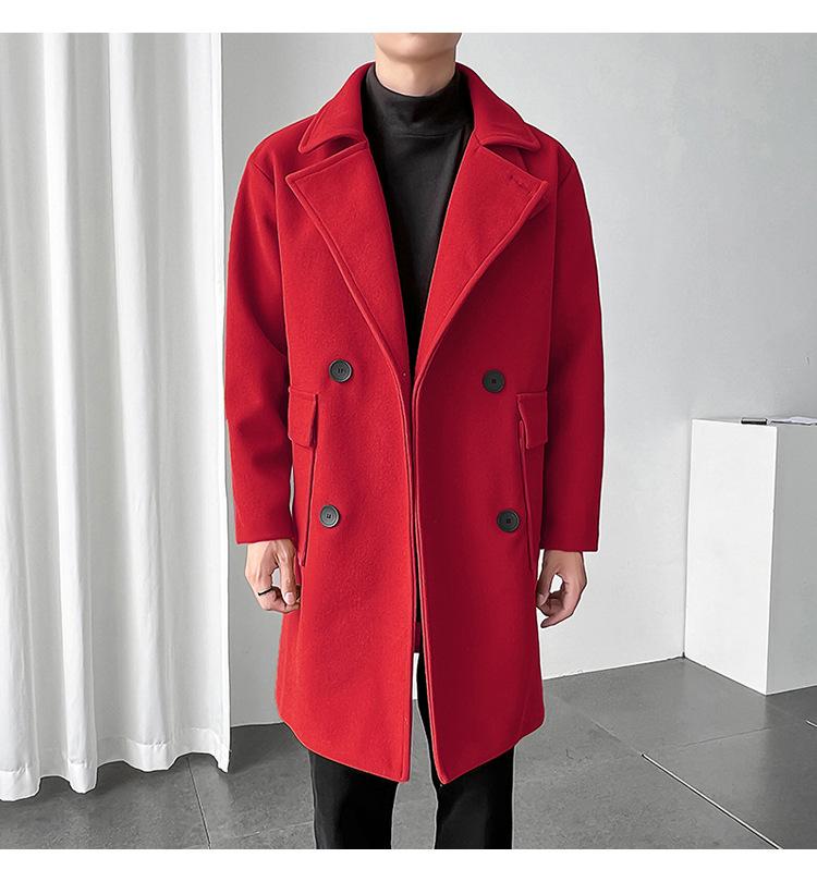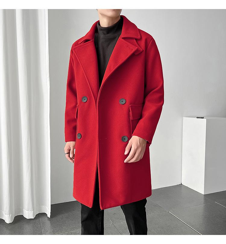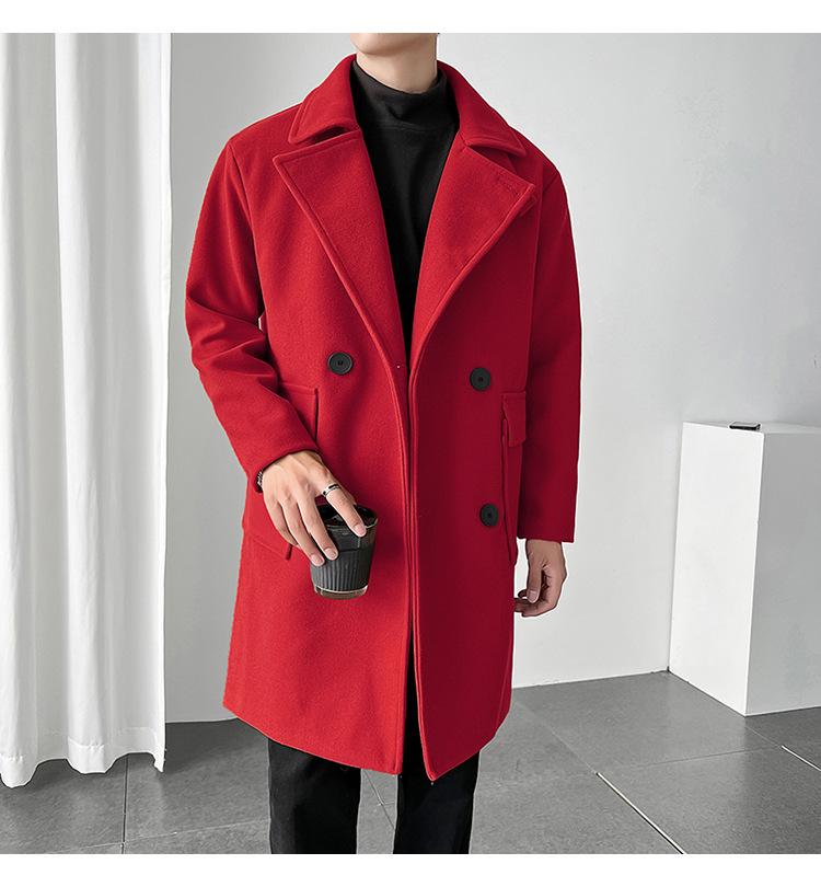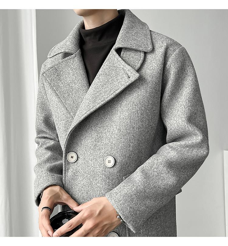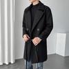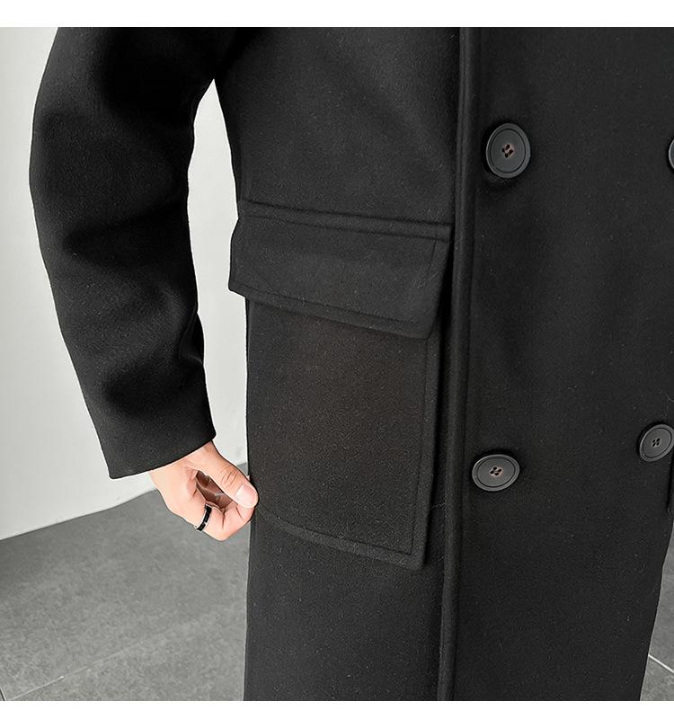 2022 outono e inverno novo casaco corta-vento masculino marca de moda coreana cor sólida longo trespassado casaco de lã