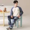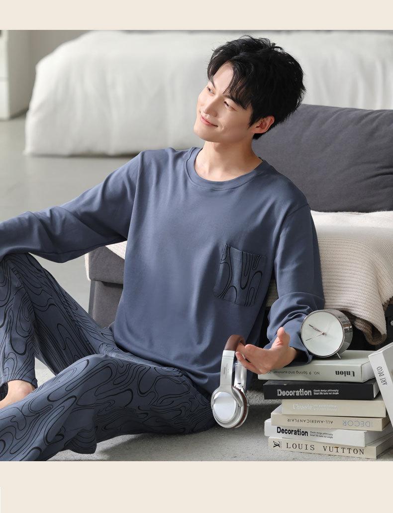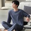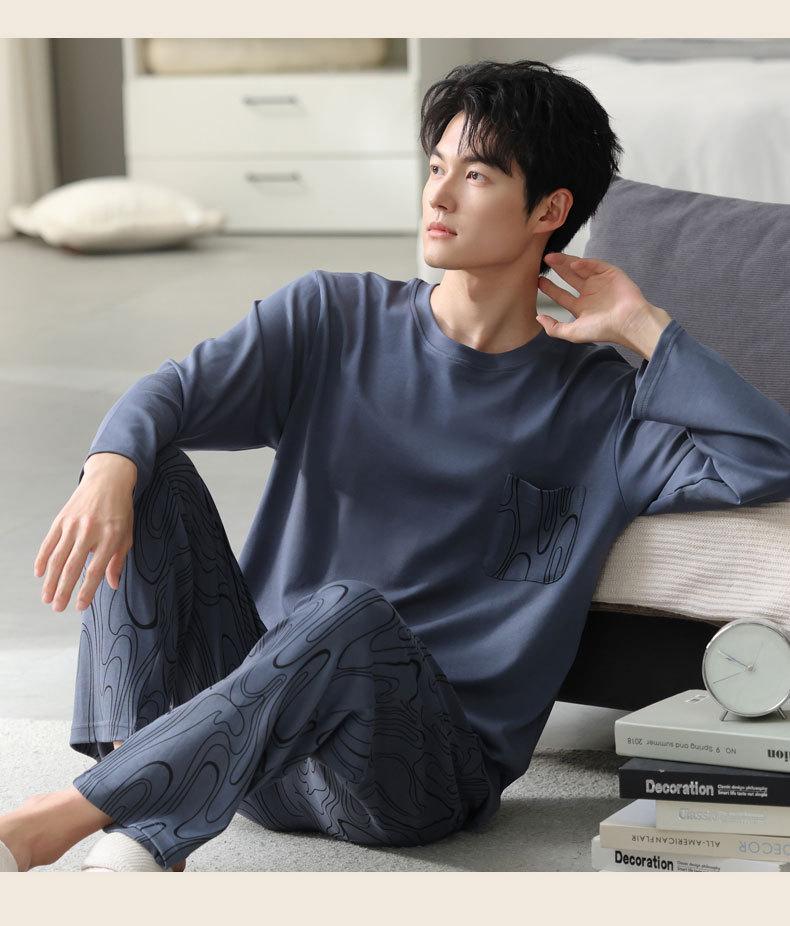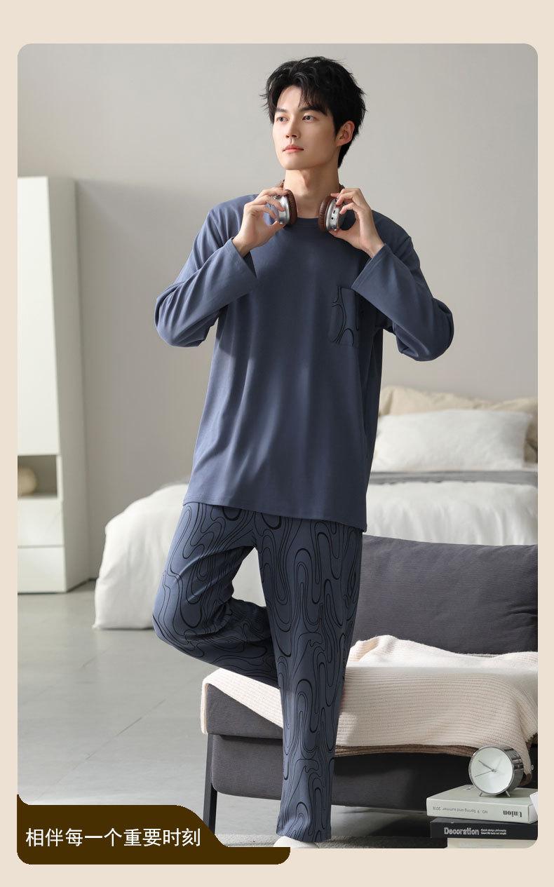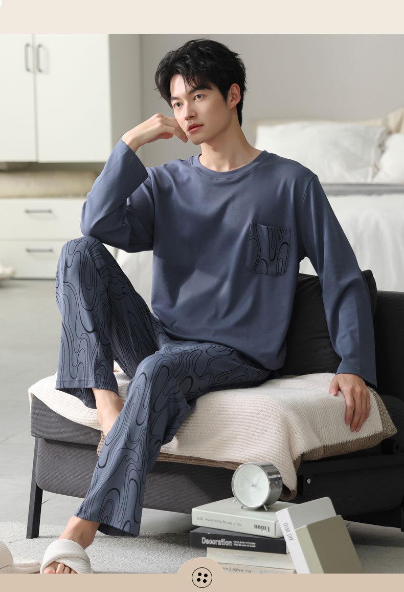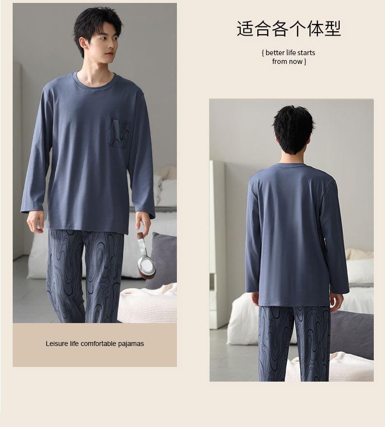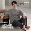 2025 Novo Pijama de Algodão Puro Primavera e Outono Masculino Manga Longa Calça Comprida Casual Solto para Usar Fora Conjunto Roupa de Casa