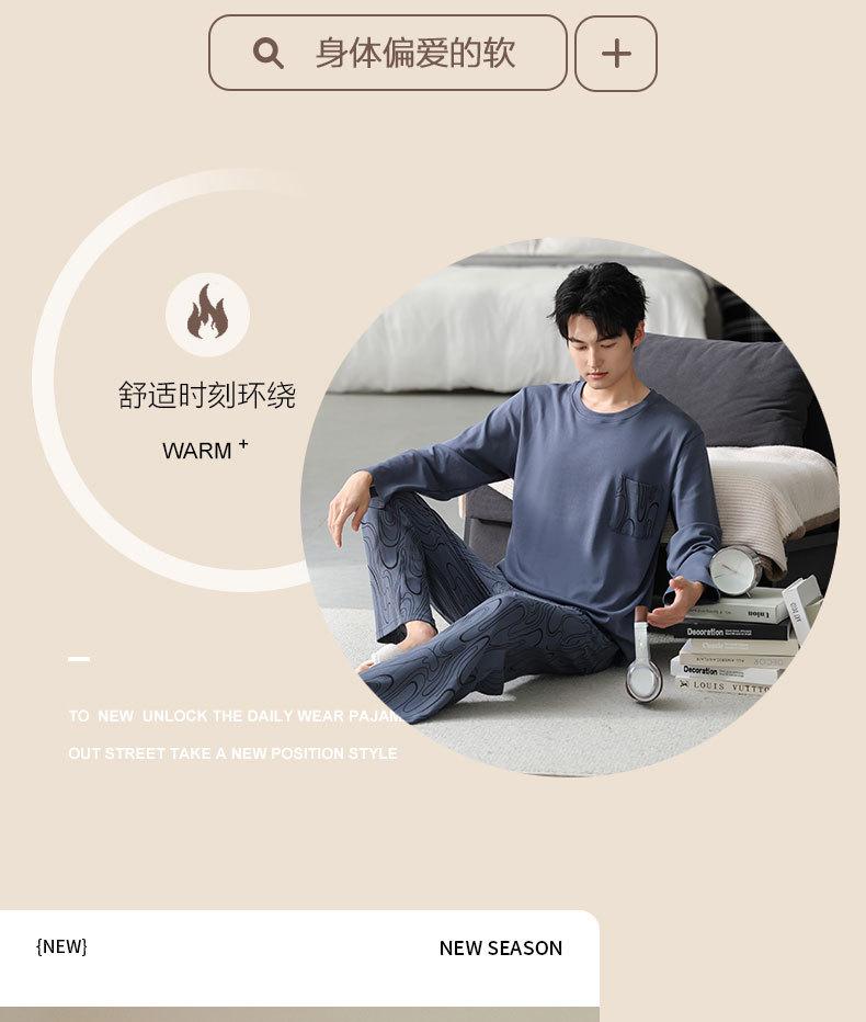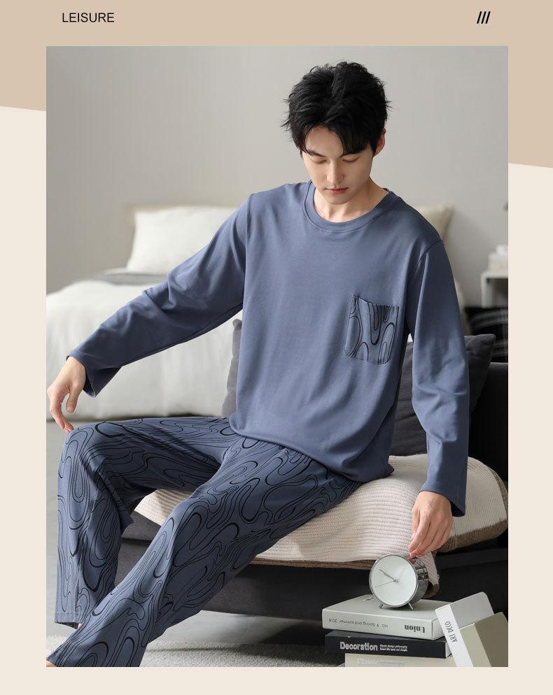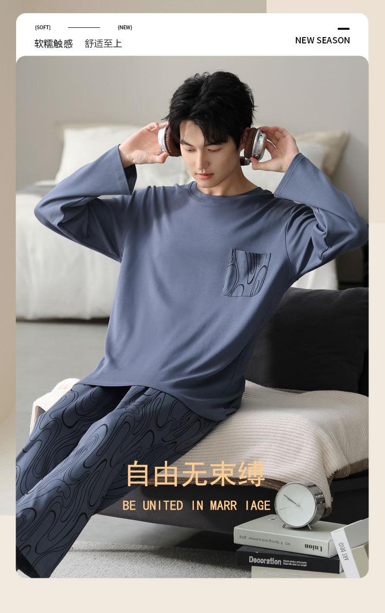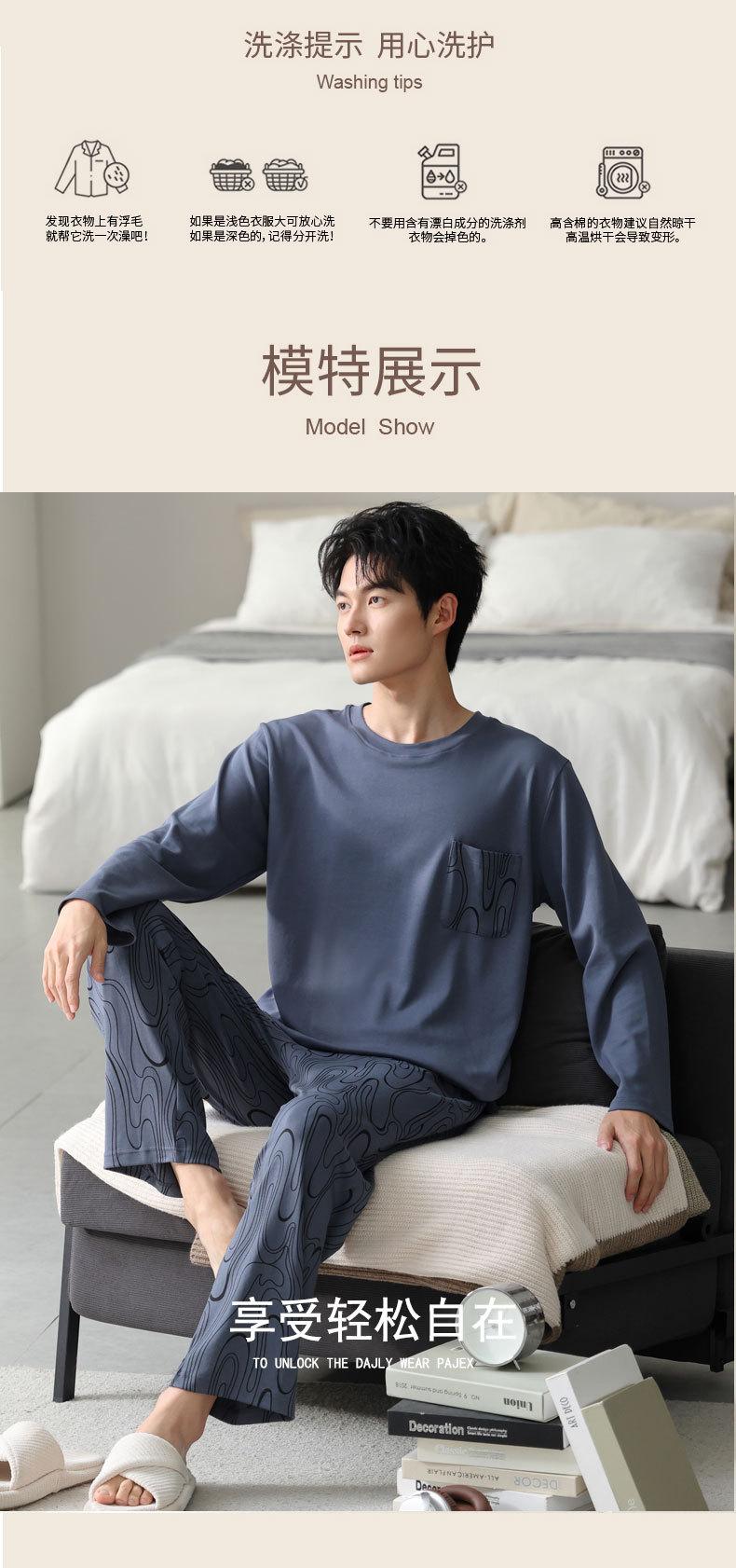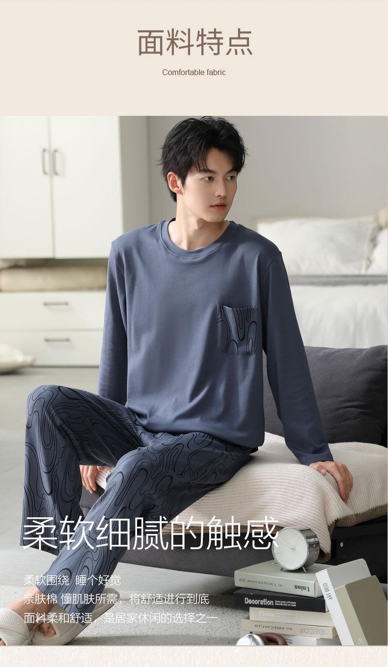 2025 Novo Pijama de Algodão Puro Primavera e Outono Masculino Manga Longa Calça Comprida Casual Solto para Usar Fora Conjunto Roupa de Casa