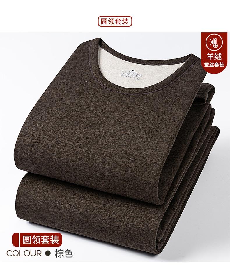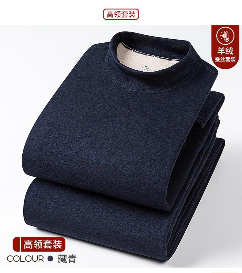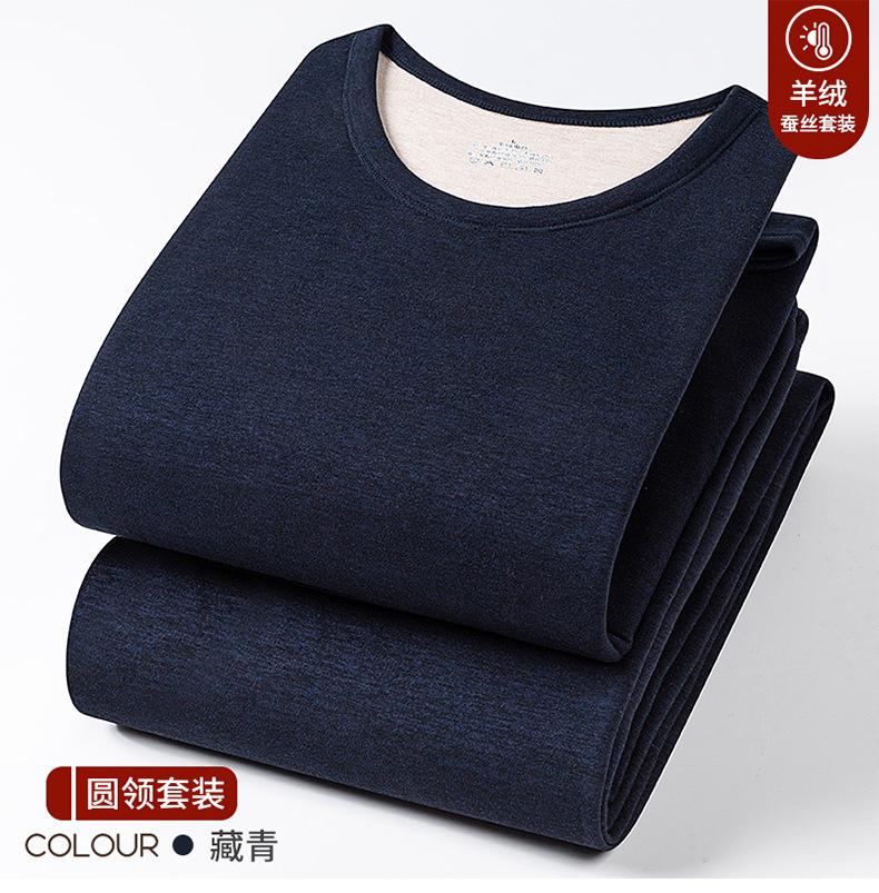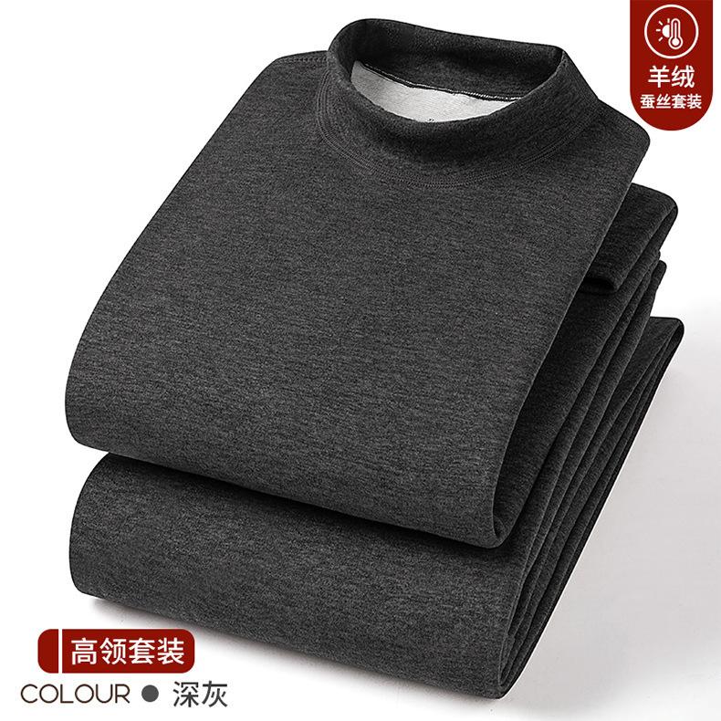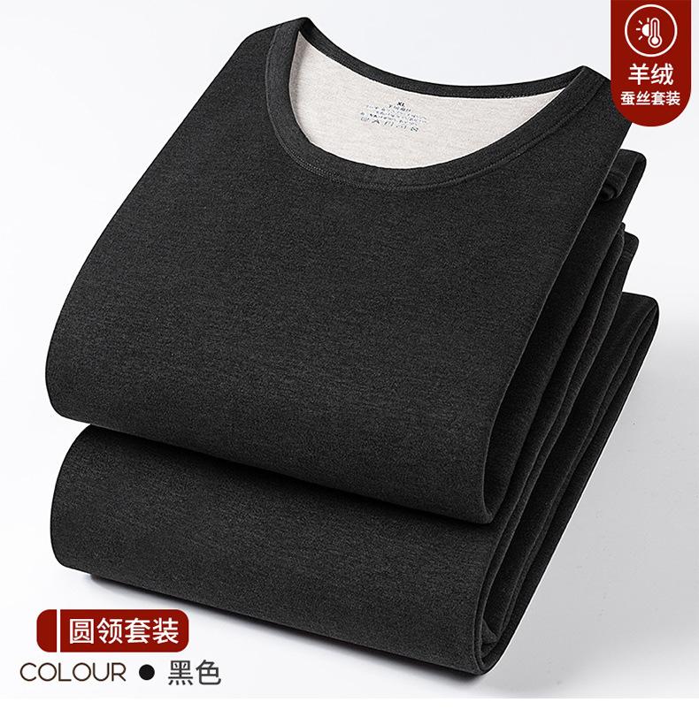 Conjunto de Roupa Íntima Quente de Caxemira e Seda para Homem com Forro de Lã Grosso Gerador de Calor Roupa de Outono Calças de Outono Camada Base Lã de Dupla Face Outono Inverno