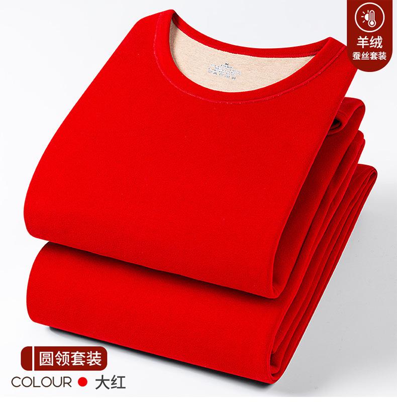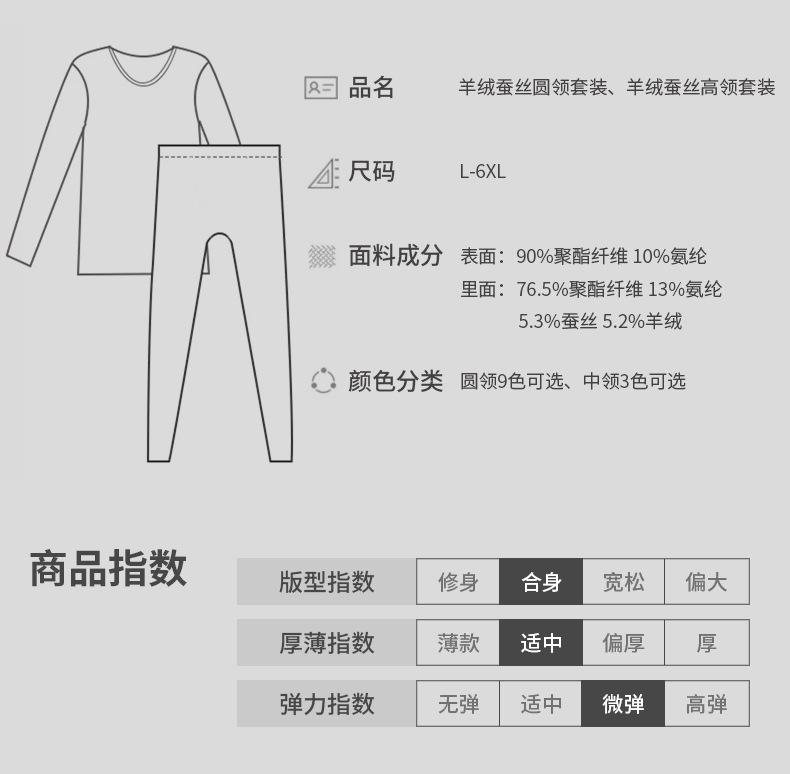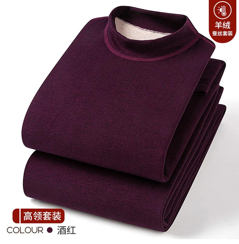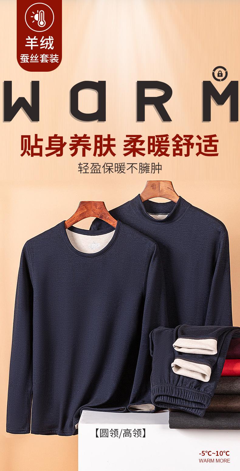 Conjunto de Roupa Íntima Quente de Caxemira e Seda para Homem com Forro de Lã Grosso Gerador de Calor Roupa de Outono Calças de Outono Camada Base Lã de Dupla Face Outono Inverno