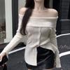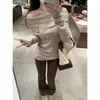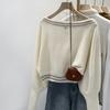 2023 Outono e Inverno Novo Estilo Ombro Caído Senso de Design Nicho Tricô Suéter Feminino Cor Sólida Doce Camiseta Básica Interna Feminina