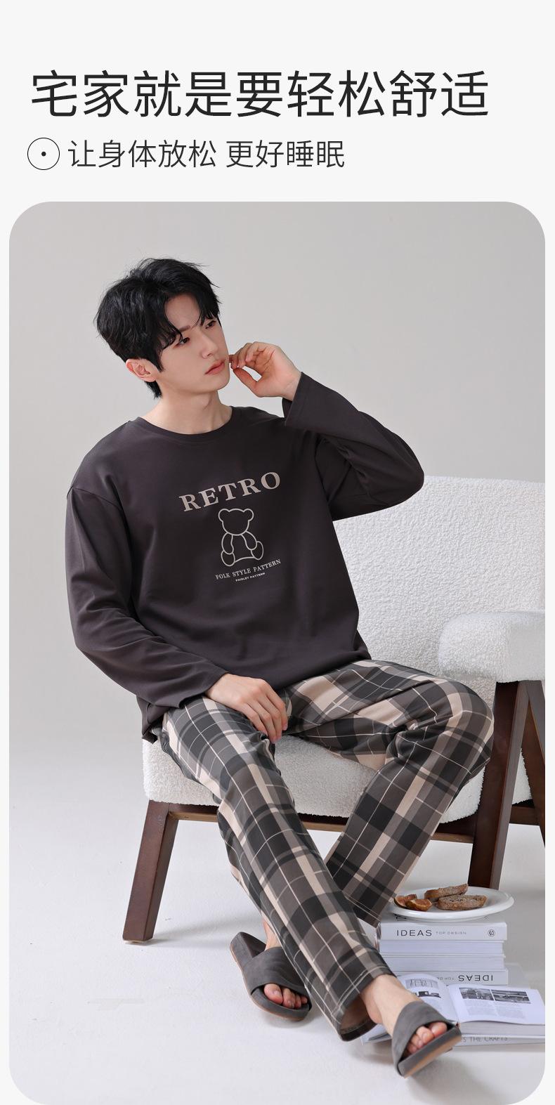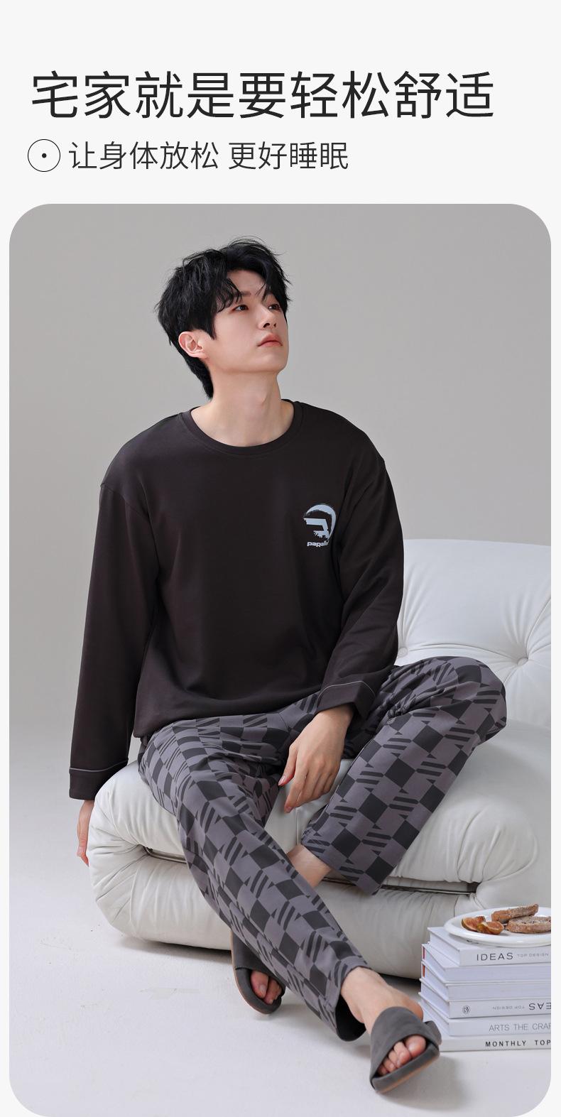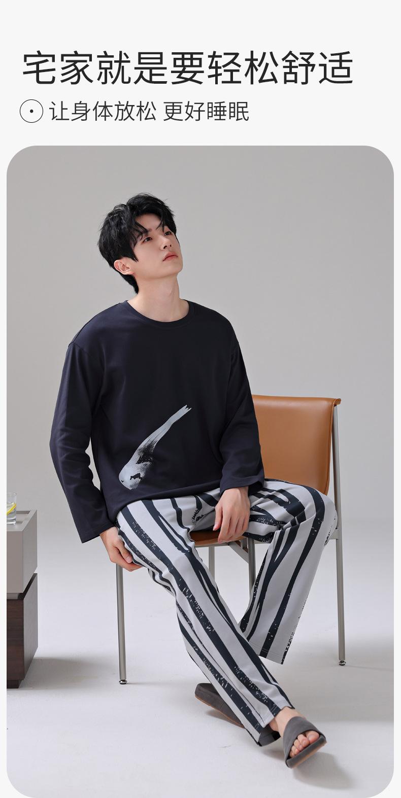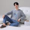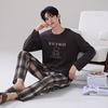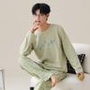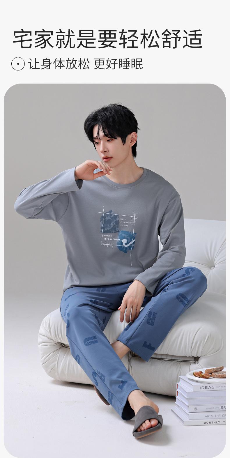 Pijamas Masculinos Estilo Primavera e Outono 2025 Novo Estilo Algodão Puro Manga Longa Algodão Pulôver Tamanho Plus Extra Grande Outono e Inverno Roupa de Casa