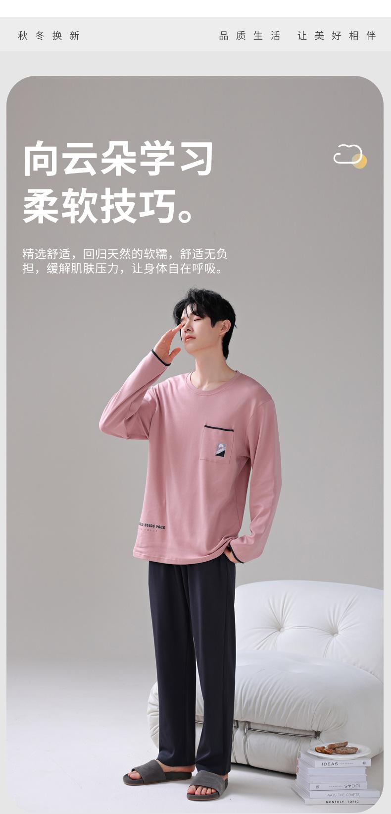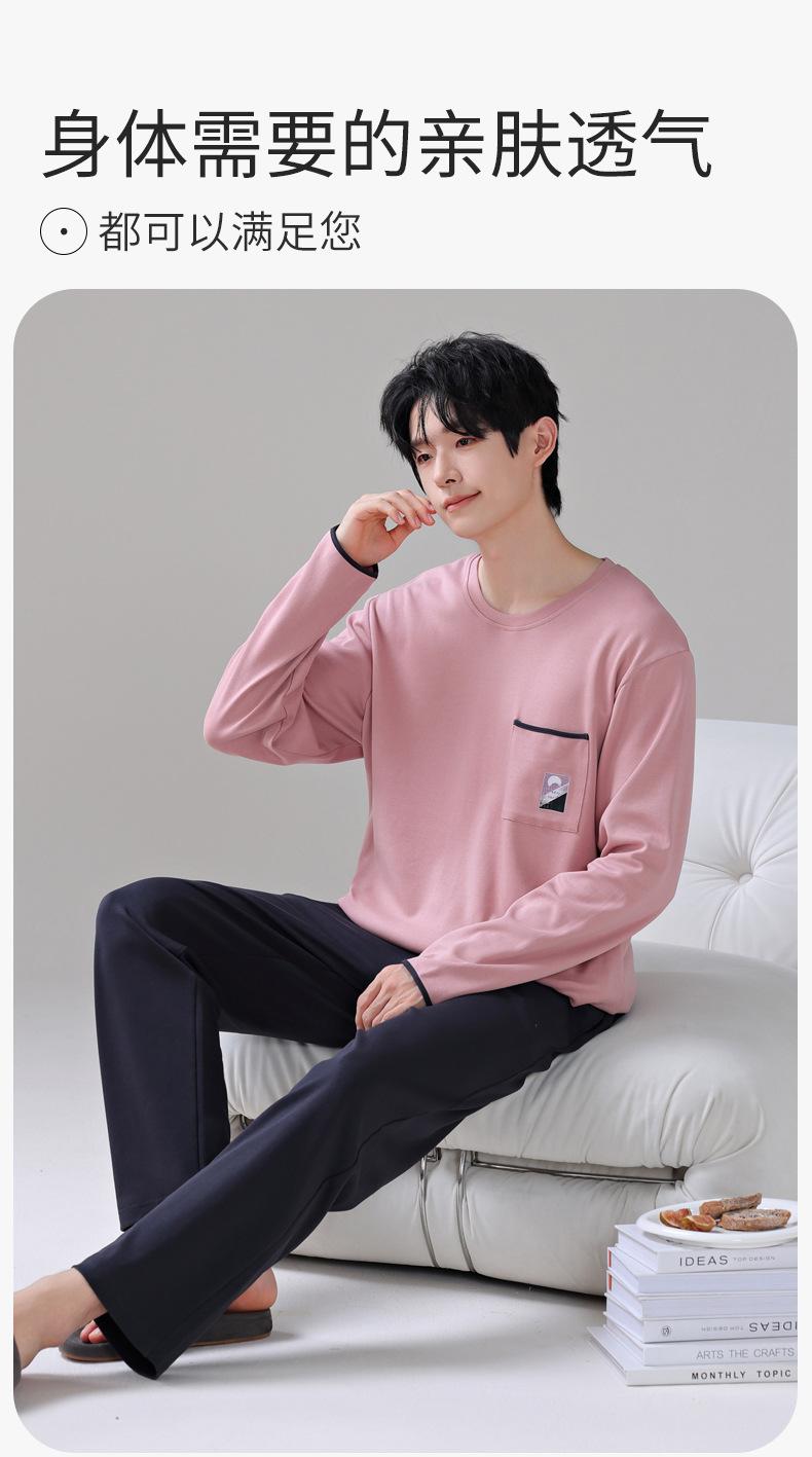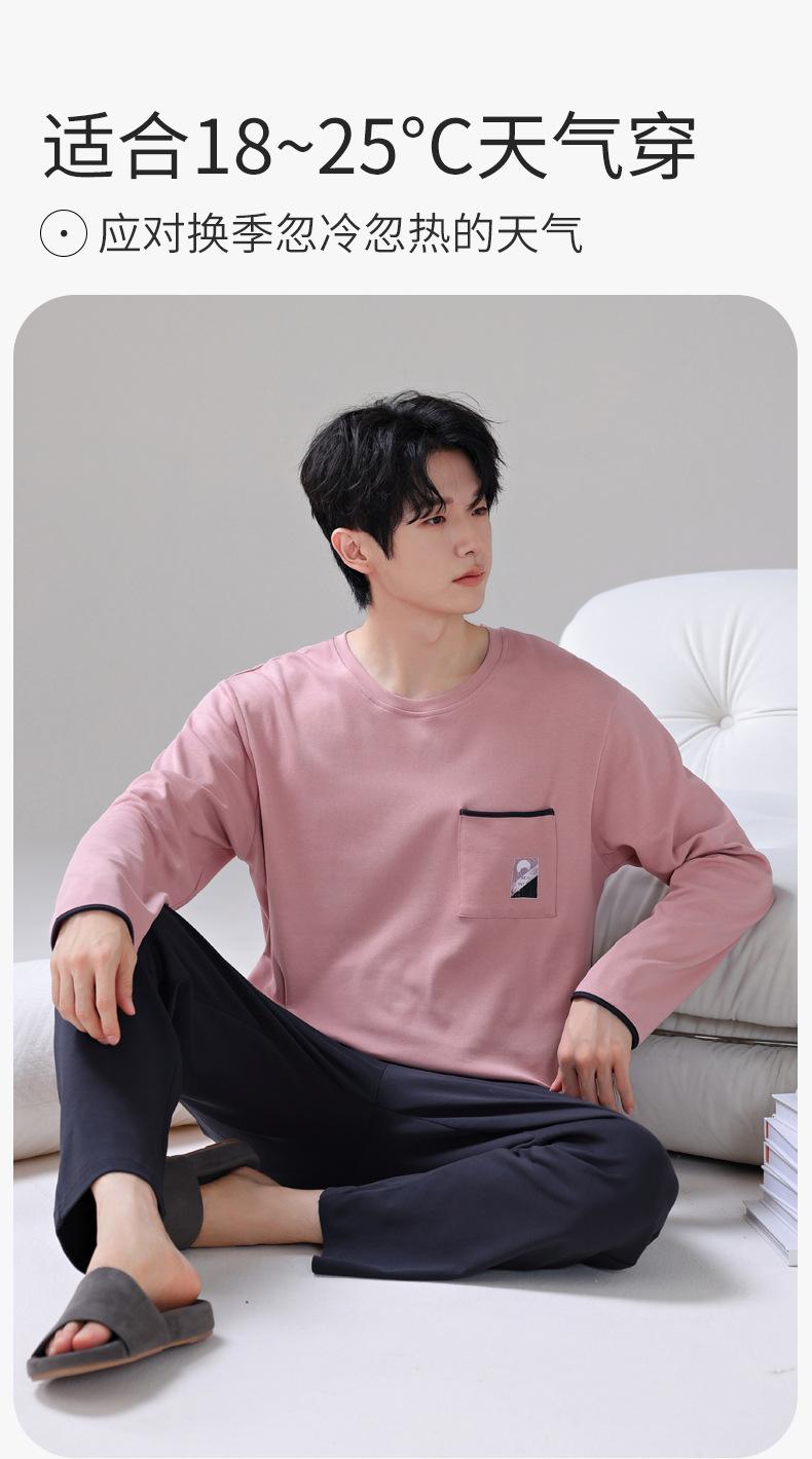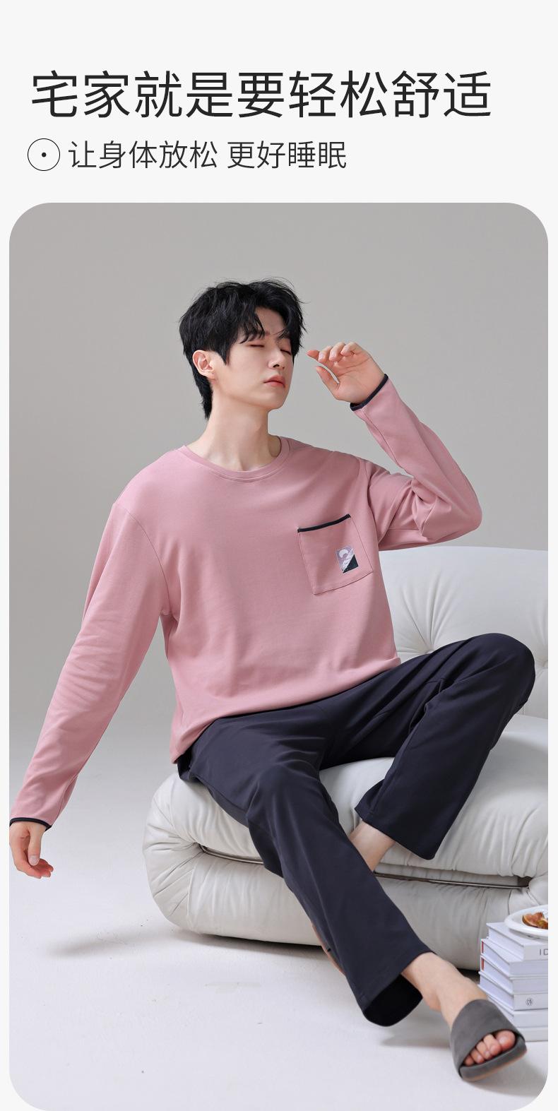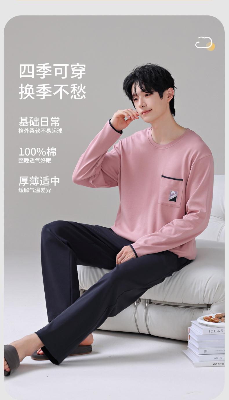 Pijamas Masculinos Estilo Primavera e Outono 2025 Novo Estilo Algodão Puro Manga Longa Algodão Pulôver Tamanho Plus Extra Grande Outono e Inverno Roupa de Casa