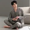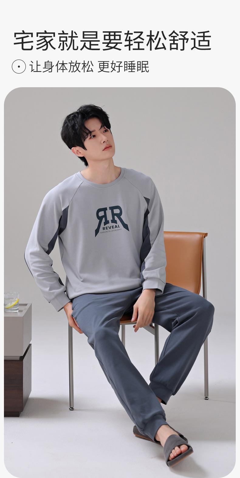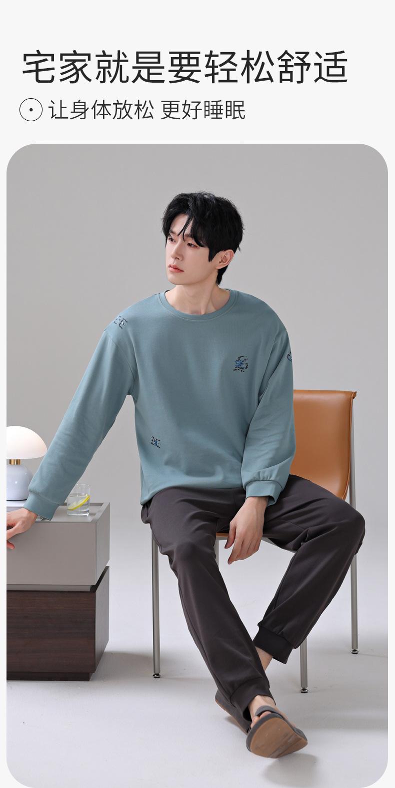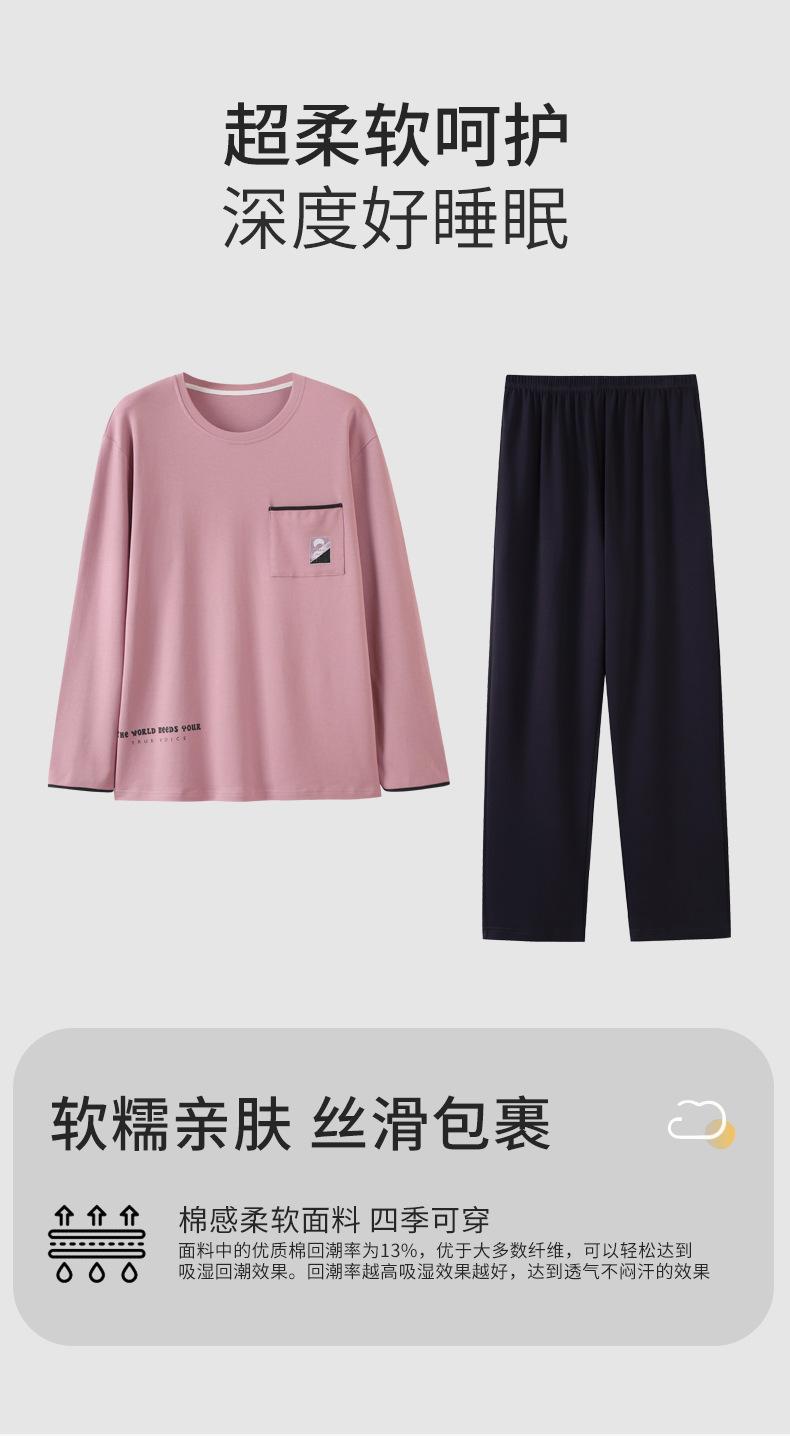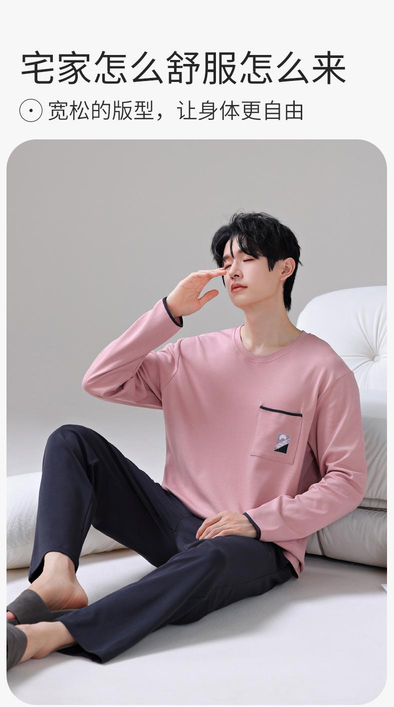 Pijamas Masculinos Estilo Primavera e Outono 2025 Novo Estilo Algodão Puro Manga Longa Algodão Pulôver Tamanho Plus Extra Grande Outono e Inverno Roupa de Casa