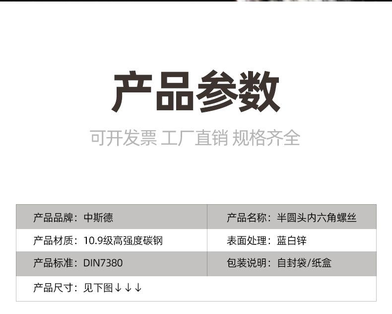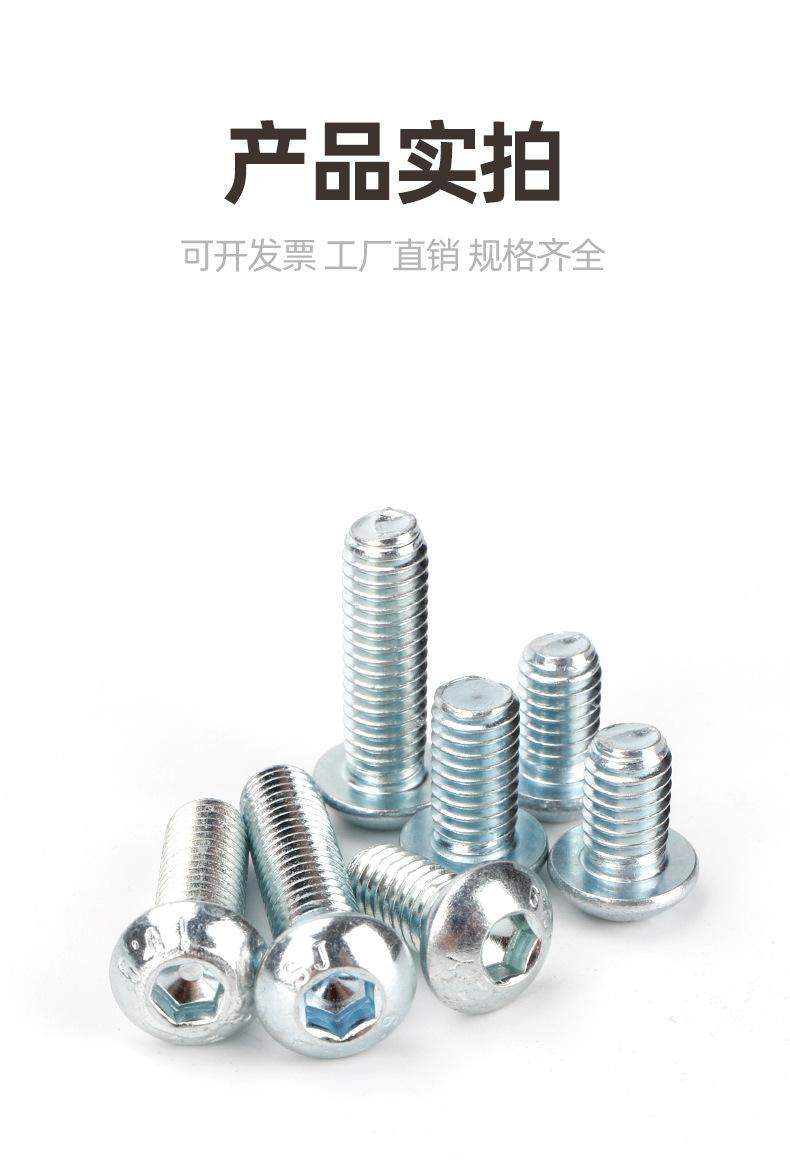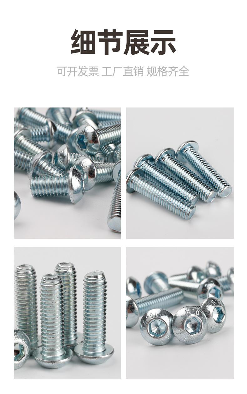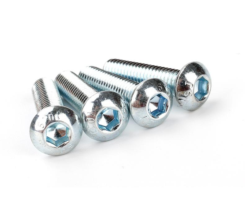 Parafuso de cabeça semicircular com soquete sextavado M6/classe 10.9 personalizado com zinco azul e branco / Parafuso de cabeça panela com soquete sextavado ISO7380