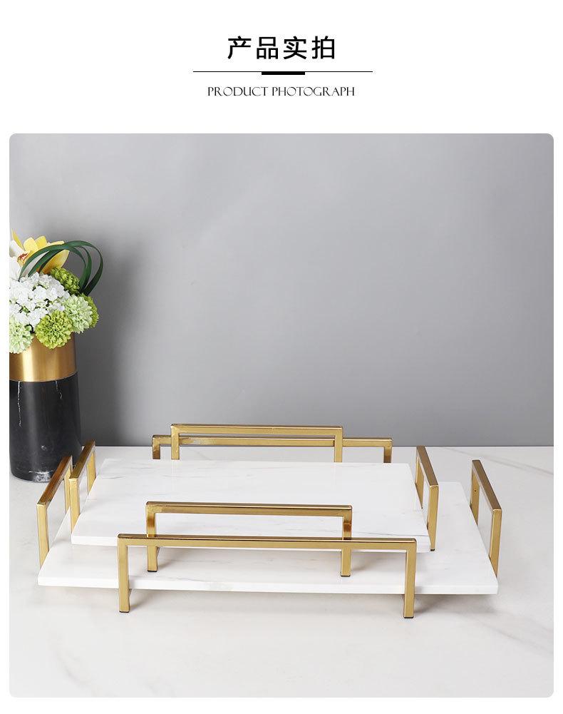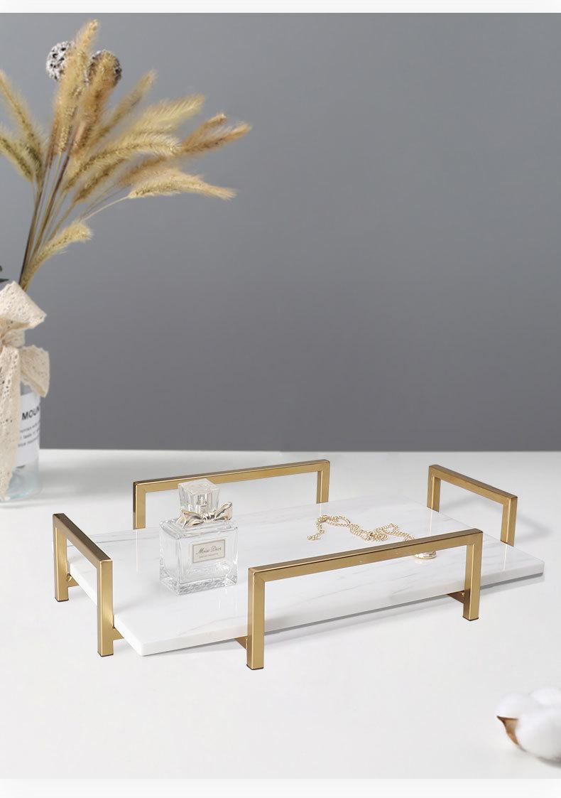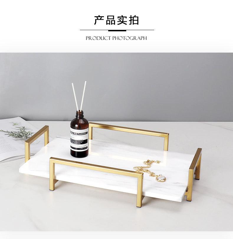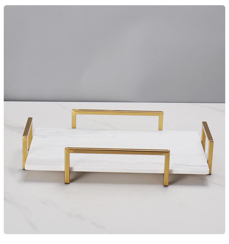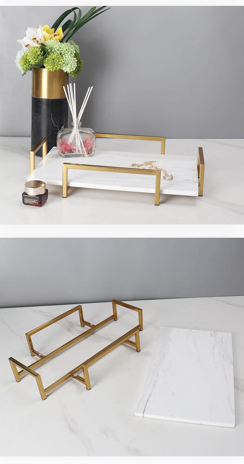 Bandeja retangular de mármore com moldura de metal direto da fábrica, bandeja criativa para armazenamento de mesa de centro de sala de estar