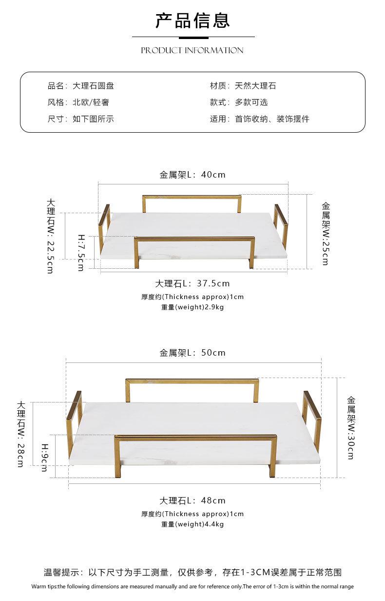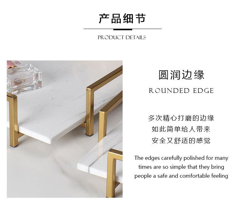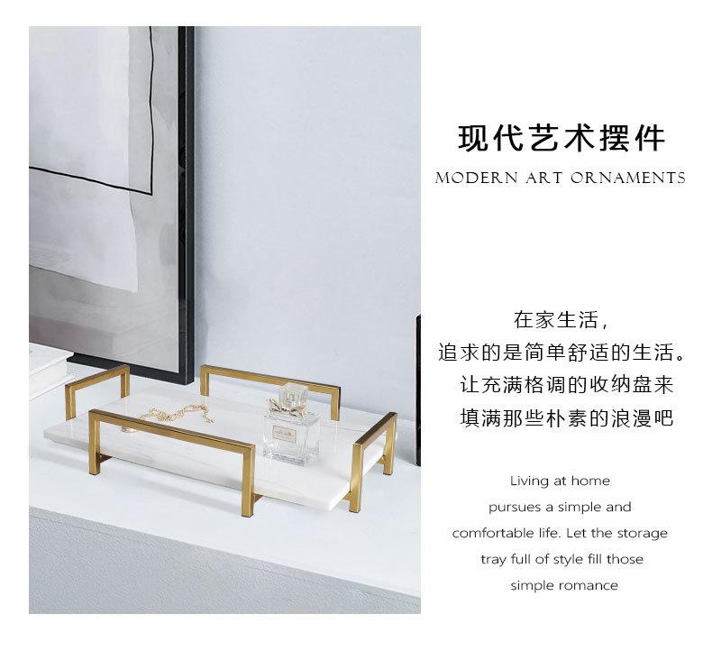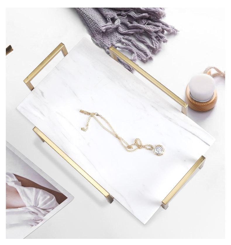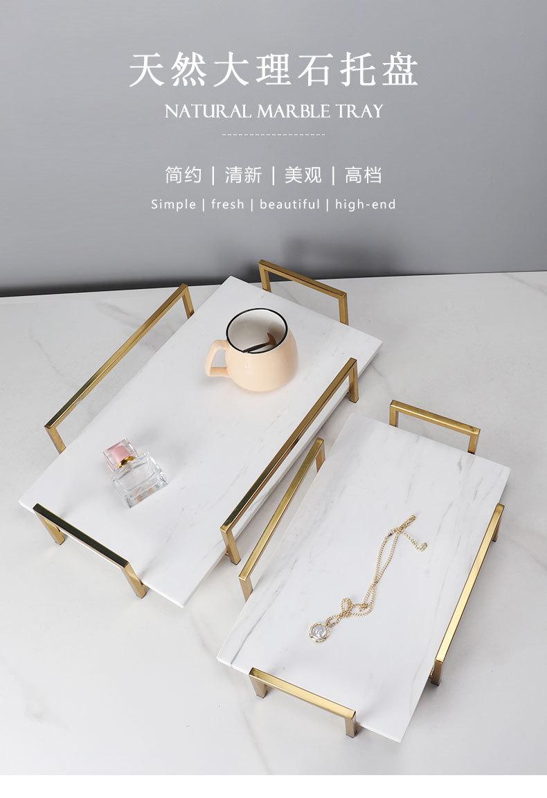 Bandeja retangular de mármore com moldura de metal direto da fábrica, bandeja criativa para armazenamento de mesa de centro de sala de estar