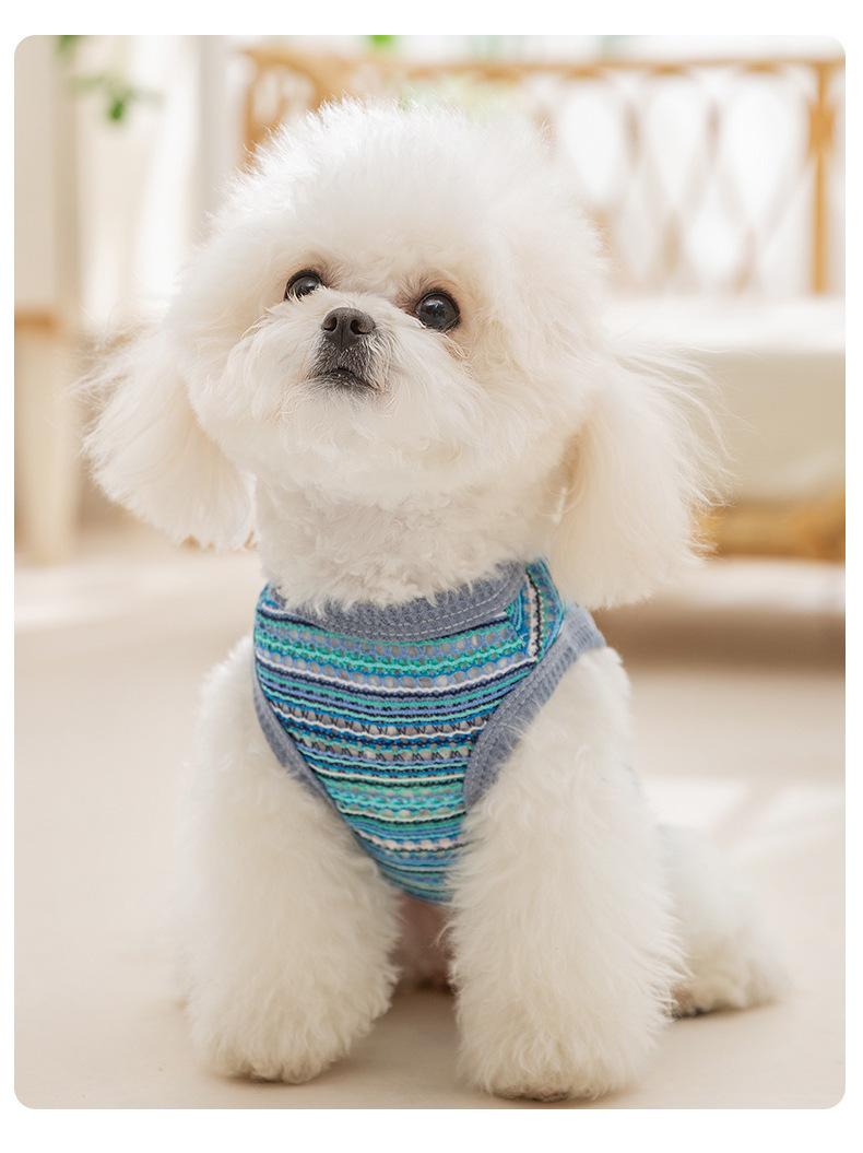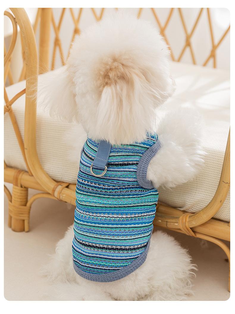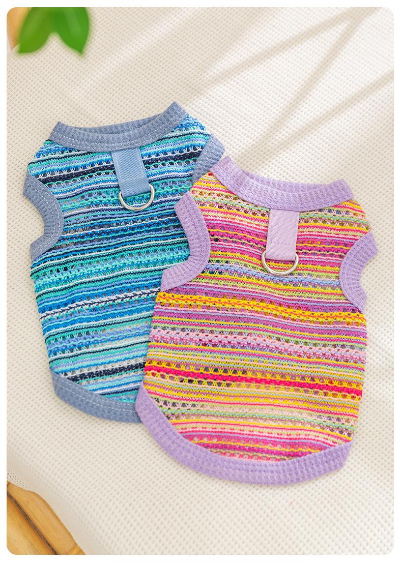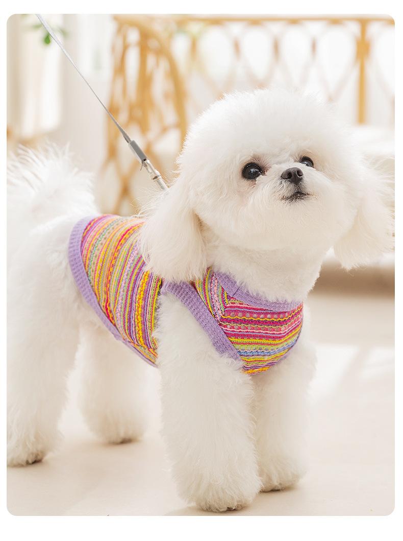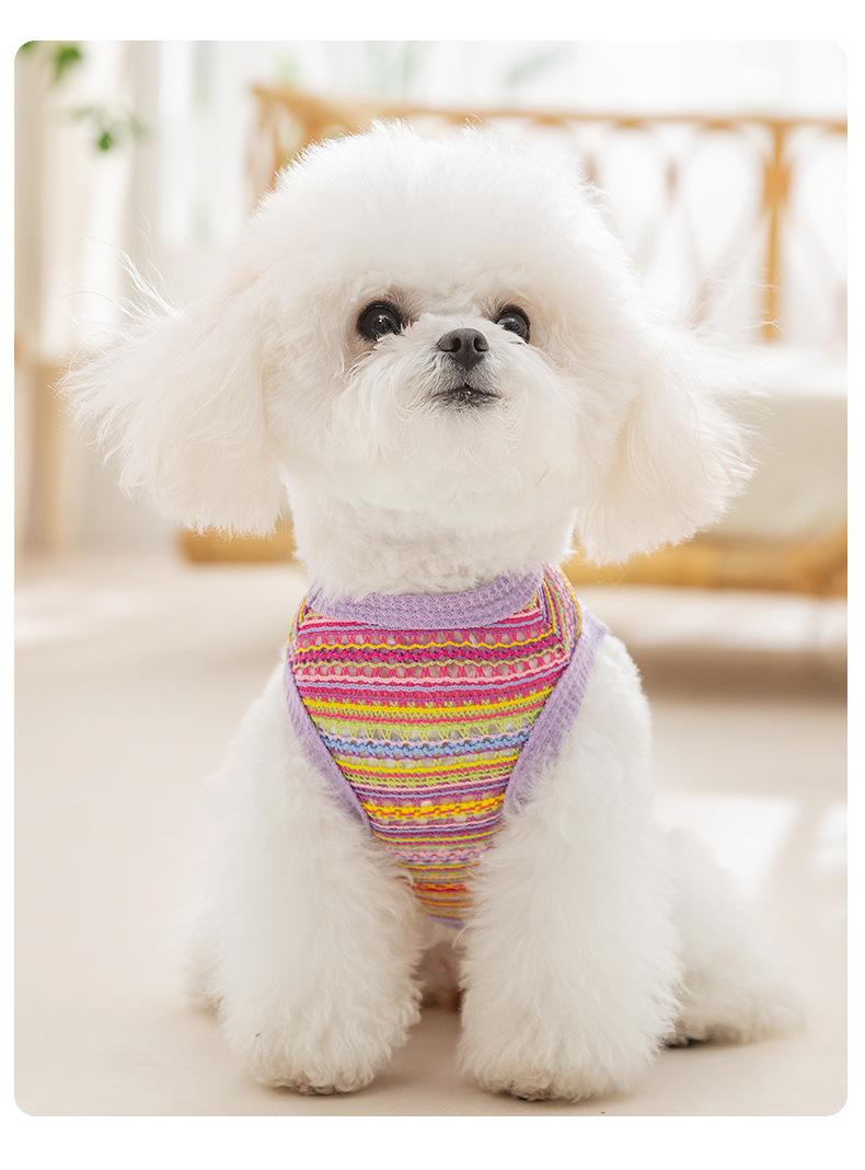 Primavera Verão Recorte Cachorro Estilo Boêmio Multicolorido Tricotado Colete Gato Teddy Bichon Frise Roupas para Animais de Estimação de Duas Patas