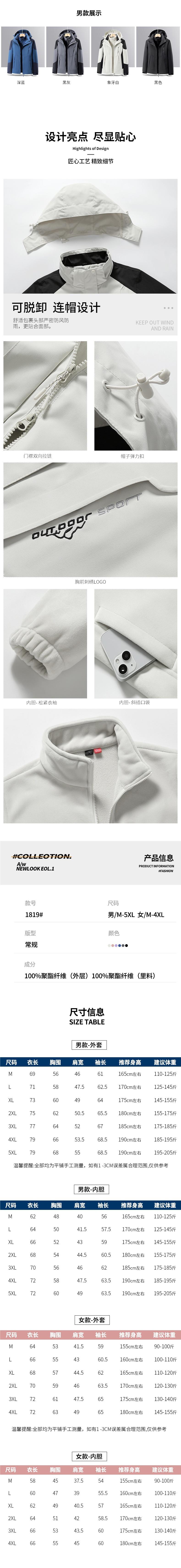 Logotipo personalizado nova jaqueta corta-vento primavera/outono/inverno masculina e feminina três-em-um destacável tamanho pequeno conjunto de montanhismo