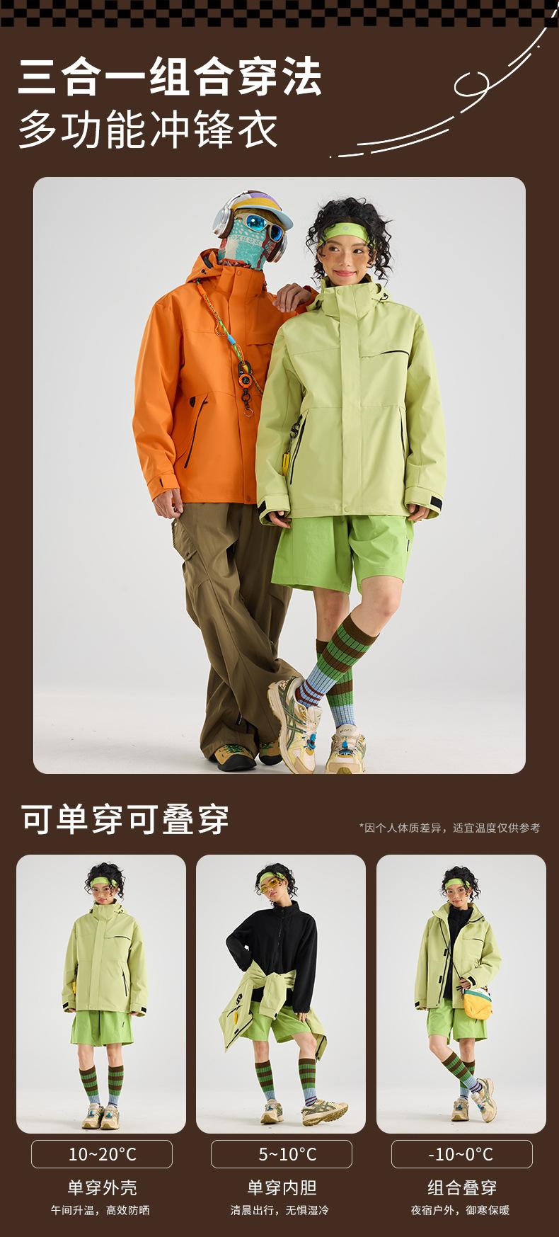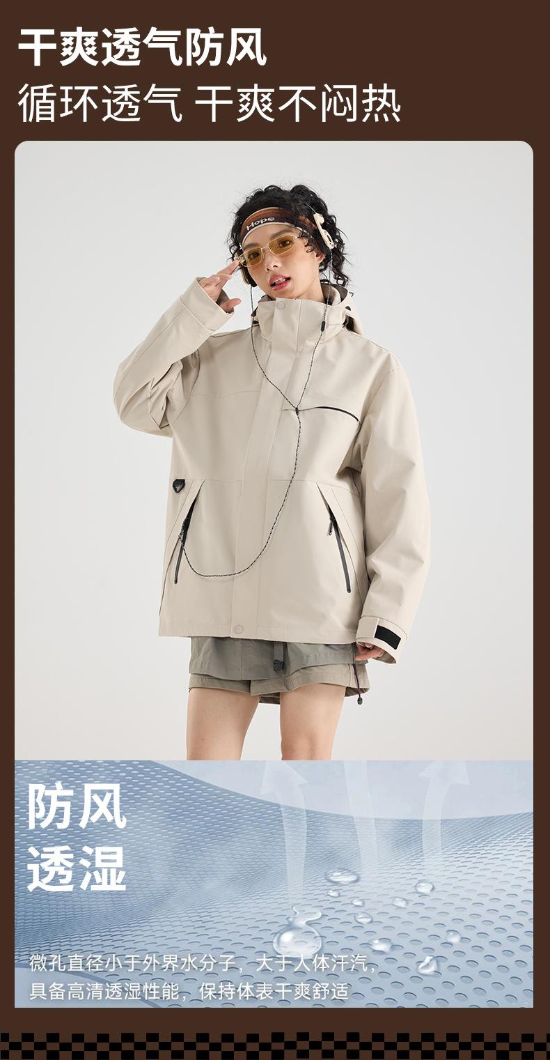 Novo Casaco Destacável Estilo Casal Três-em-Um À Prova de Vento e Quente para Montanhismo ao Ar Livre