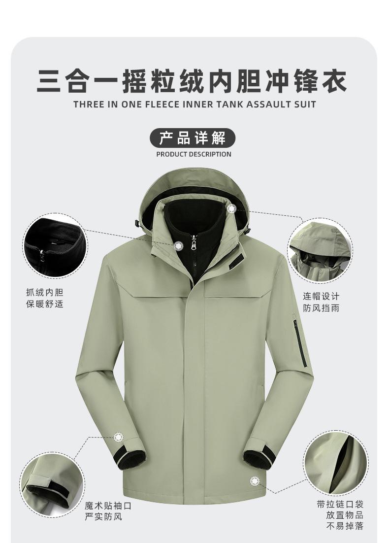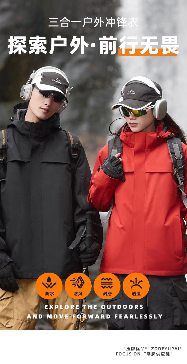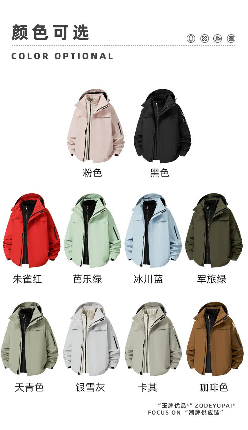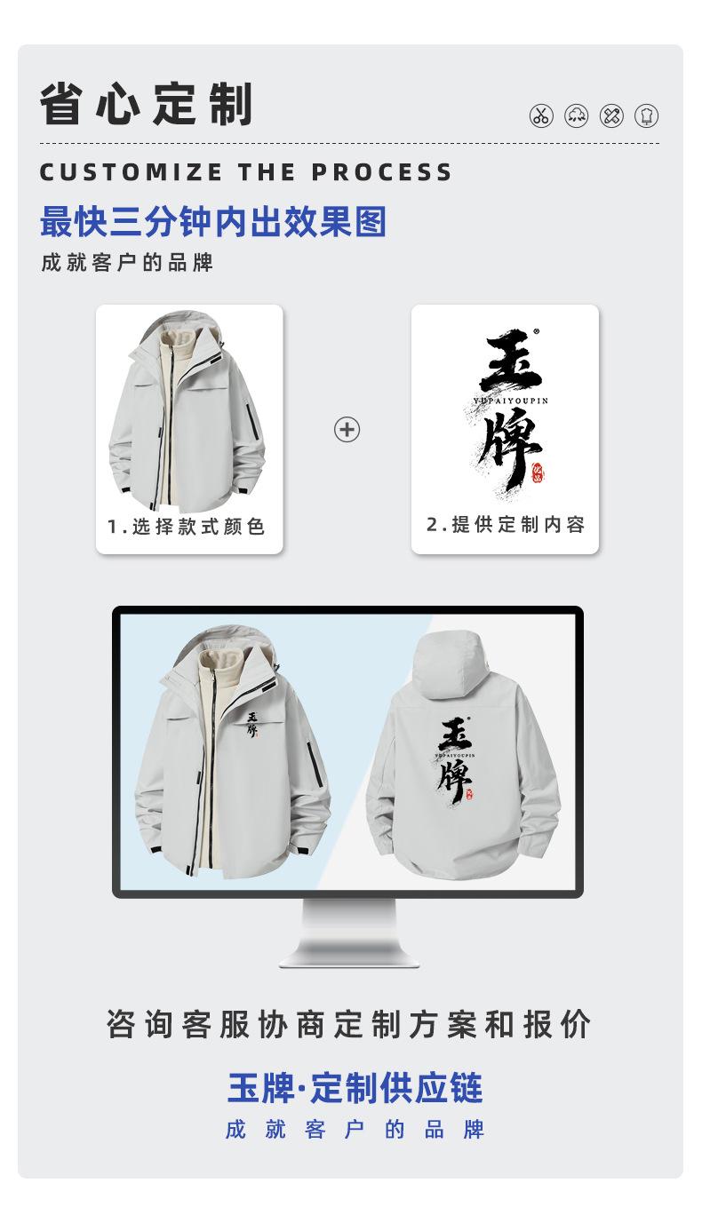 Jaqueta nova três em um à prova de vento e à prova d'água jaqueta outdoor mais veludo quente roupa de trabalho jaqueta corta-vento logotipo de impressão personalizada