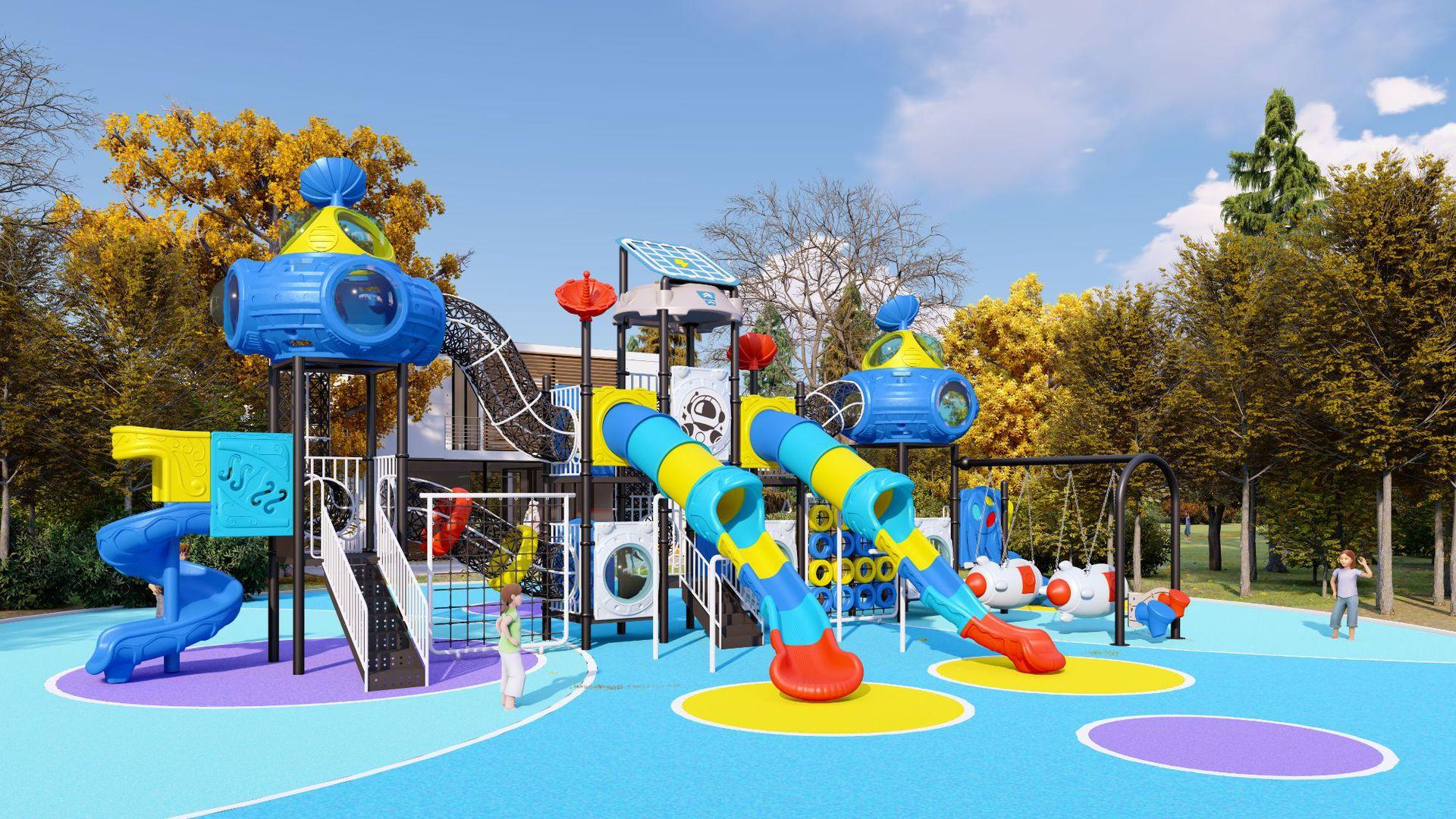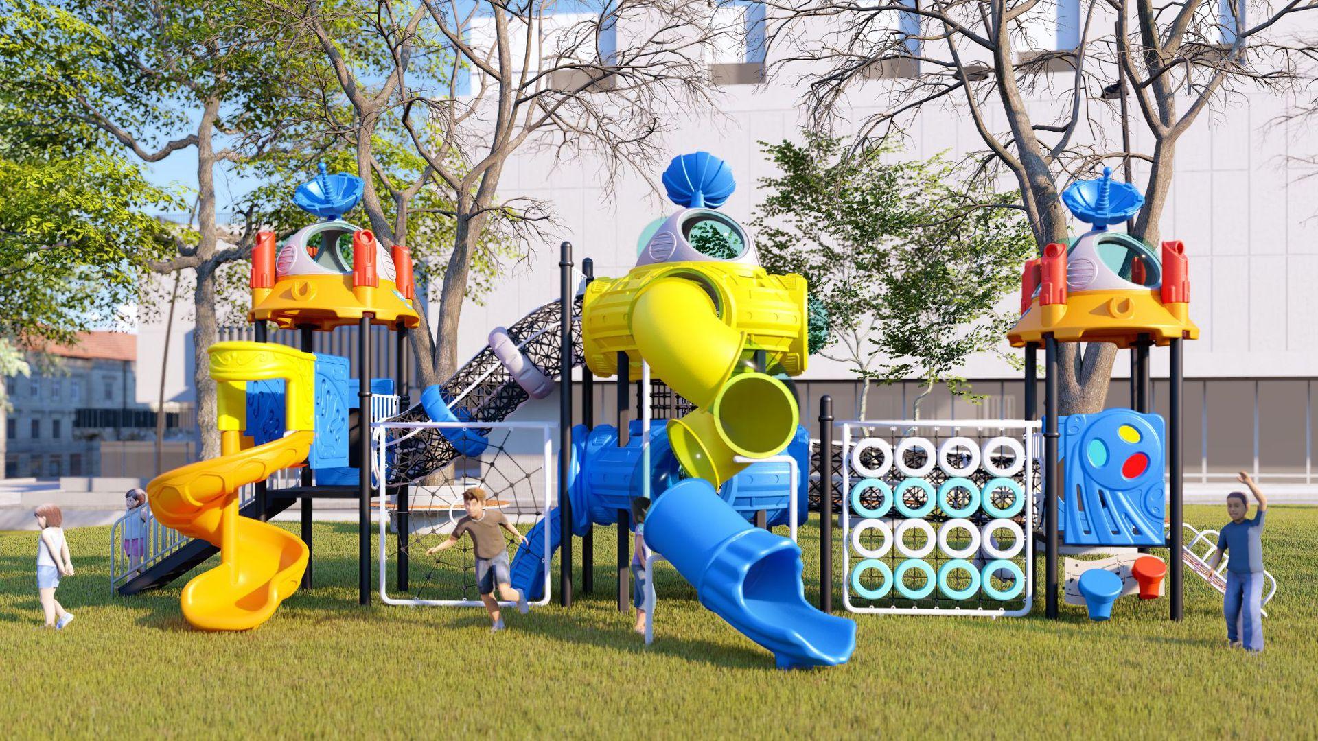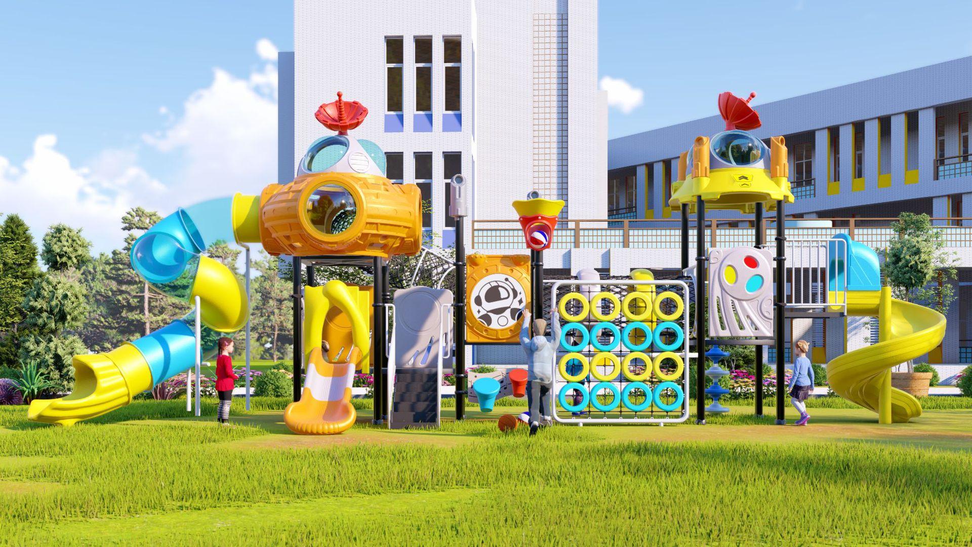 Tobogã Grande ao Ar Livre Equipamento de Playground Infantil ao Ar Livre Combinação de Balanço Brinquedo Instalações de Brincar para Parque Comunitário
