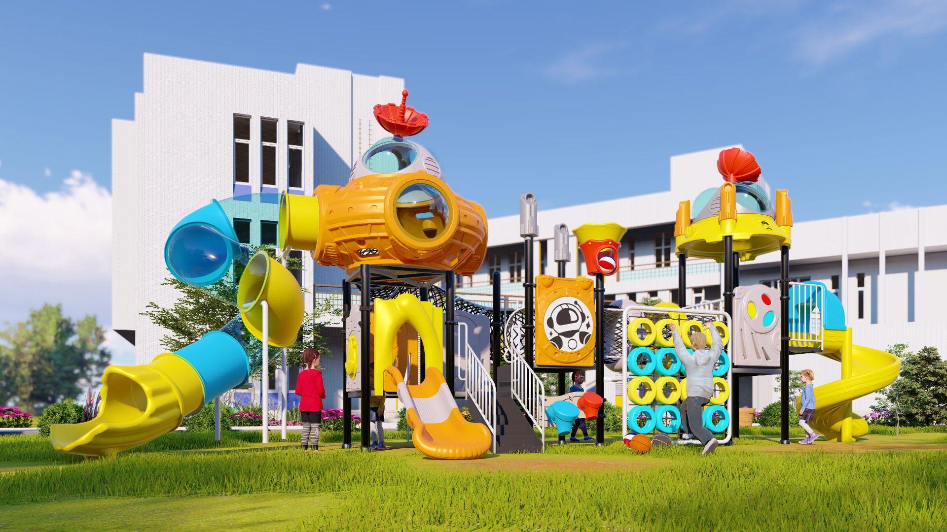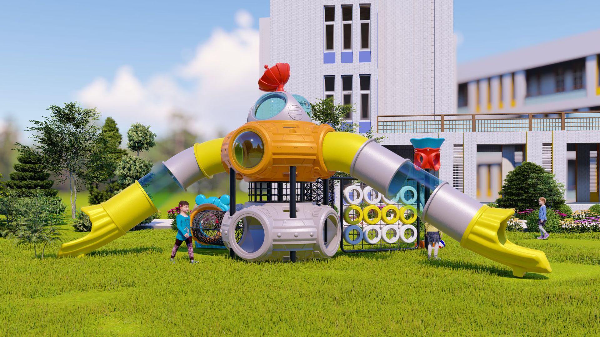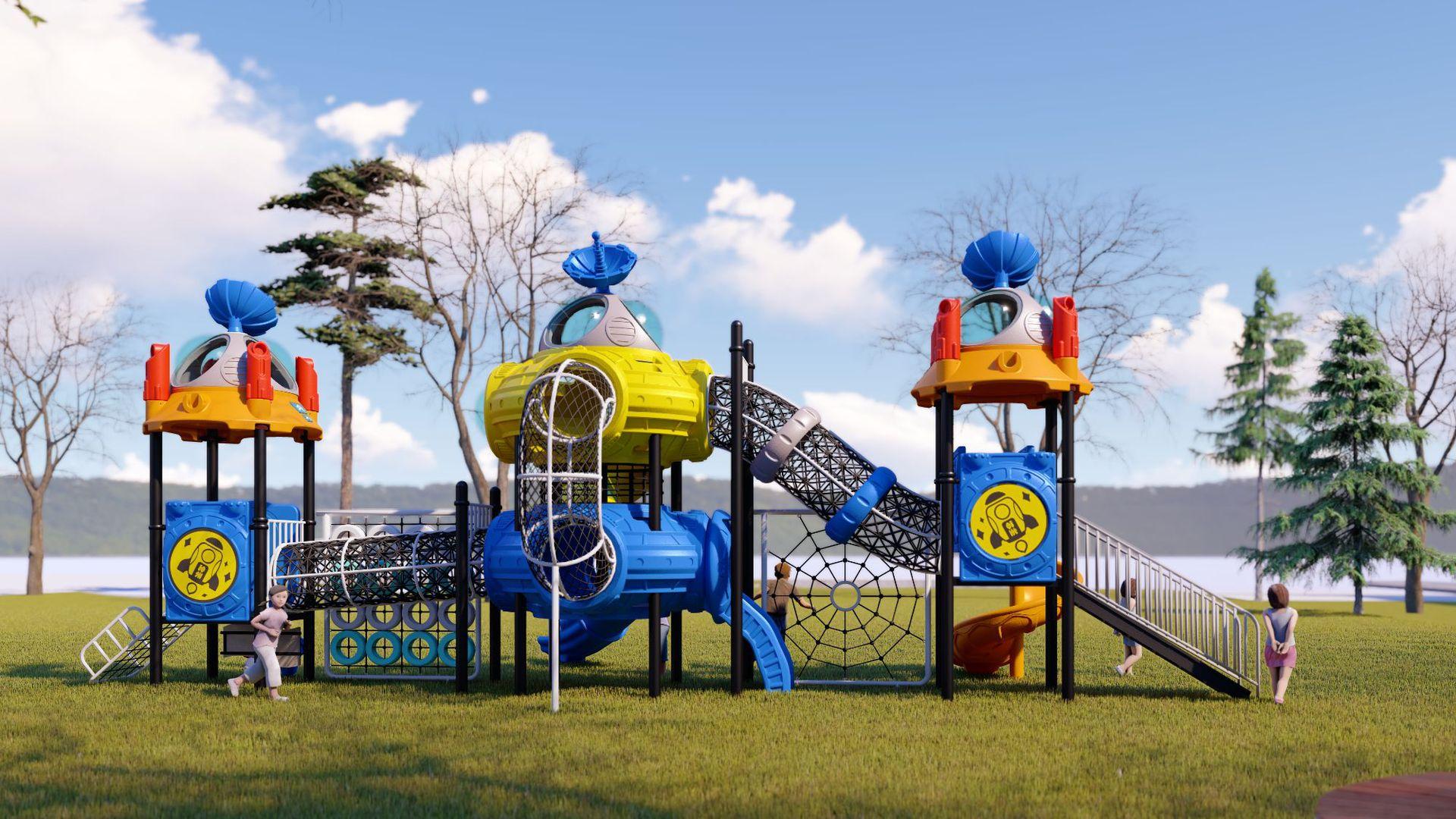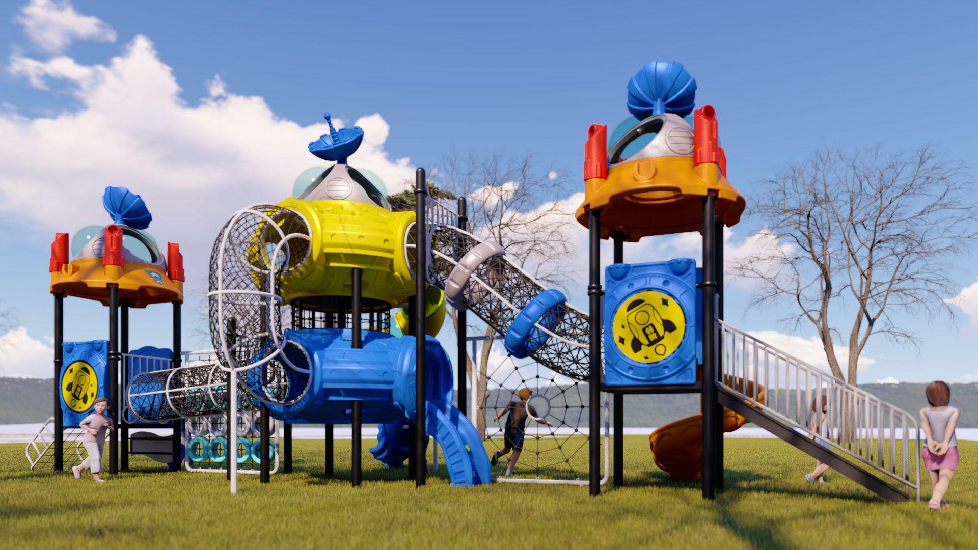 Tobogã Grande ao Ar Livre Equipamento de Playground Infantil ao Ar Livre Combinação de Balanço Brinquedo Instalações de Brincar para Parque Comunitário