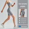Calças de Yoga de Verão de Cintura Alta para Empinar o Bumbum para Mulheres Academia Elásticas Justas Corrida Shorts Esportivos Pêssego